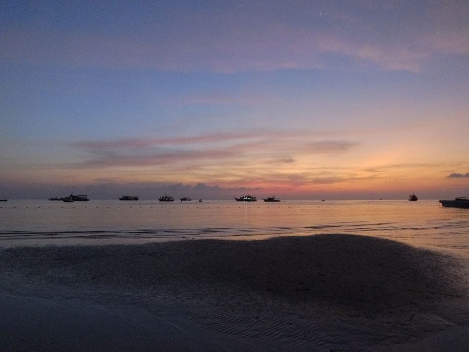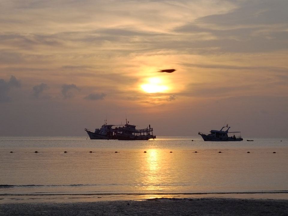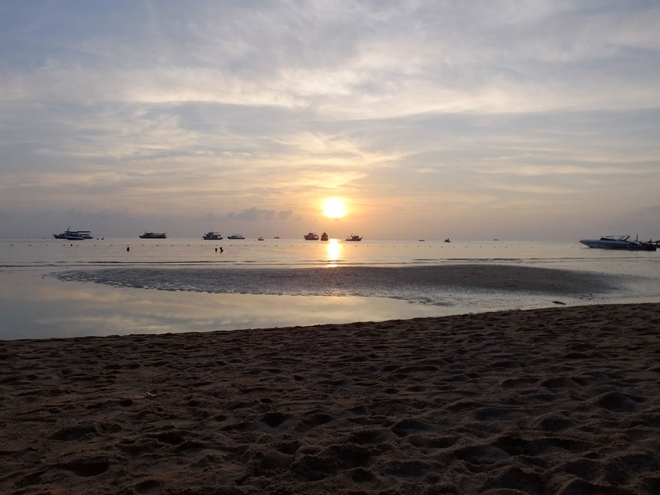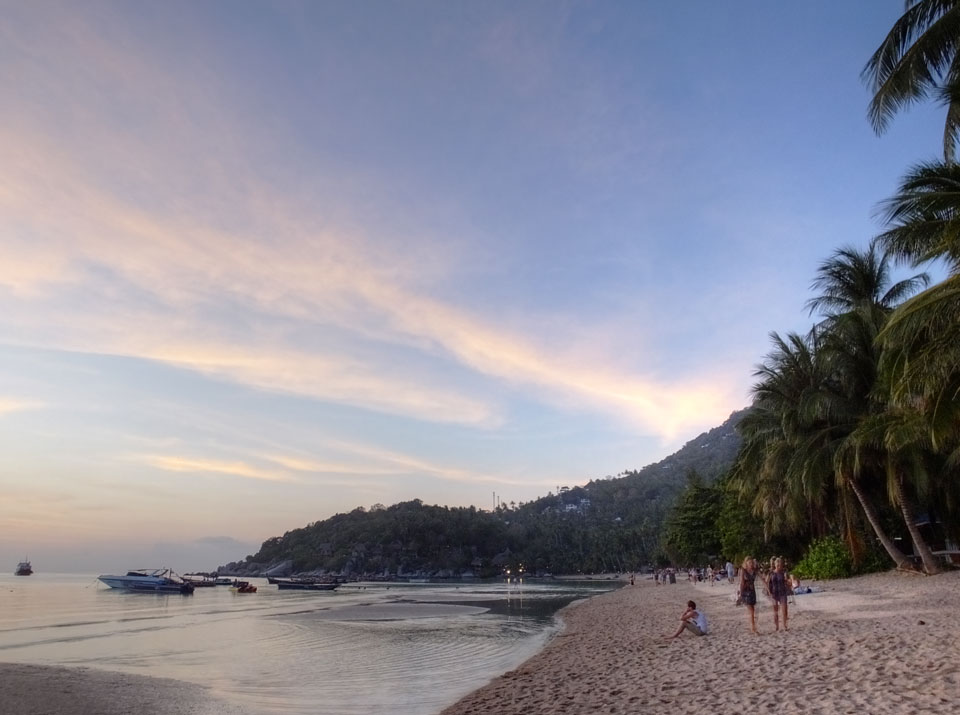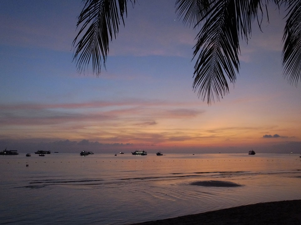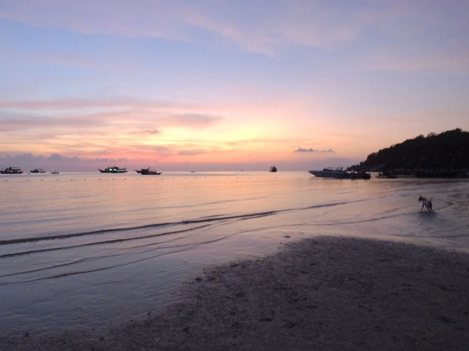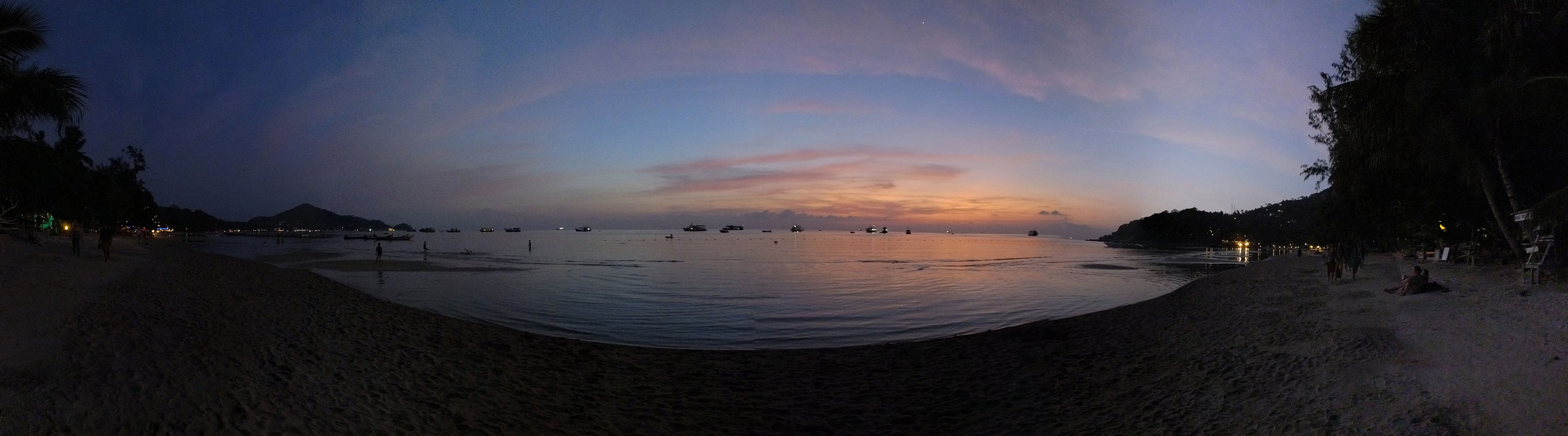 Vor’m Sonnenuntergang nochmal in’s Wasser – super hier. Ich versuchte HDRs, Videos und knipste nett herum. Ich merkte, dass die Fullmoon Party zum Karfreitag ist. In einem christlichen Land steigen da keine Feiern, wie diese aber mal sehen. In zwei Tagen nach Koh Phangang – scheint mir OK zu sein. Das meiste läuft wohl auf Koh Samui, hier ist alles überschaubar und entspannt.