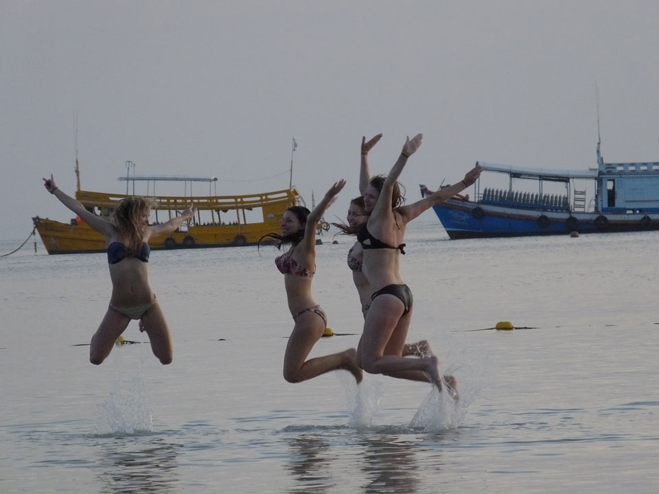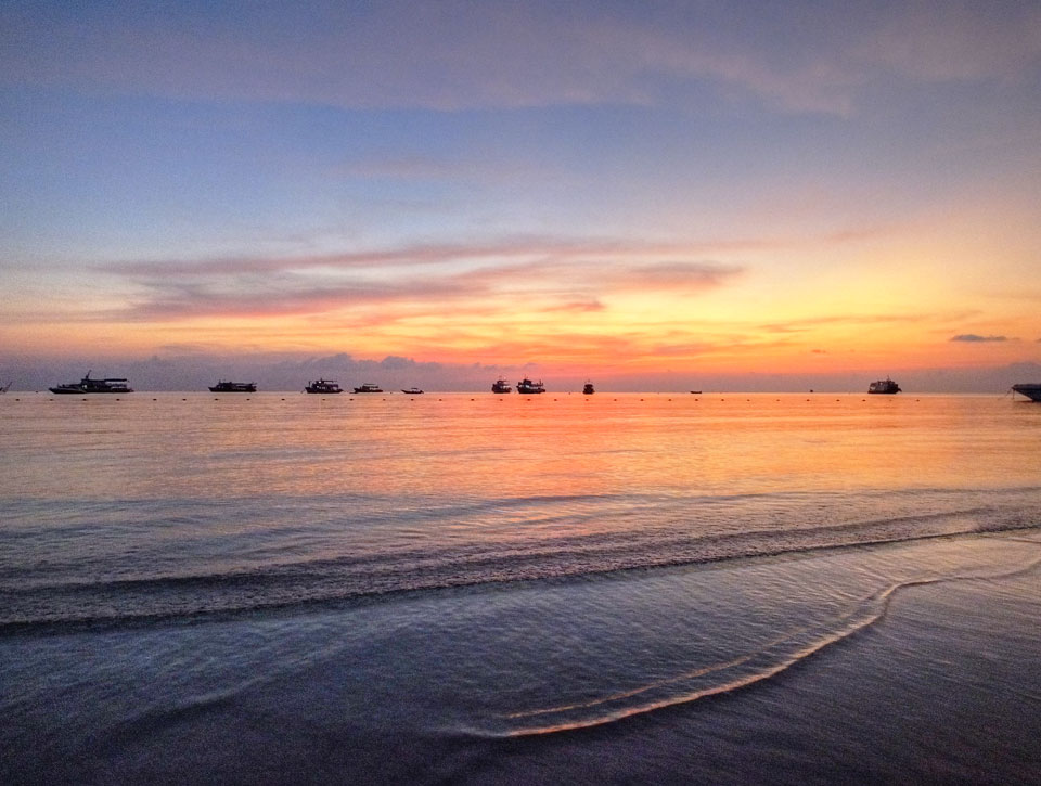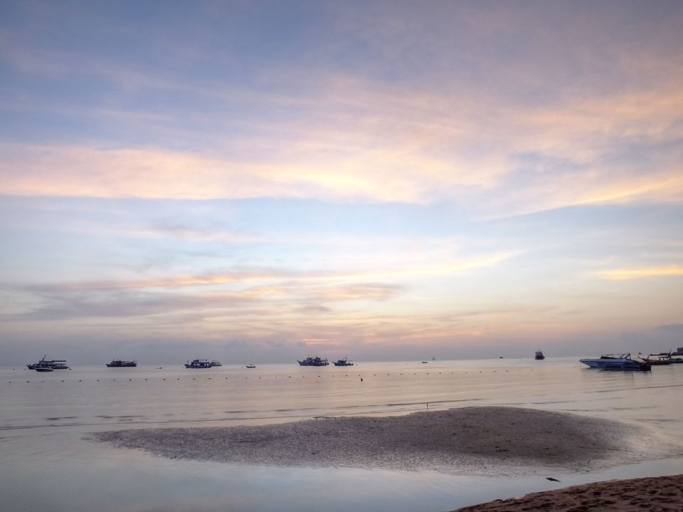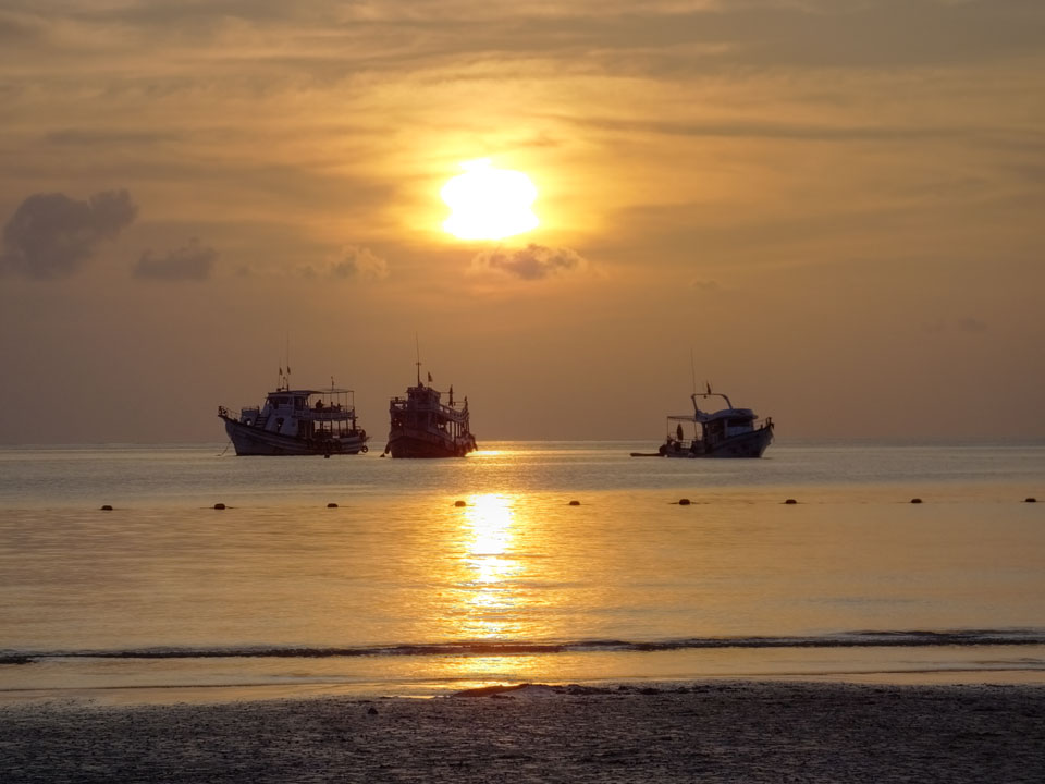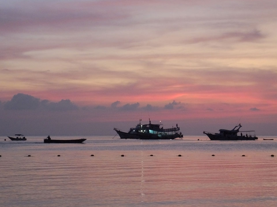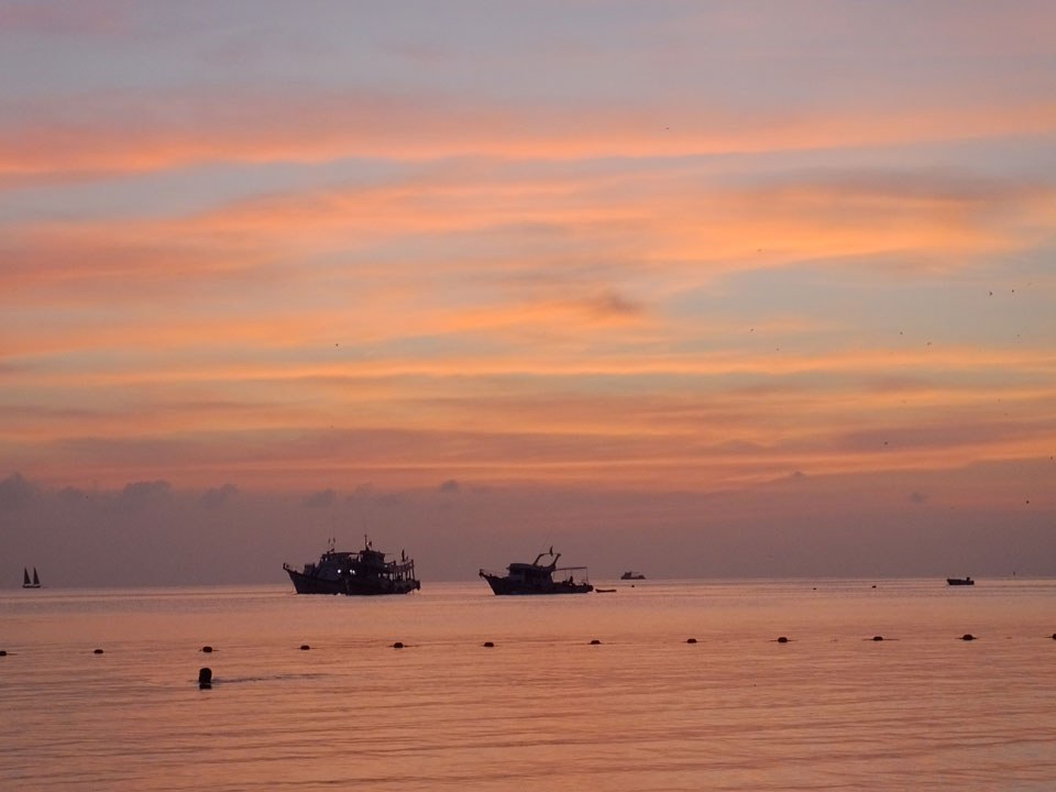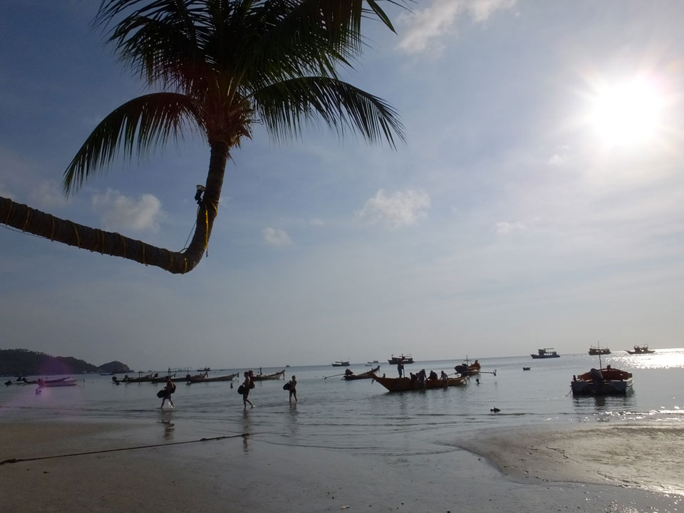 Vor’m Sonnenuntergang nochmal in’s Wasser – super hier. Ich versuchte HDRs, Videos und knipste nett herum. Ich merkte, dass die Fullmoon Party zum Karfreitag ist. In einem christlichen Land steigen da keine Feiern, wie diese aber mal sehen. In zwei Tagen nach Koh Phangang – scheint mir OK zu sein. Das meiste läuft wohl auf Koh Samui, hier ist alles überschaubar und entspannt.