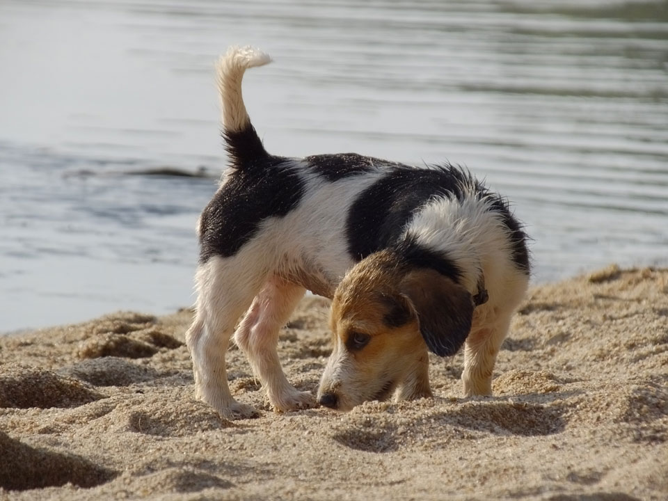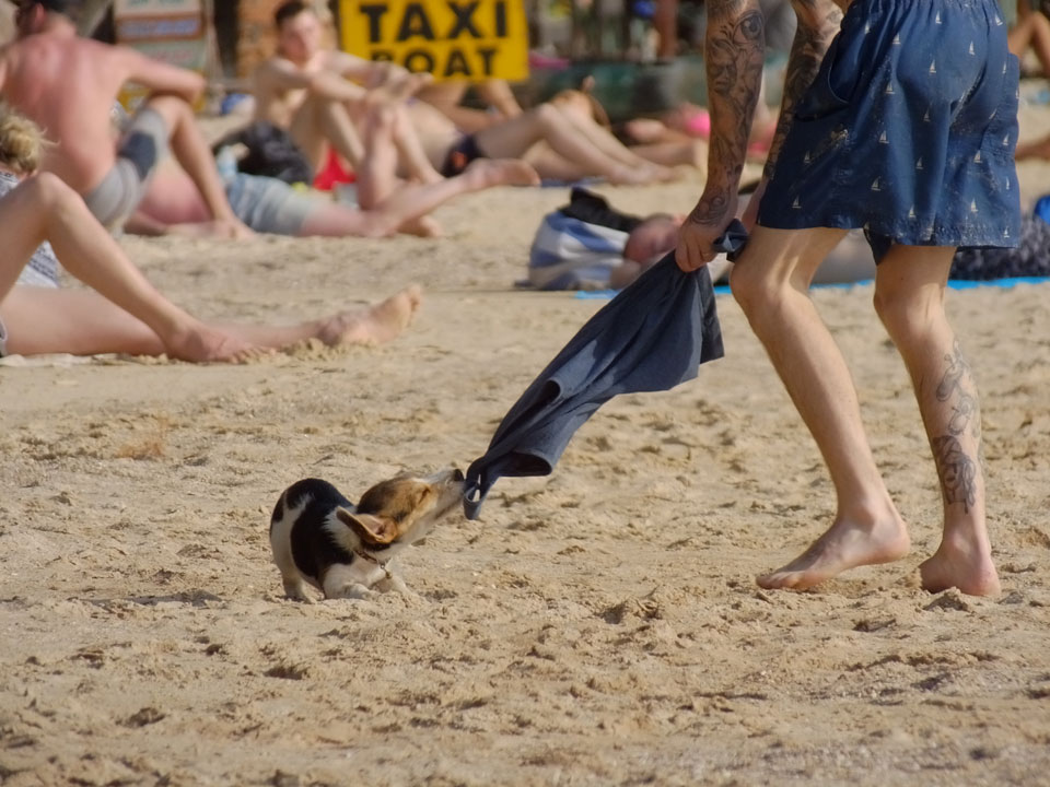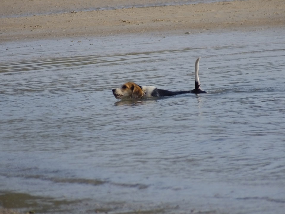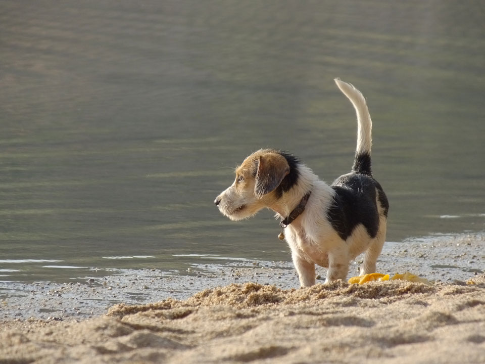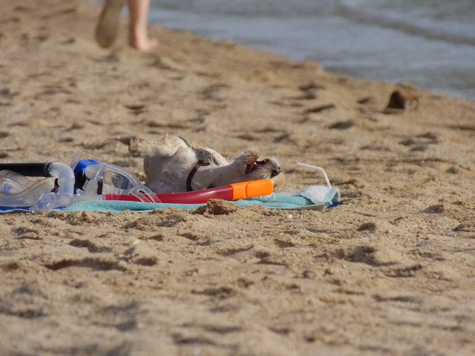 Ein kleiner Hund spielte auch herum, alles war nett heute am Strand.