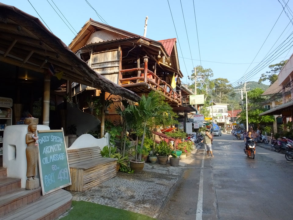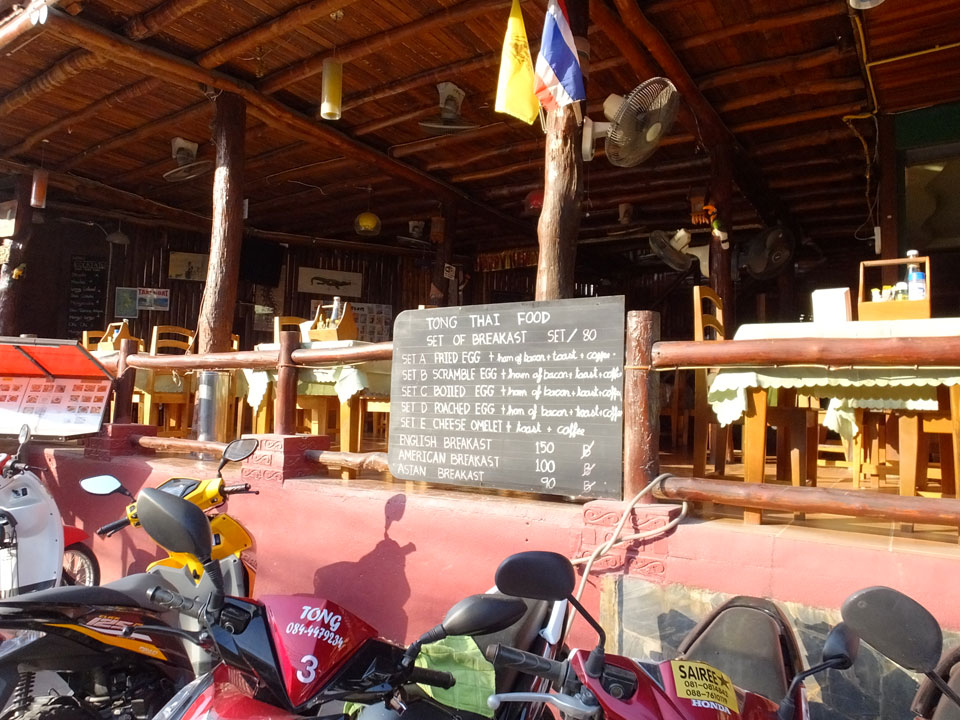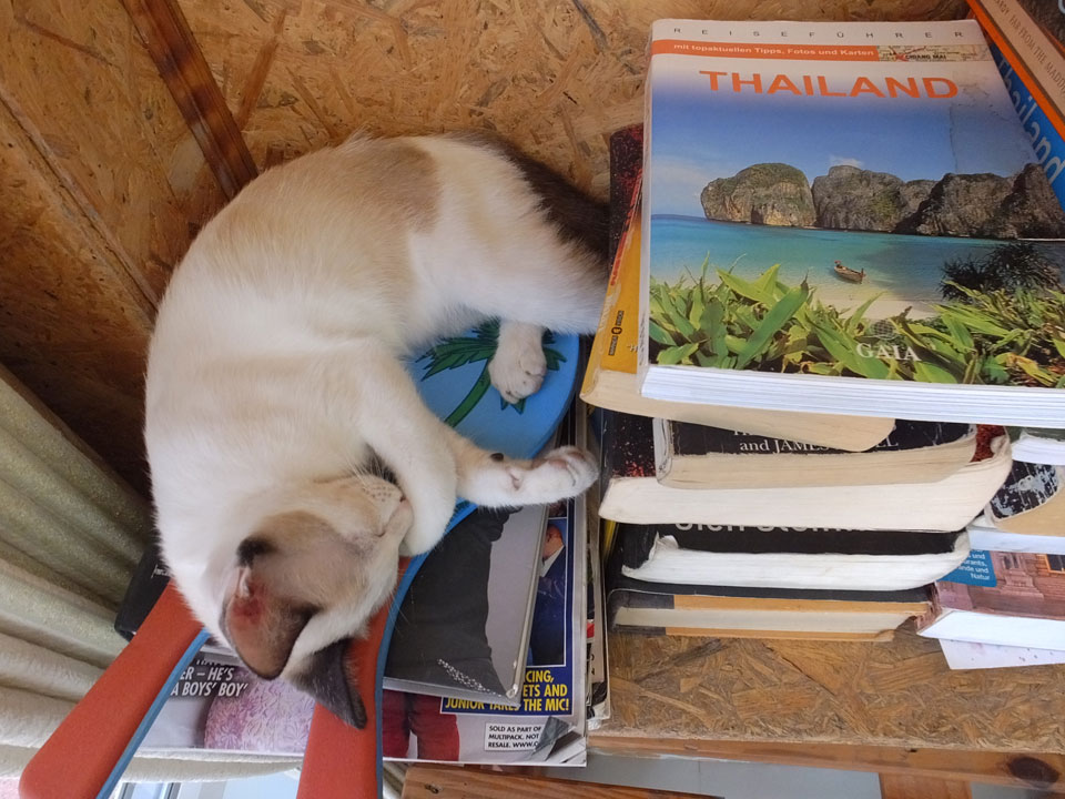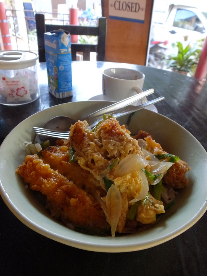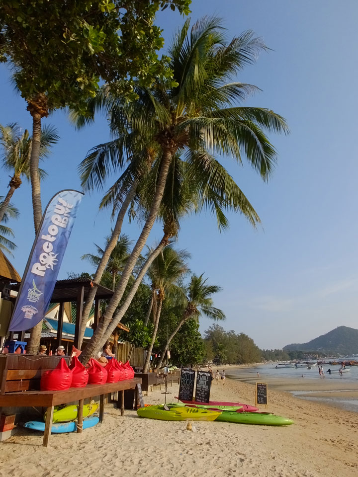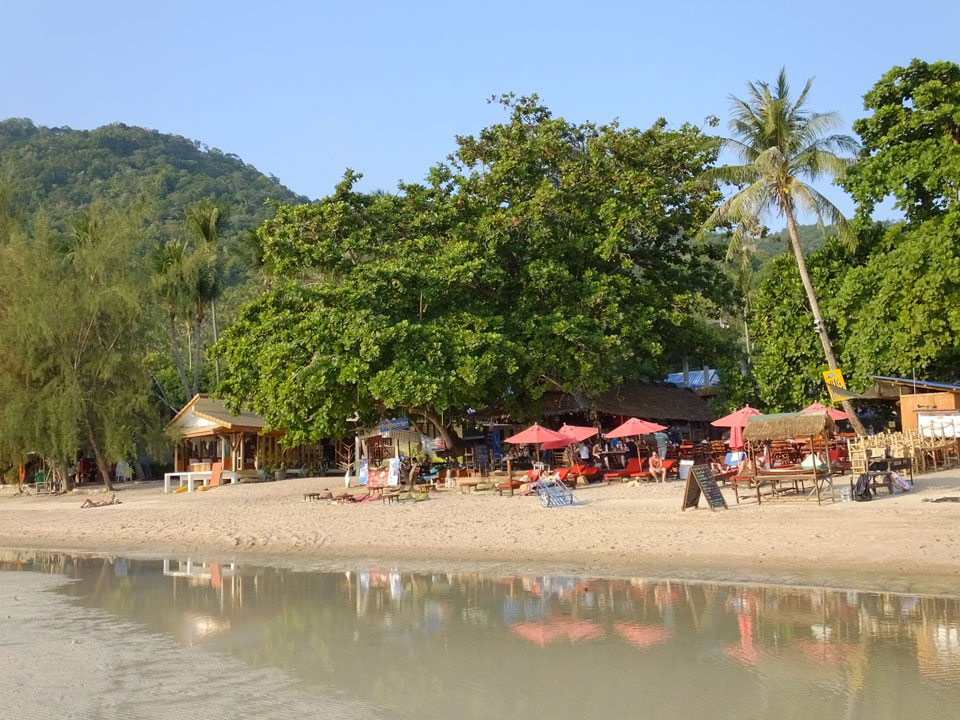Wieder einmal schlief ich gleich zwei Mal, wird schon zu irgendwas gut sein. Dann auf dem Weg zum Strand holte ich mir mein Ticket nach Phangang (500 THB incl Taxi) um 5 ein Katsu Don samt Kaffee – zu 120 THB ganz gute Value.