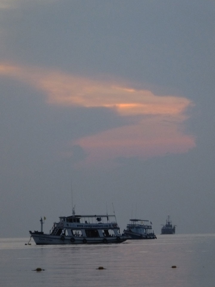 Nach 1 kamen langsam die Pub Crawler zurück. Ich komme mit den meisten gut aus, andere legen sich schnell mit Leuten an, die laut sind. Ich sah, dass ein Kumpel der Reisegruppe auch gerade Asien tourt. Mal sehen, ob’s mit einem Treffen klappt. Ich schlief somit erst gegen 3 ein. Alles OK und weiterer schöner Tag hier auf Koh Tao. Hier kann man schon eine Woche verbringen – 1-2 Ausflüge in die Unterwasserwelt machen und den Rest chilllen. Morgen erst mal weiter nach Koh Phangang.