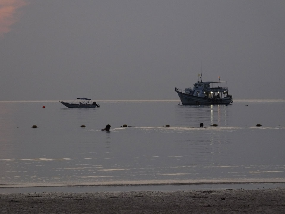 Die Fische im Wasser sind witzig. Einige schauen mich direkt an, schwimmen erst spät weg. Bunter geht’s sicher weiter draußen zu aber ich war zufrieden. Der Sonnenuntergang fiel wegen Wolken heute etwas unspektakulär aus. Es war doch ganz gut, hier 3 Nächte zu bleiben.