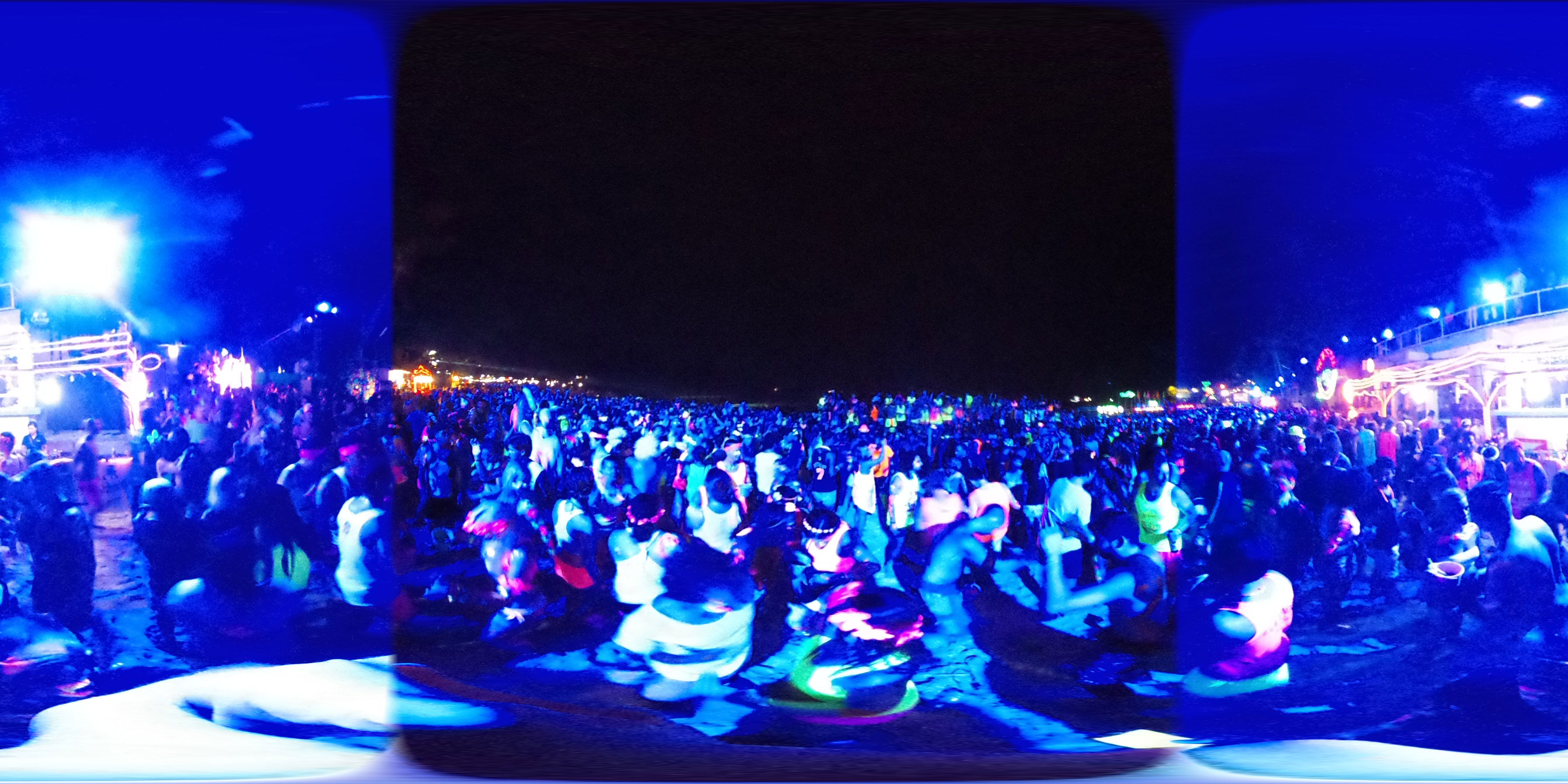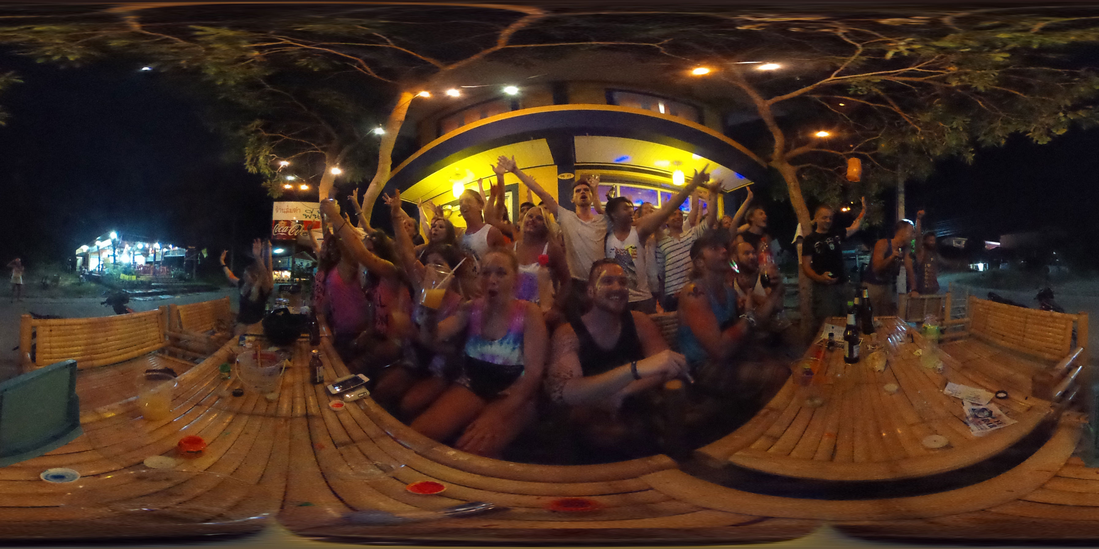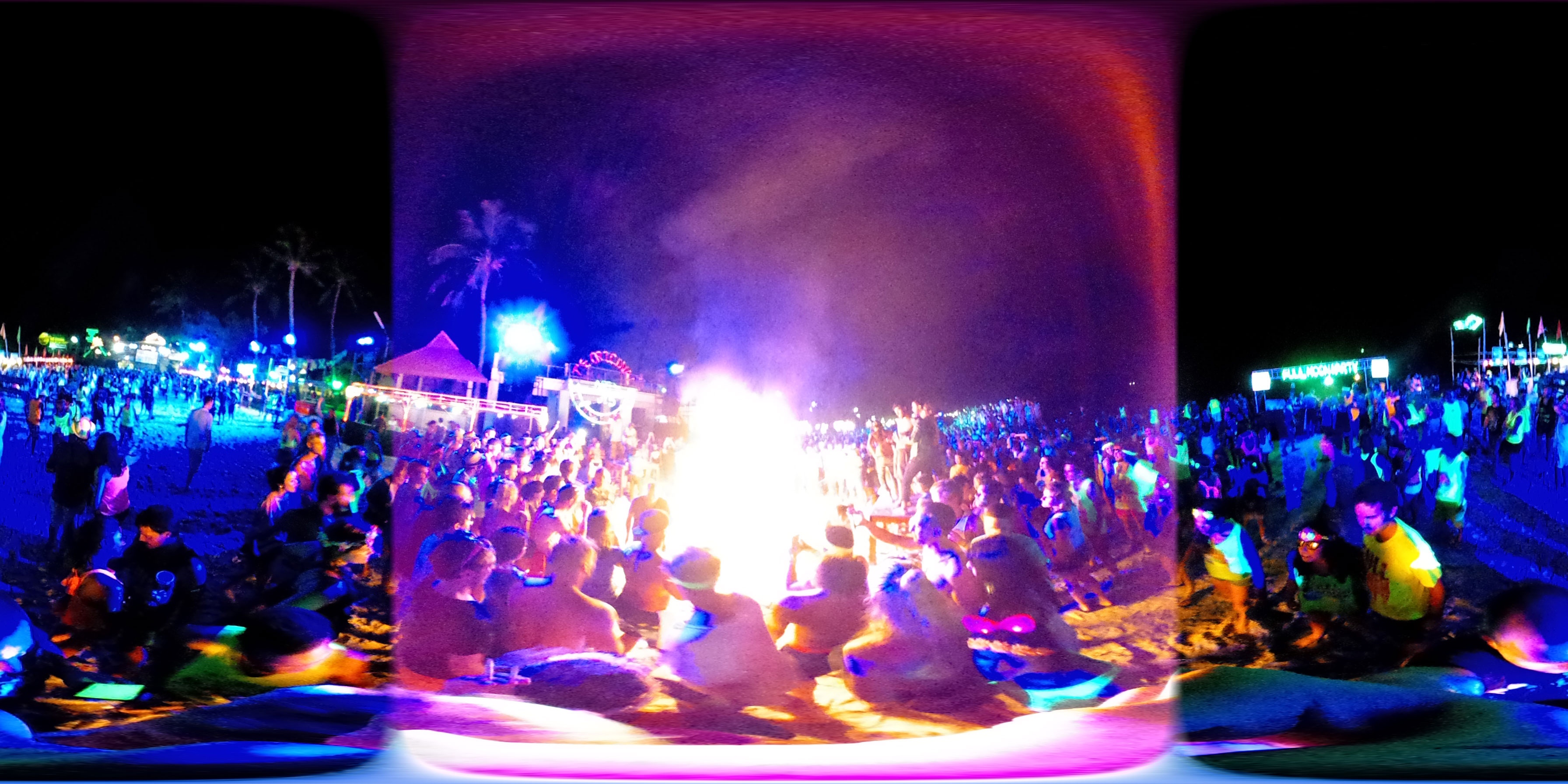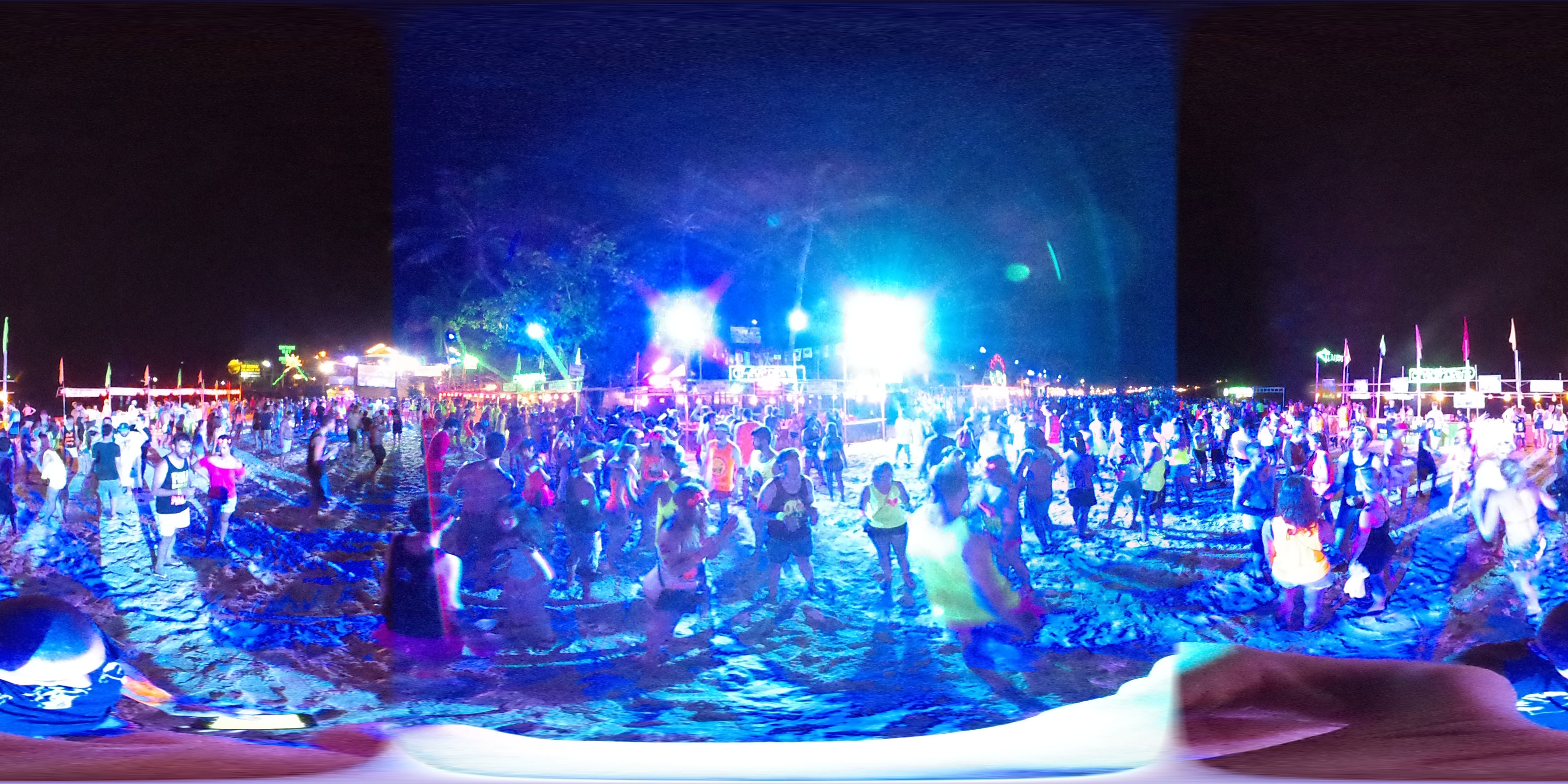 Zum Karfreitag habe ich etwas gemischte Gefühle dazu. Ich aß was in einem Corner Café – kein rotes Fleisch natürlich. Dann später bekam ich ein Bier für die zukünftigen Photos. Meine erste Bezahlung für die 360° Camera. Ich schoss ein paar Bilder, bemalte dann meine Arme mit etwas Leuchtfarbe. Alle im Hostel bemalten sich für die Party am Haad Rin Strand. Alles eben wie im Cliché.