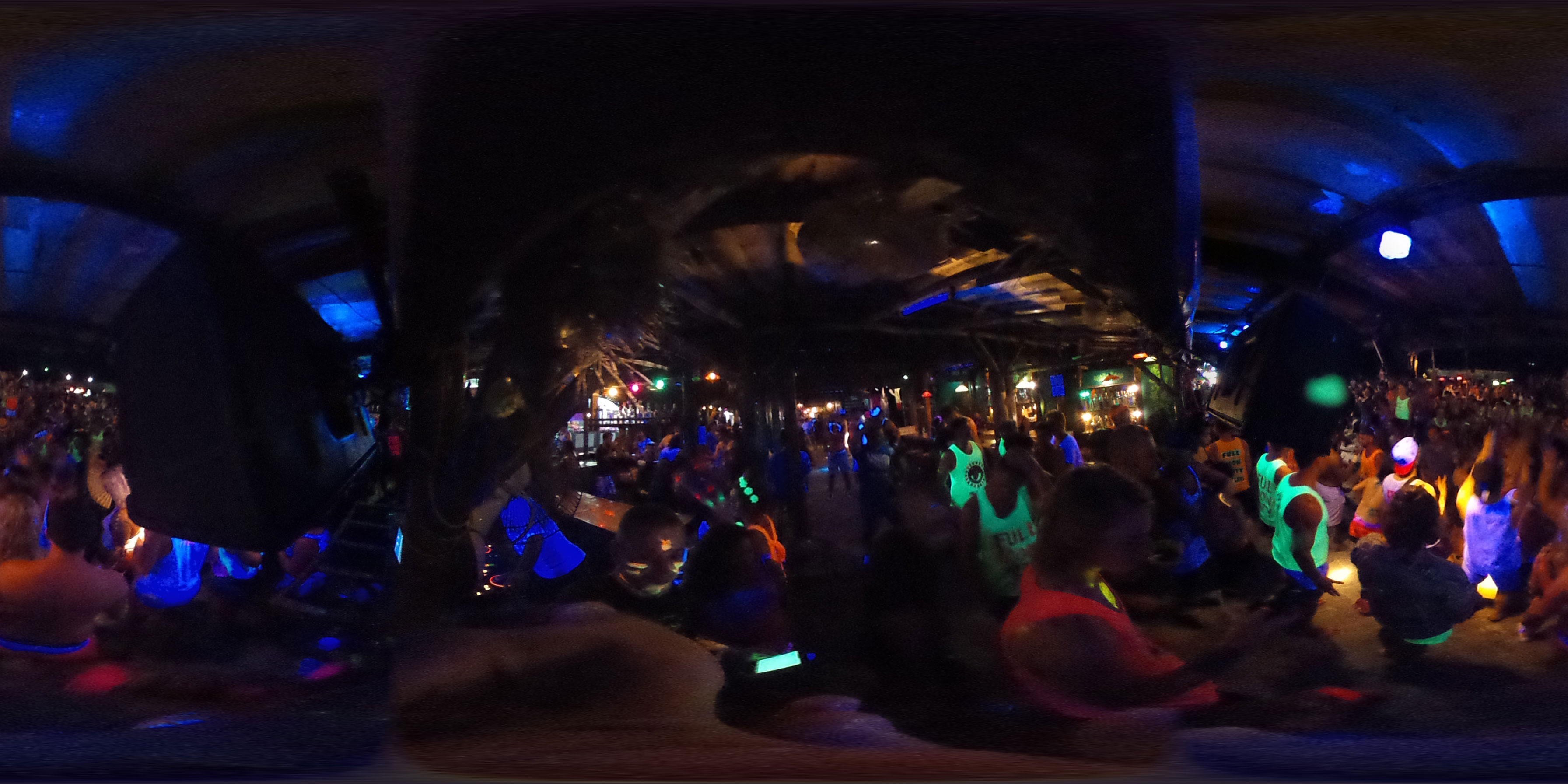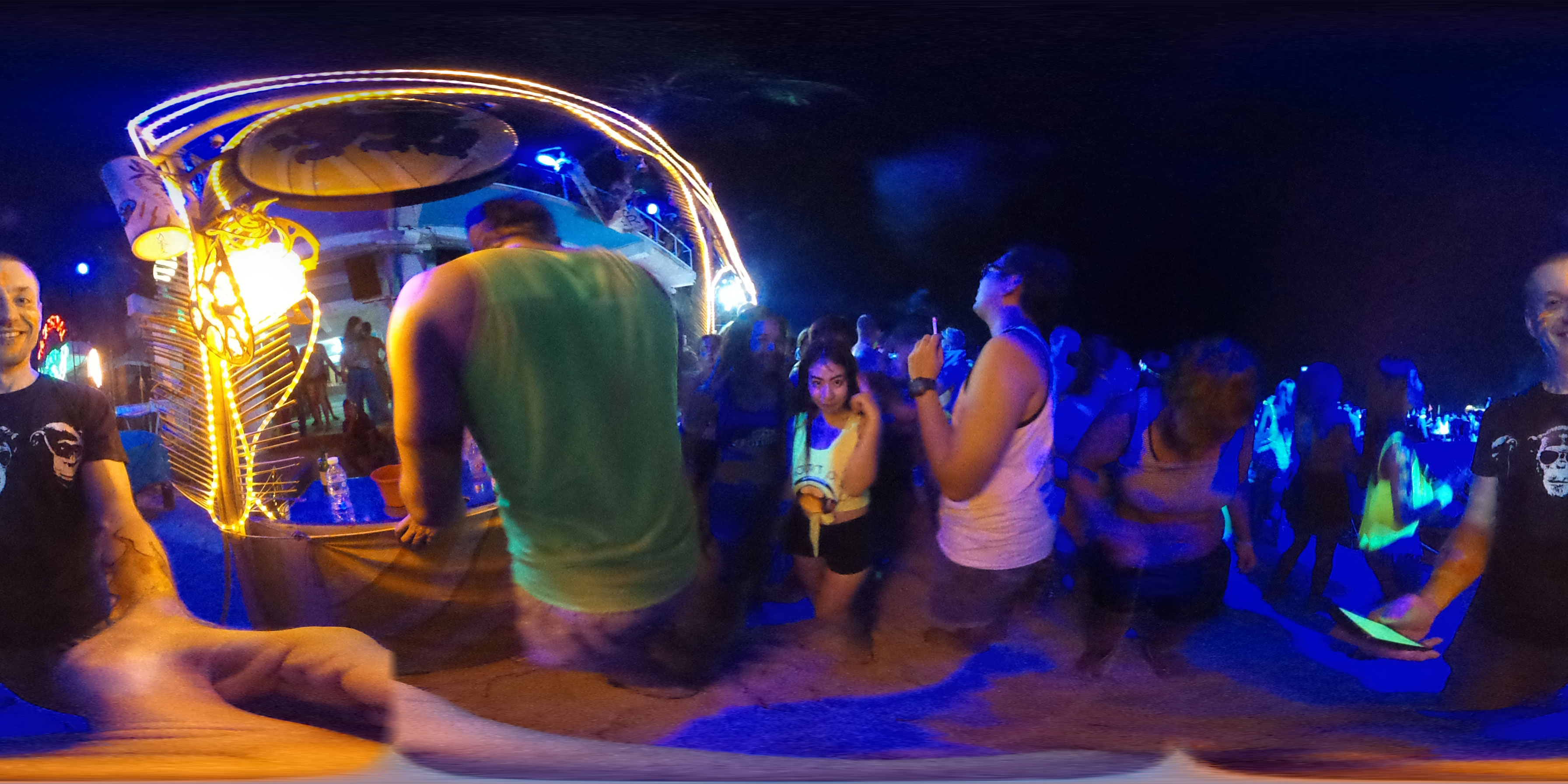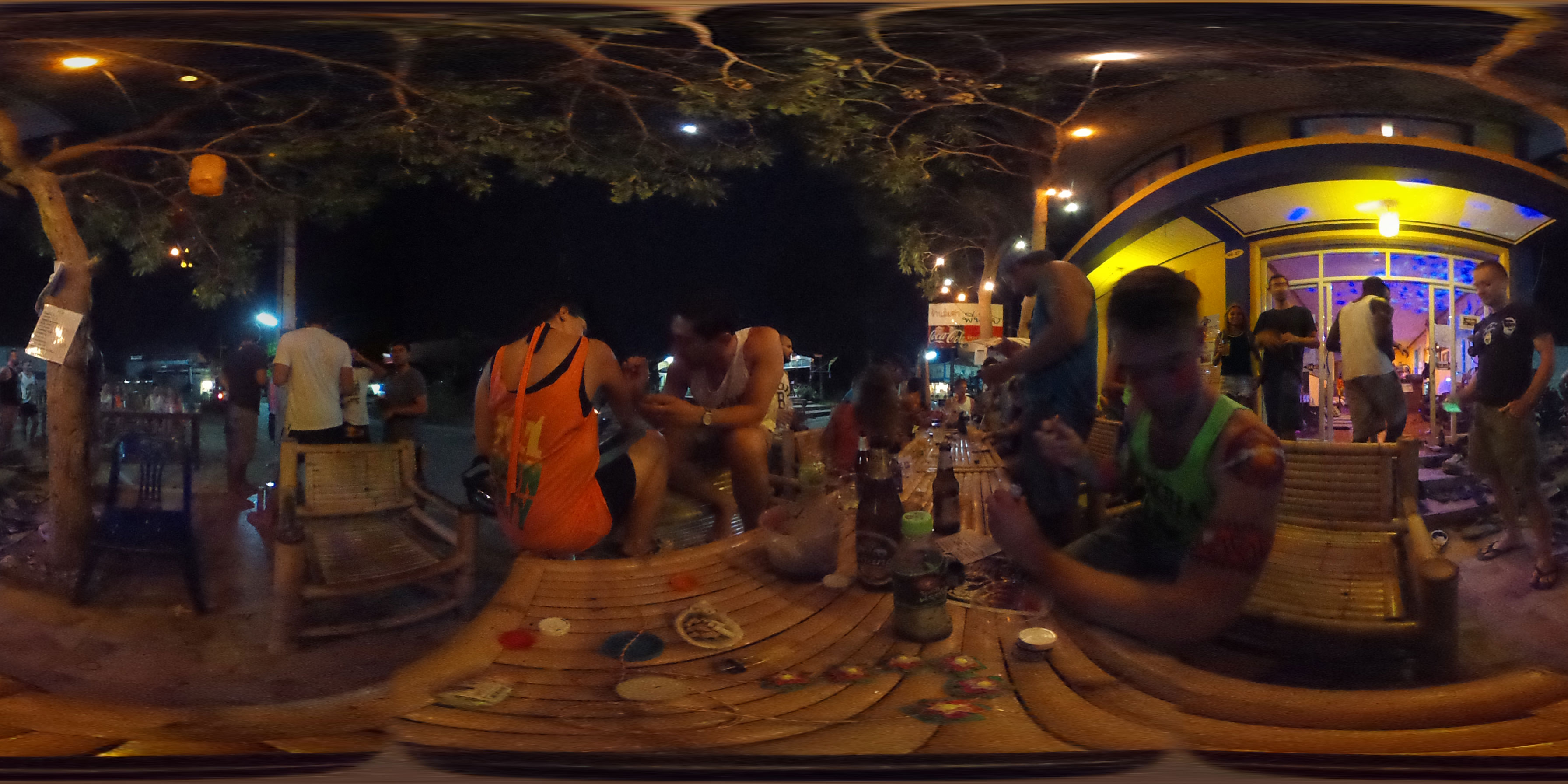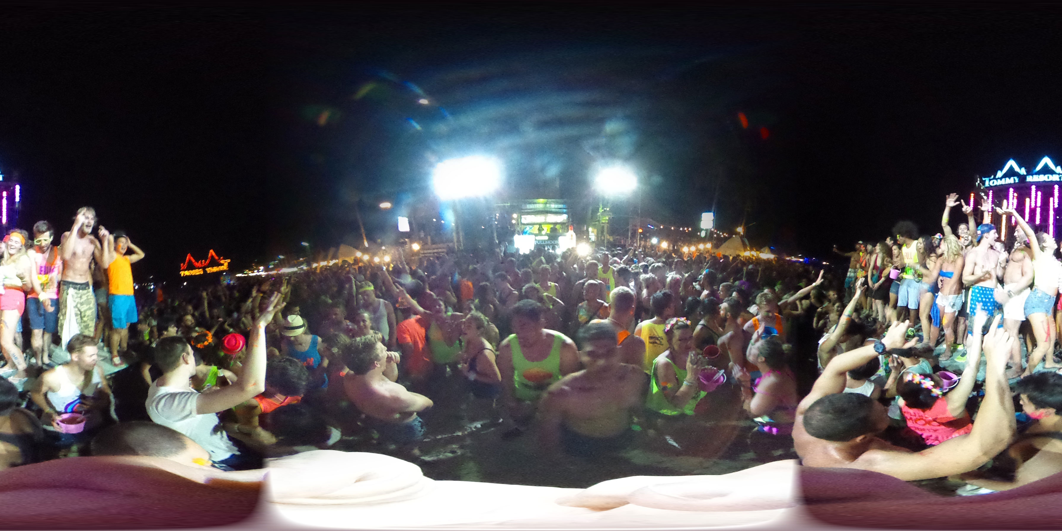 Zum Karfreitag habe ich etwas gemischte Gefühle dazu. Ich aß was in einem Corner Café – kein rotes Fleisch natürlich. Dann später bekam ich ein Bier für die zukünftigen Photos. Meine erste Bezahlung für die 360° Camera. Ich schoss ein paar Bilder, bemalte dann meine Arme mit etwas Leuchtfarbe. Alle im Hostel bemalten sich für die Party am Haad Rin Strand. Alles eben wie im Cliché.