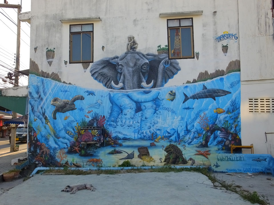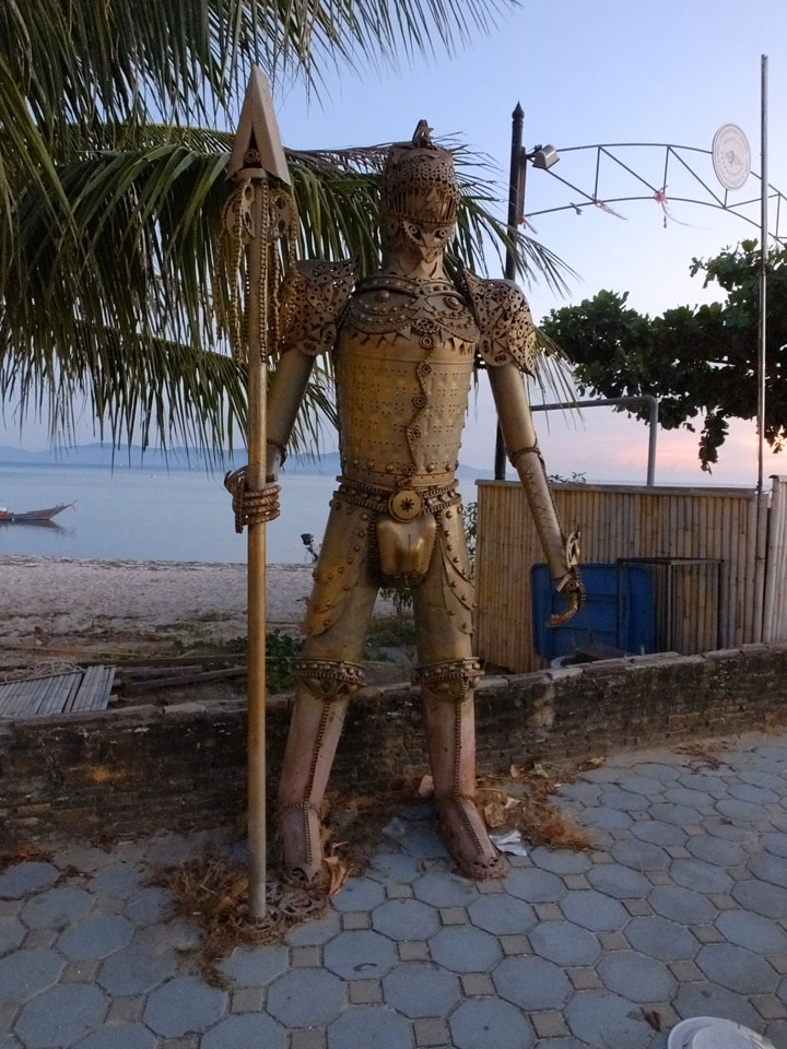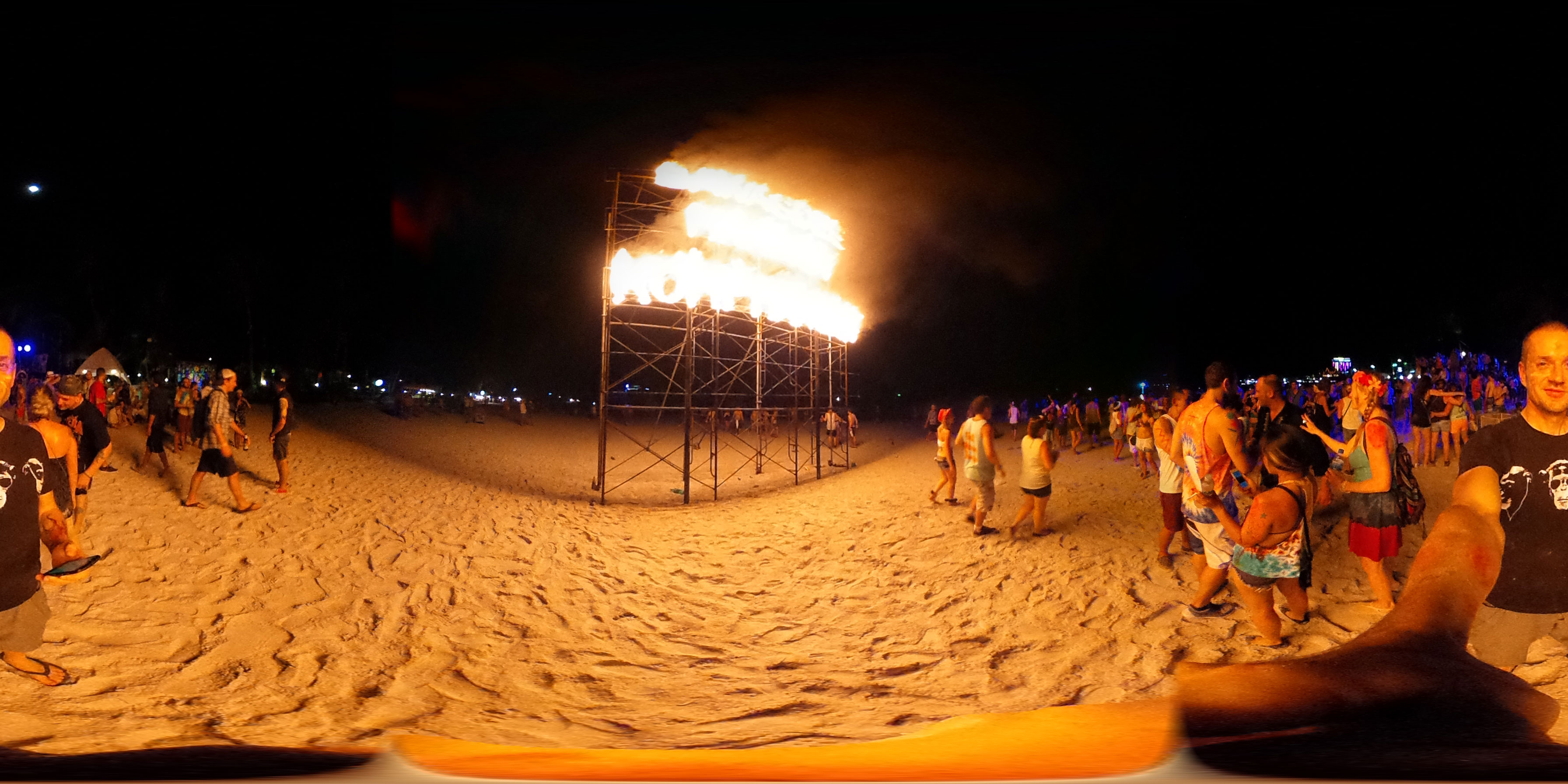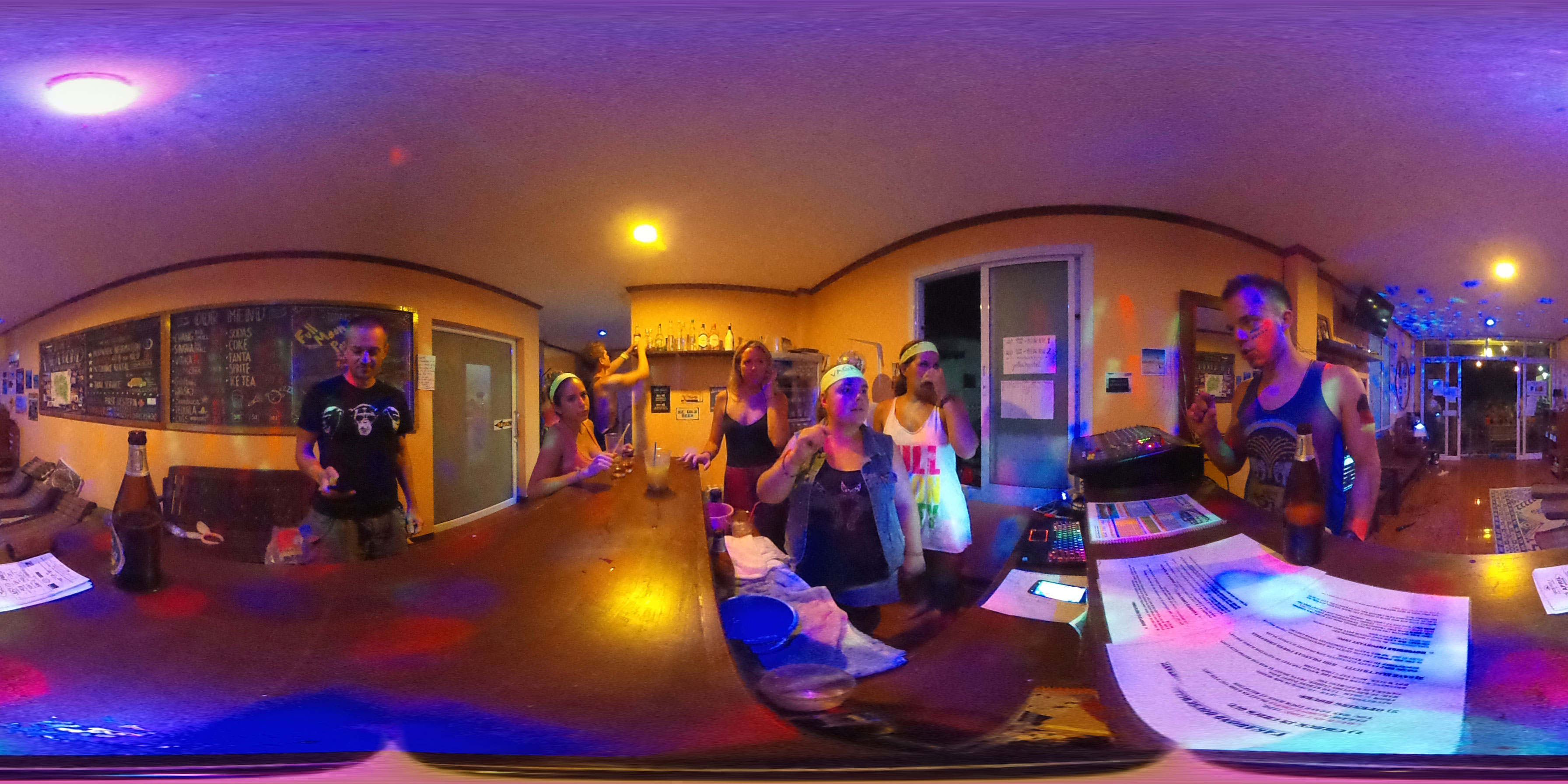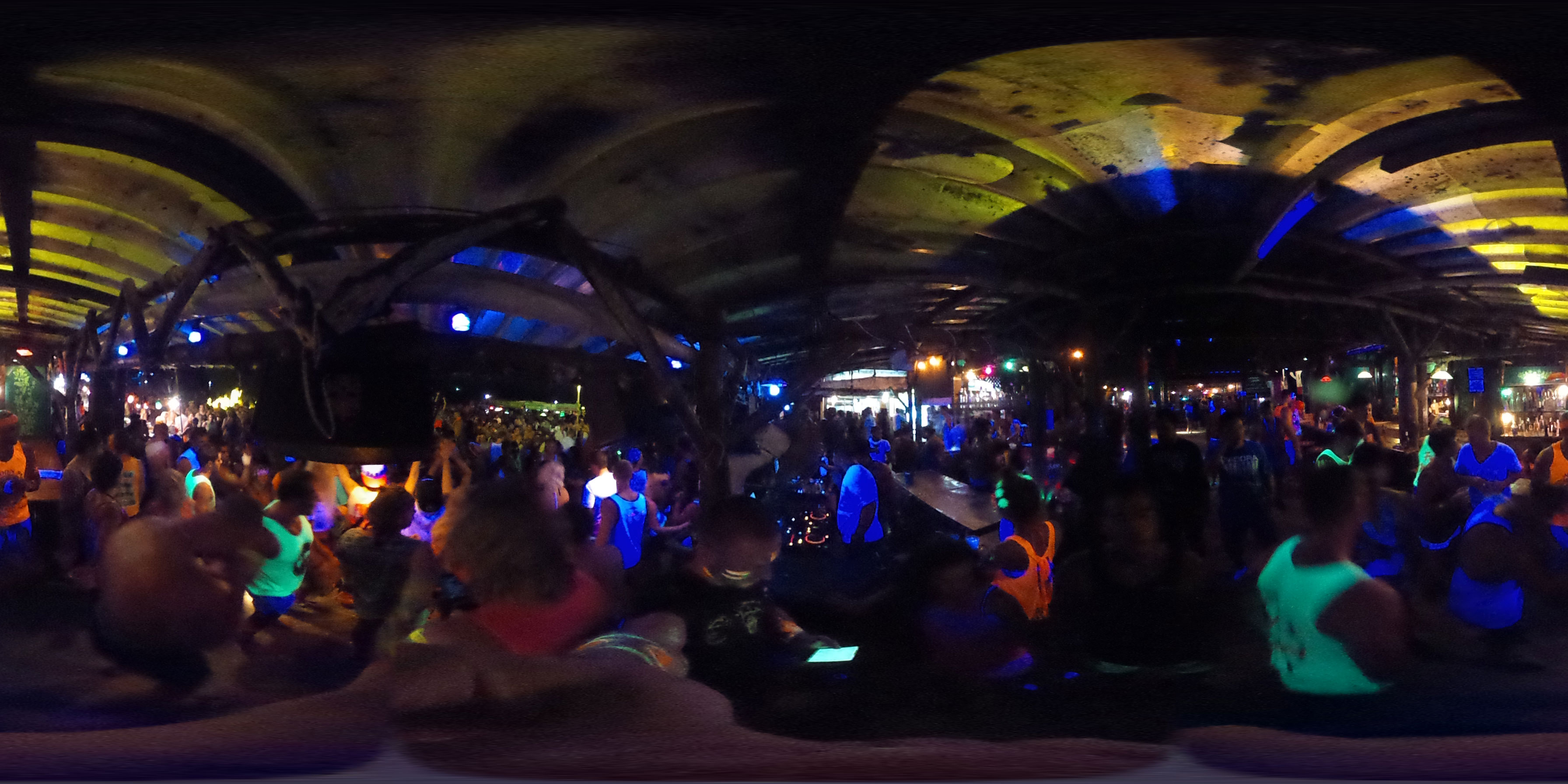 Zum Karfreitag habe ich etwas gemischte Gefühle dazu. Ich aß was in einem Corner Café – kein rotes Fleisch natürlich. Dann später bekam ich ein Bier für die zukünftigen Photos. Meine erste Bezahlung für die 360° Camera. Ich schoss ein paar Bilder, bemalte dann meine Arme mit etwas Leuchtfarbe. Alle im Hostel bemalten sich für die Party am Haad Rin Strand. Alles eben wie im Cliché.