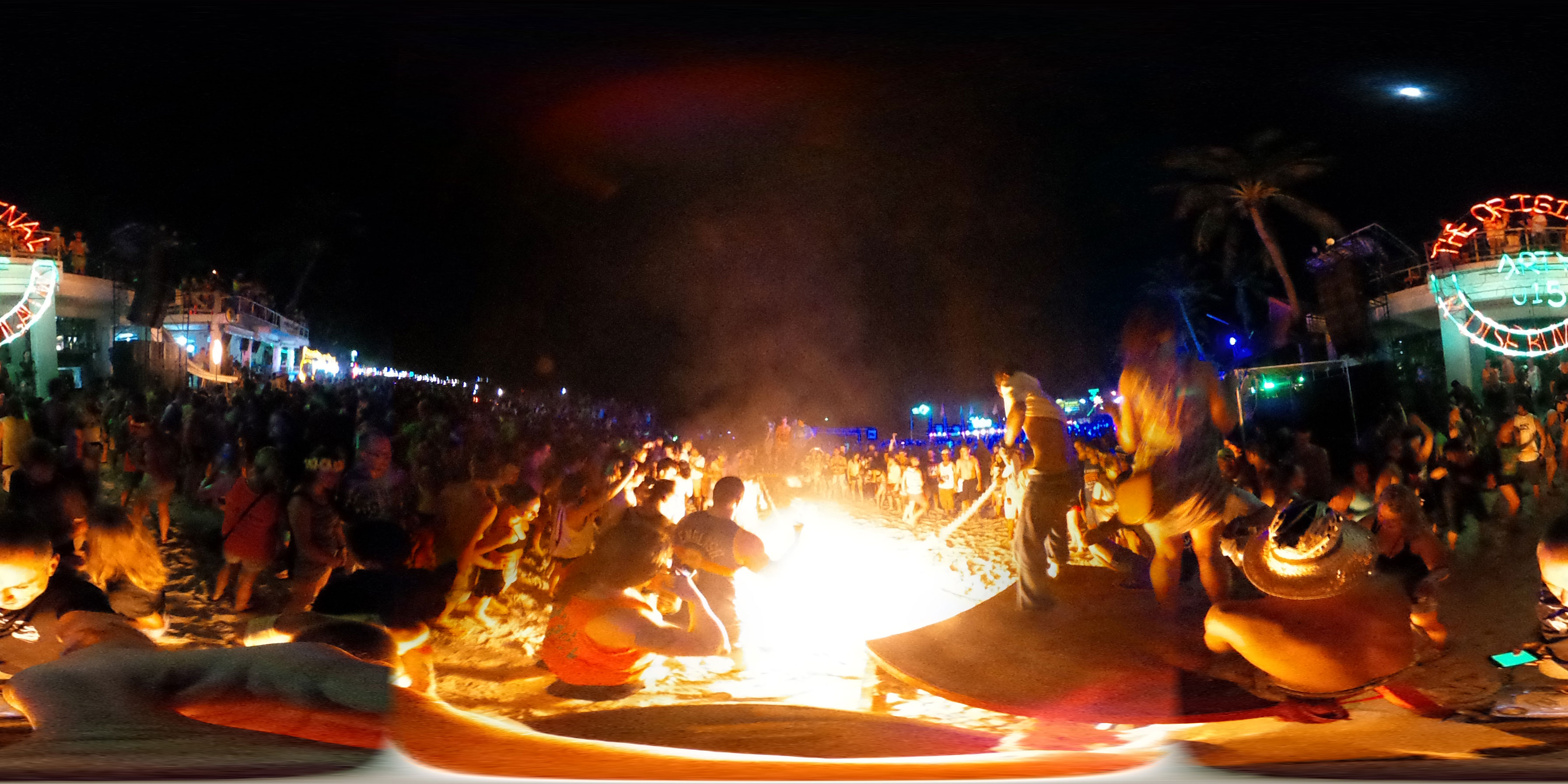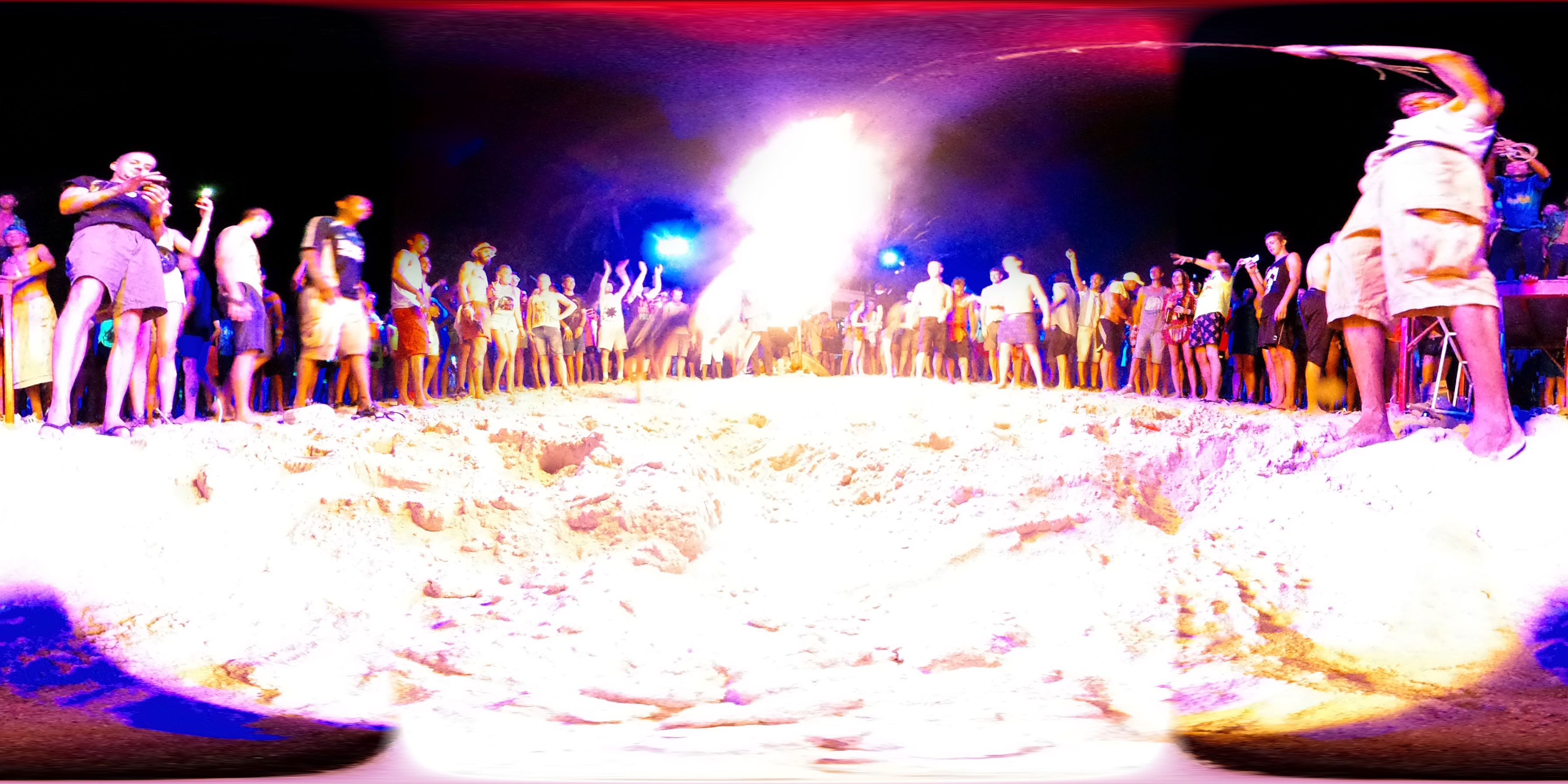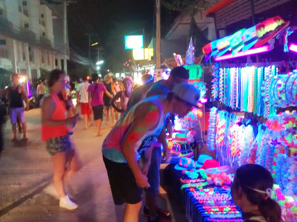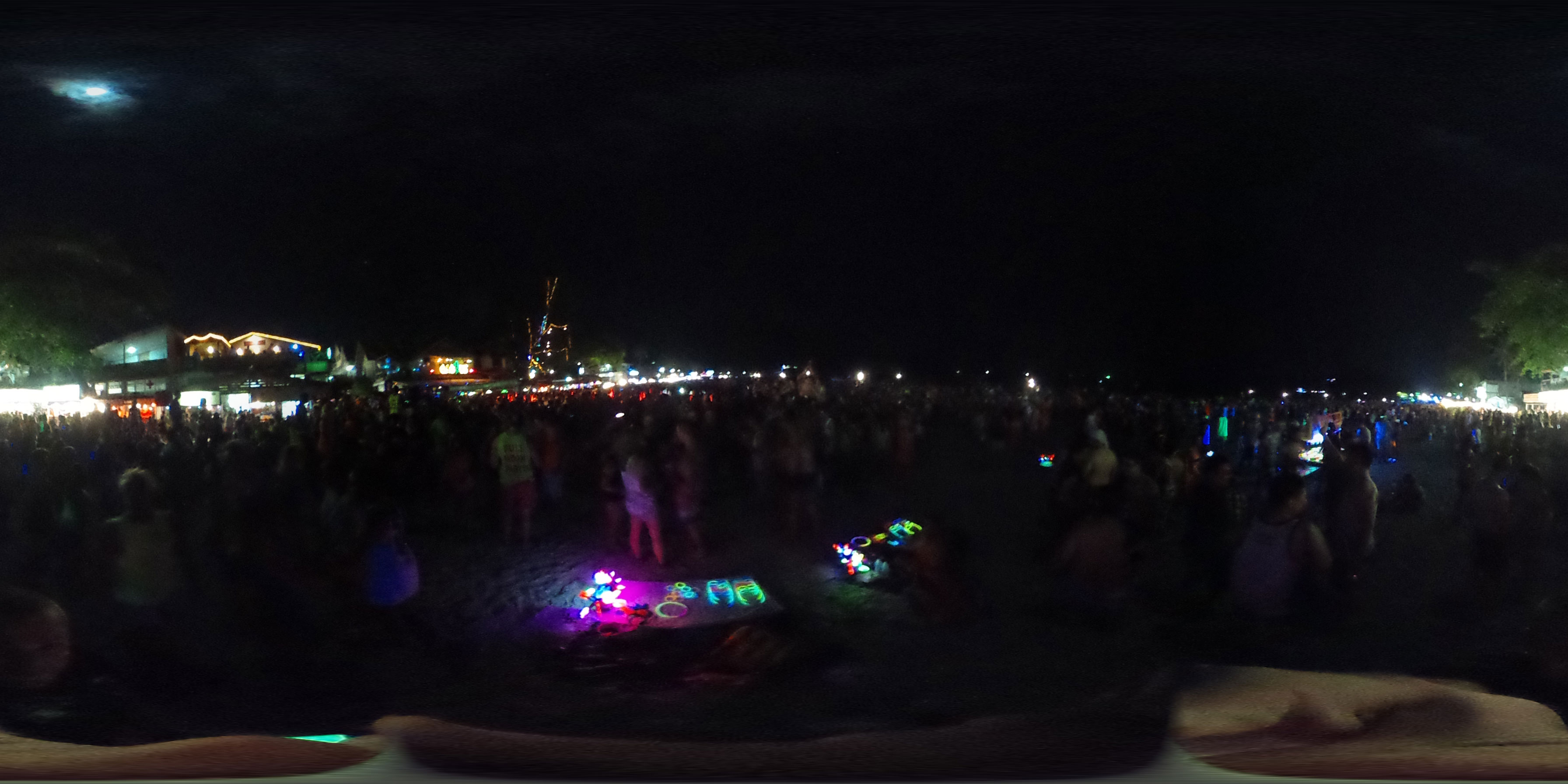 Na gut, die Nacht startete dann, Taxis kamen und brachten uns nach Haad Rin. Dort dann ging ich mit dem aus Oman. Er kannte einen Weg, um den Eintritt von 100 THB zu umgehen. Ich verlor die beiden dann doch schnell und war dann alleine. So ging ich dann gut herum, mixte mir Bier mit Red Bull und war gut drauf. Alles ziemlich trashy und touristisch aber so ist das eben mit allen netten Sachen. Ich fand’s OK, schließich bin ich auch fast nur deswegen hier.