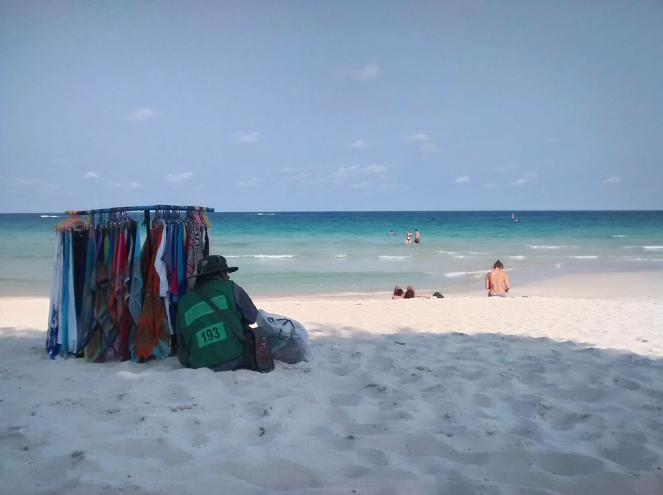 Die Temperatur ist so warm, dass man quasi die ganze Zeit baden könnte. Ich ging mal mit der Taucherbrille rein aber Fische sind hier nicht zu finden. es gibt nur Sand, keine Korallen in Ufernähe.
