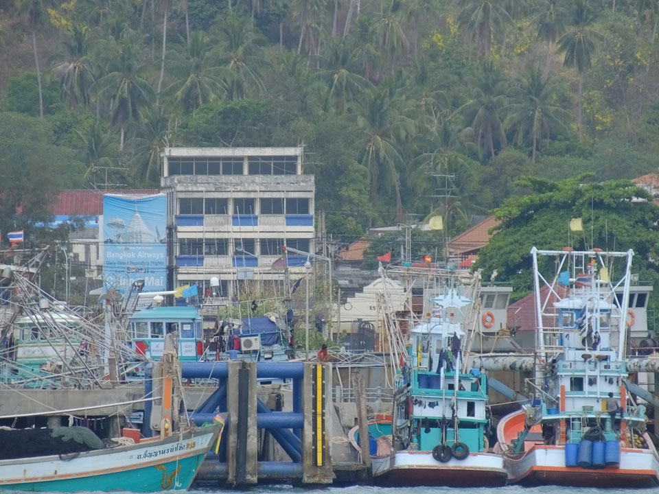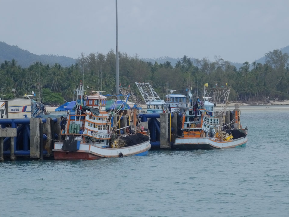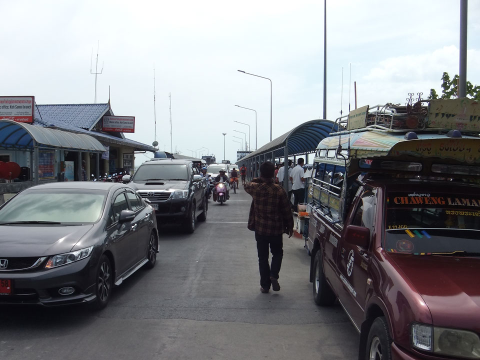 Der nette thailändische Hostelorganisator war sogar in Aue und auch in Chemnitz. Was es so alles gibt. Ich wartete dann auf ’nen roten Pickup, was sowas wie ein Linienbus hier ist. Für 100 THB (€2,90) brachte er mich zum Nathon Pier. Er wollte erst 200, dann 150 aber ich wusste, dass es 100 kostet. War auch OK, man probiert’s halt immer.