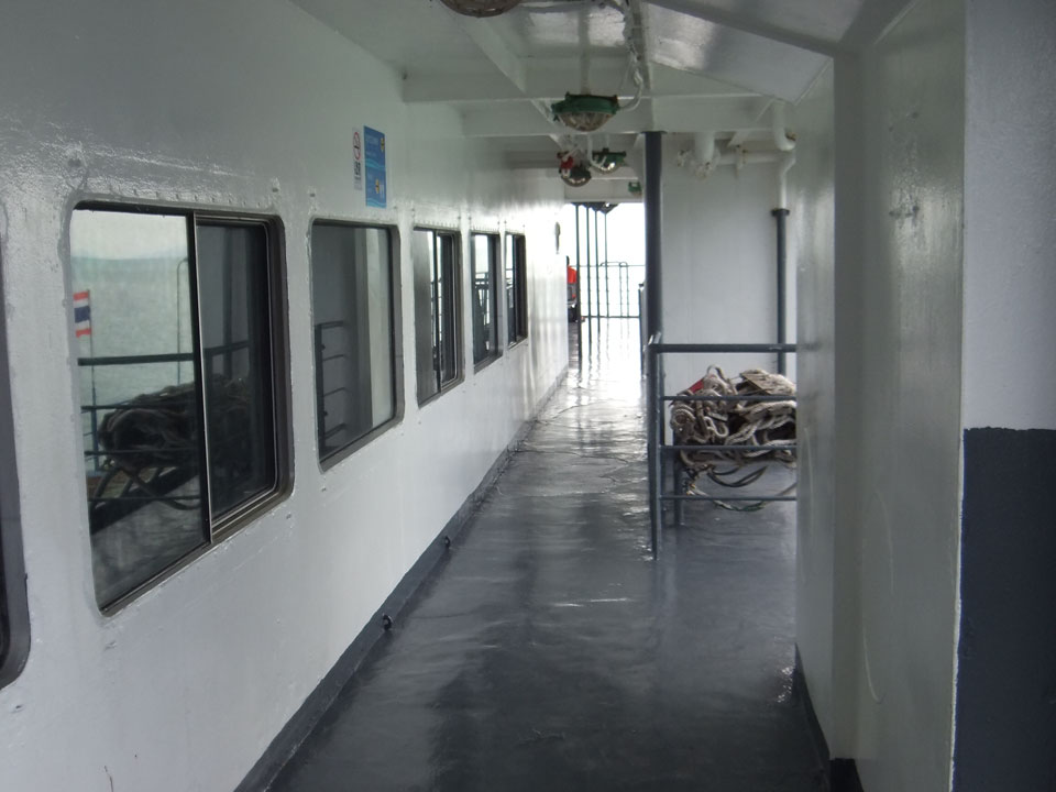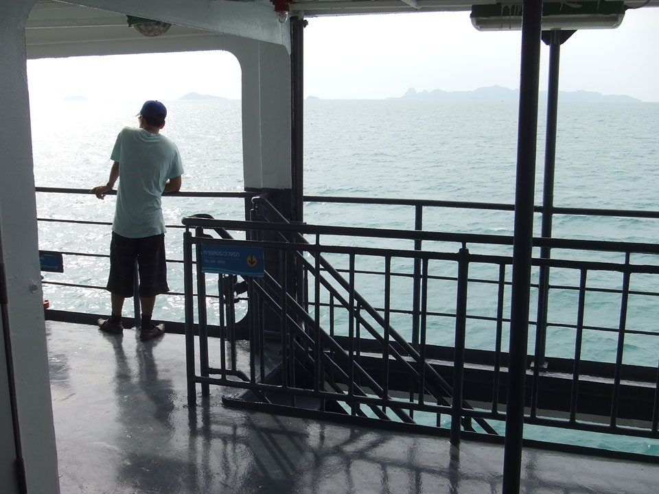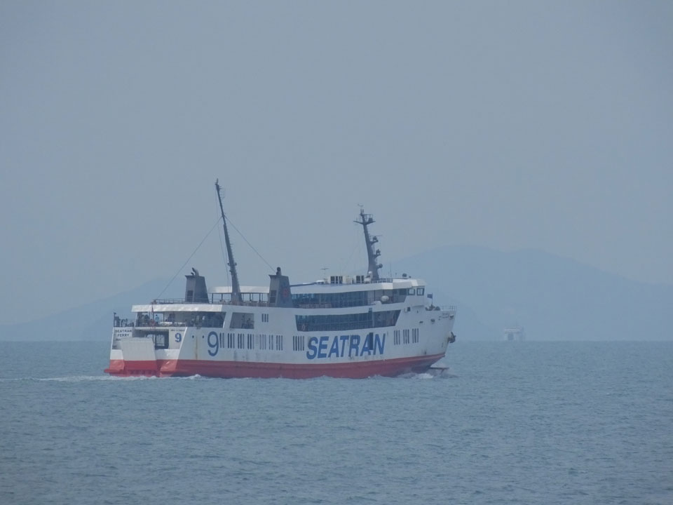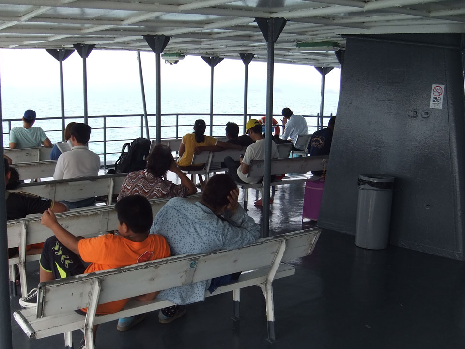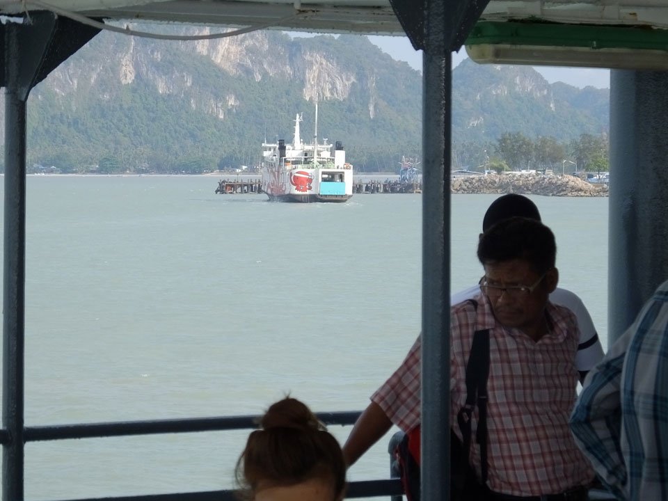 Dort kaufte ich mir fix ein Ticket für die Fähre, die nur minuten später ablegte. Zeitlich passte das alles, denn nach 3 war ich See. Mit Seatran ging’s nach Donsak. Dort dann wollte ich nach Khanom, zu den pinken Delfinen. War aber nichts dort – nur ein Bus nach Surat Thani. Nochmal ein Ticket für 100 THB und in den Bus. Alle Plätze belegt – nur ganz hinten an der Toilette war eine Notbank, wo auch noch ein Thai hinzukam. Ich war inzwischen wieedr müde, nickte ienige Male weg, denn die Fahrt war lang.