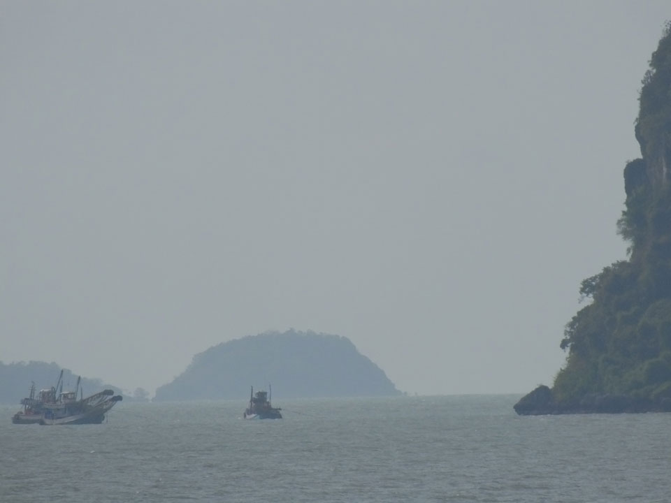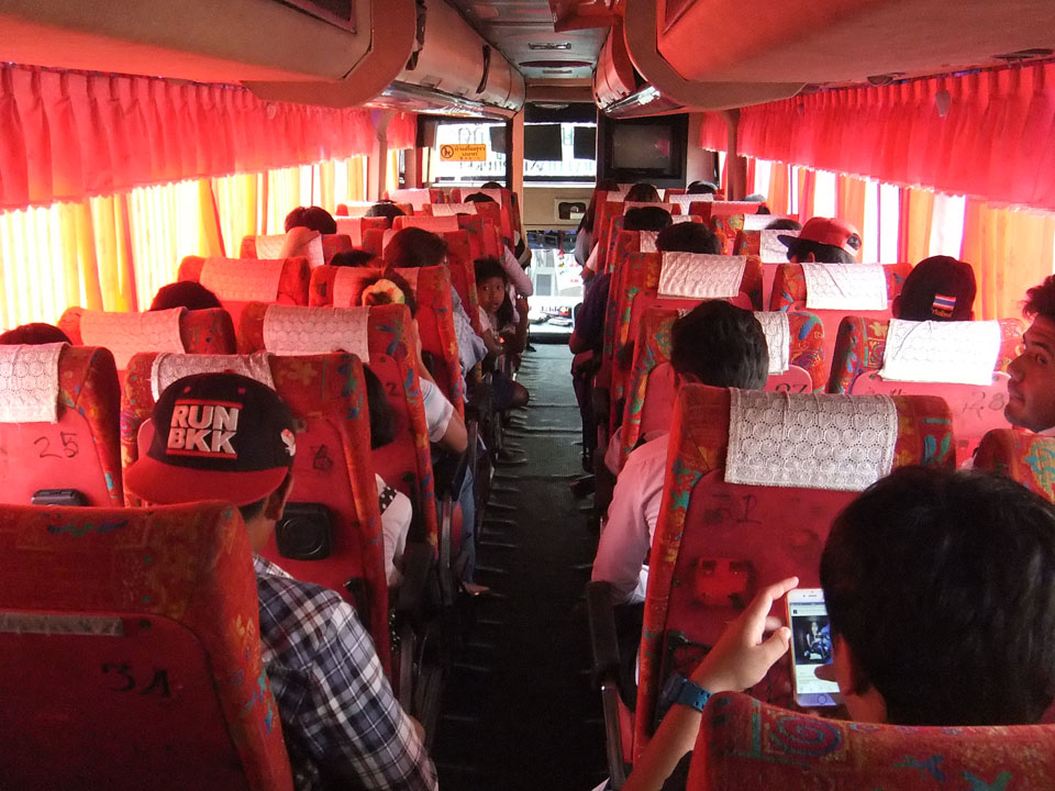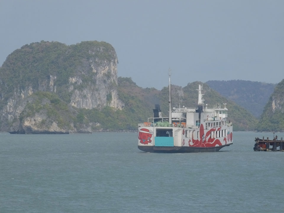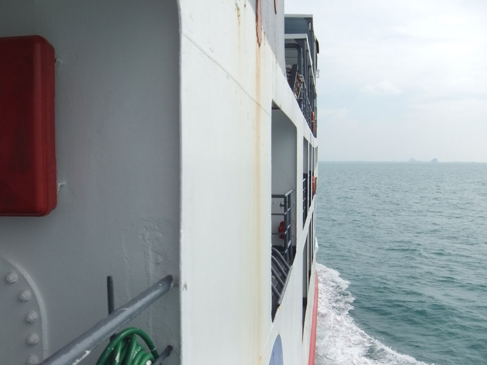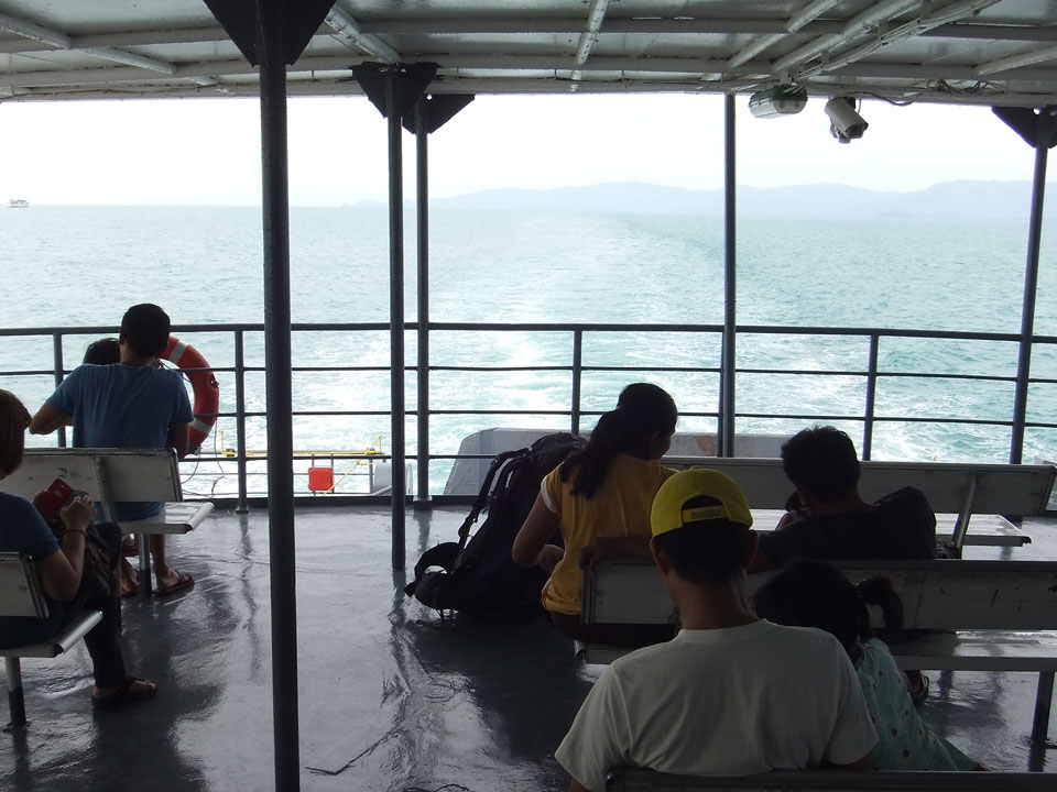 Dort kaufte ich mir fix ein Ticket für die Fähre, die nur minuten später ablegte. Zeitlich passte das alles, denn nach 3 war ich See. Mit Seatran ging’s nach Donsak. Dort dann wollte ich nach Khanom, zu den pinken Delfinen. War aber nichts dort – nur ein Bus nach Surat Thani. Nochmal ein Ticket für 100 THB und in den Bus. Alle Plätze belegt – nur ganz hinten an der Toilette war eine Notbank, wo auch noch ein Thai hinzukam. Ich war inzwischen wieedr müde, nickte ienige Male weg, denn die Fahrt war lang.