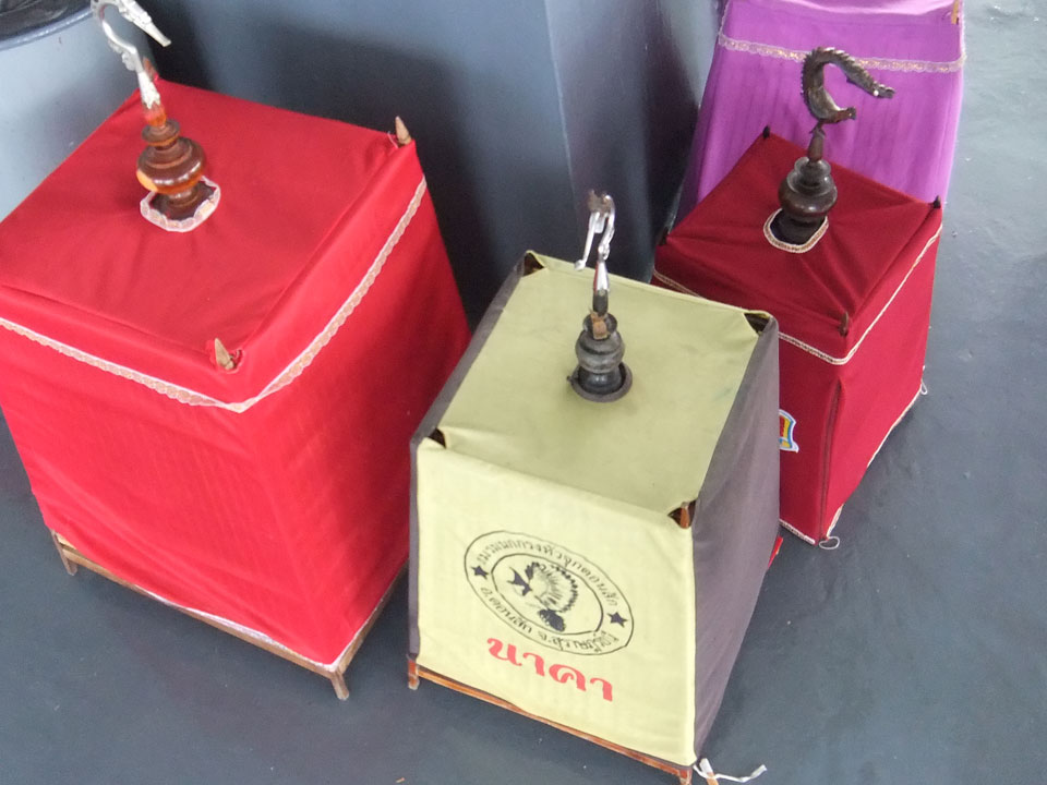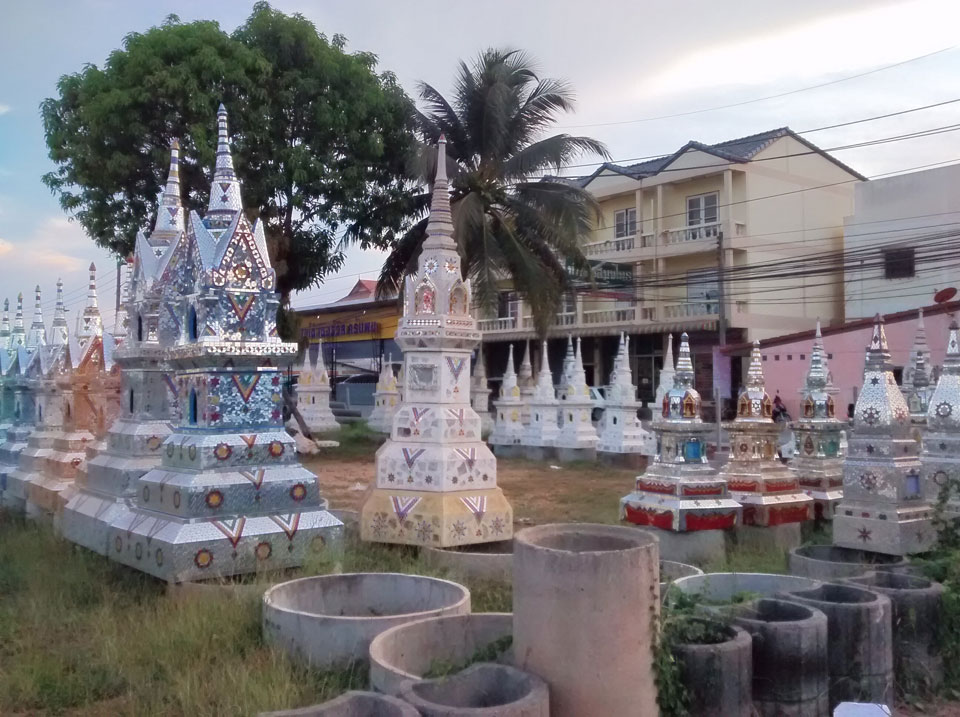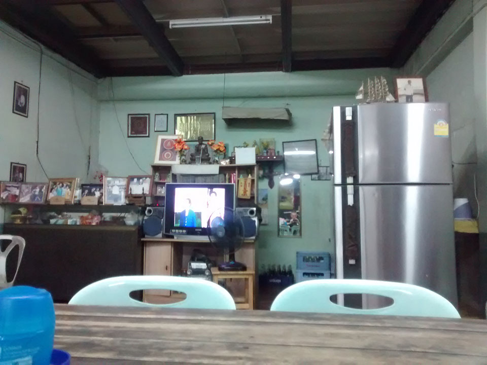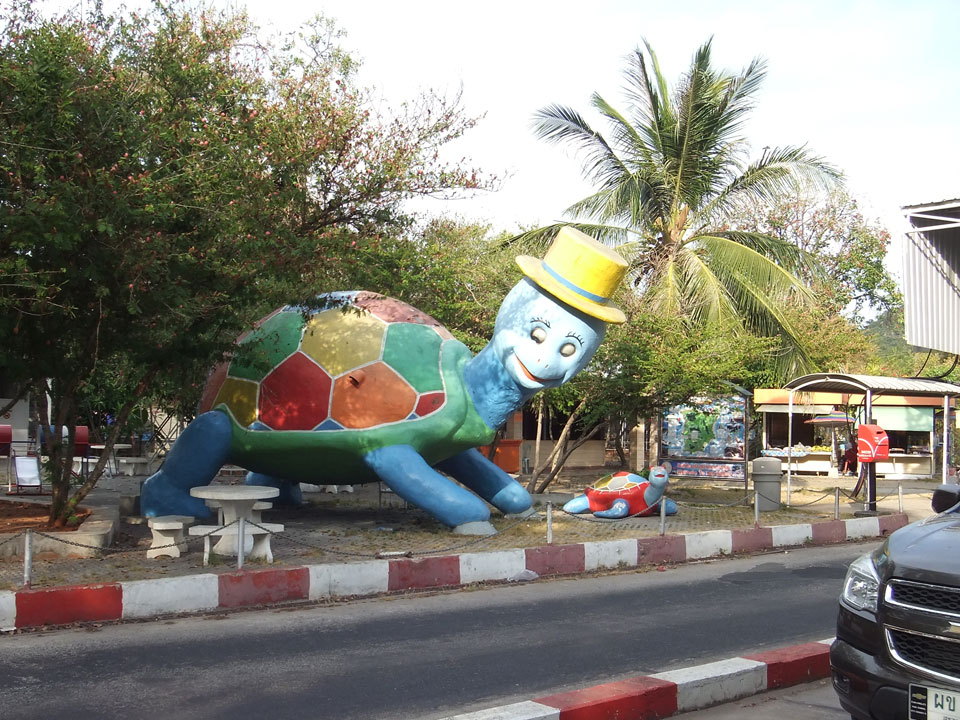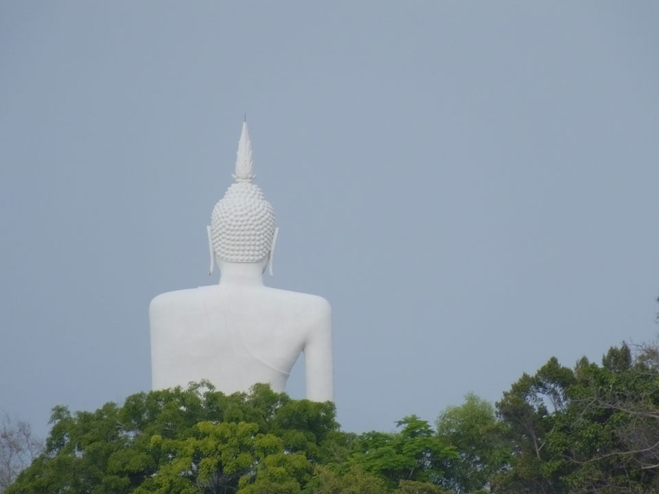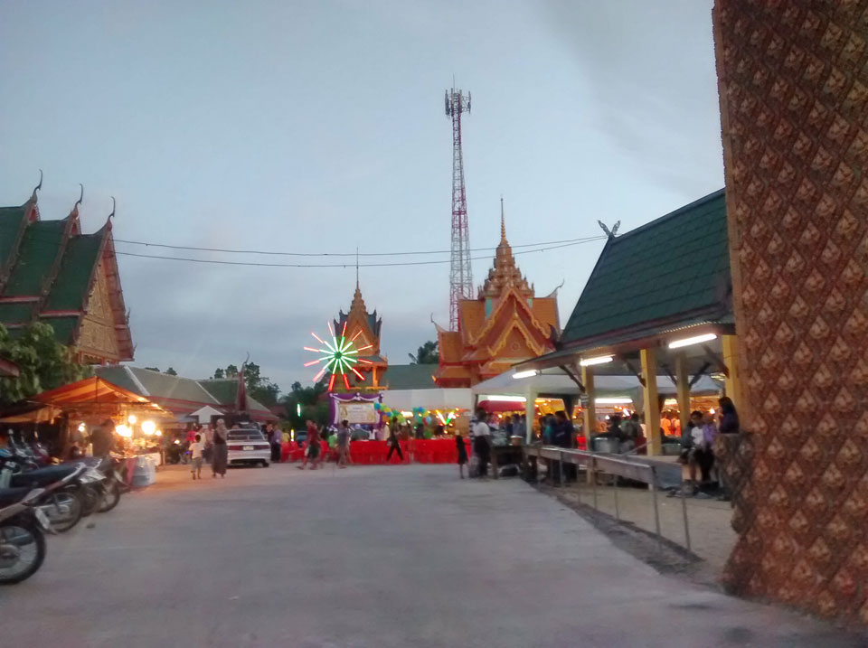 So ging ich weiter, war erst mal gestrandet. Eine Fitness-Gruppe, dann Tempelgegend. Dort fragte ich einen, er schickte mich etwas zurück zu einer Art Polizei. Ein Mann fuhr mit seinem Moped, um ein TukTuk nach Surat Thani zu organisieren – aber auch da war nix. Eine Frau sagte auf Englisch, dass erst morgen um 7 wieder Busse nach Khanom fahren. Ich fuhr mit dem Mopend schließlich etwas zurück, da starrten 5-6 Leute auf mich, als ich erklärte, dass ich wohl nach Surat Thani in ein Hotel müsste.