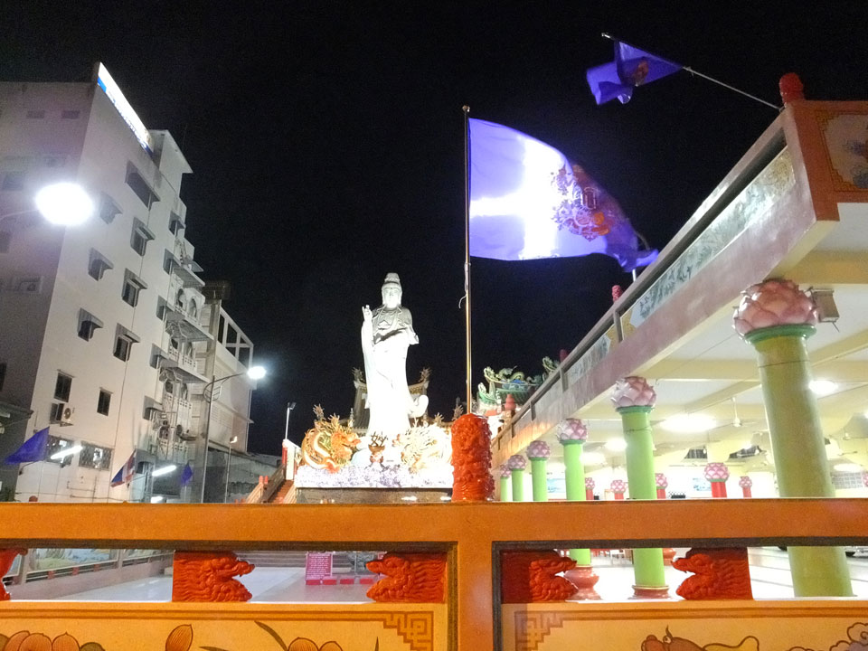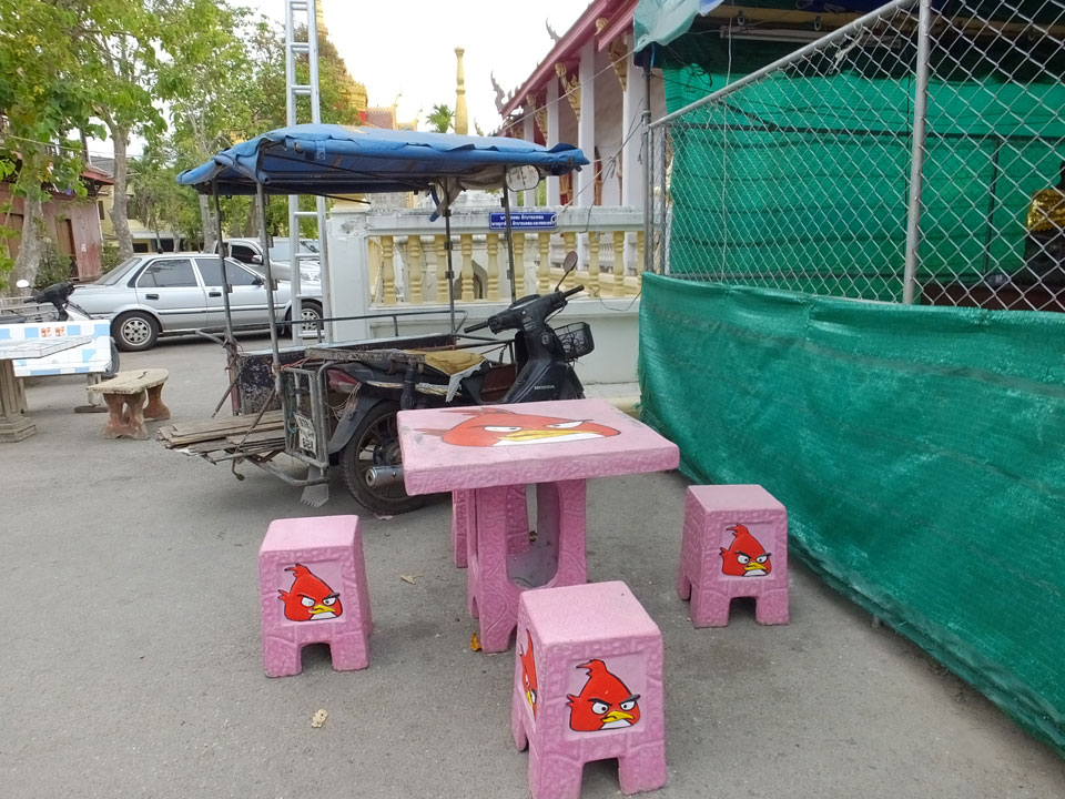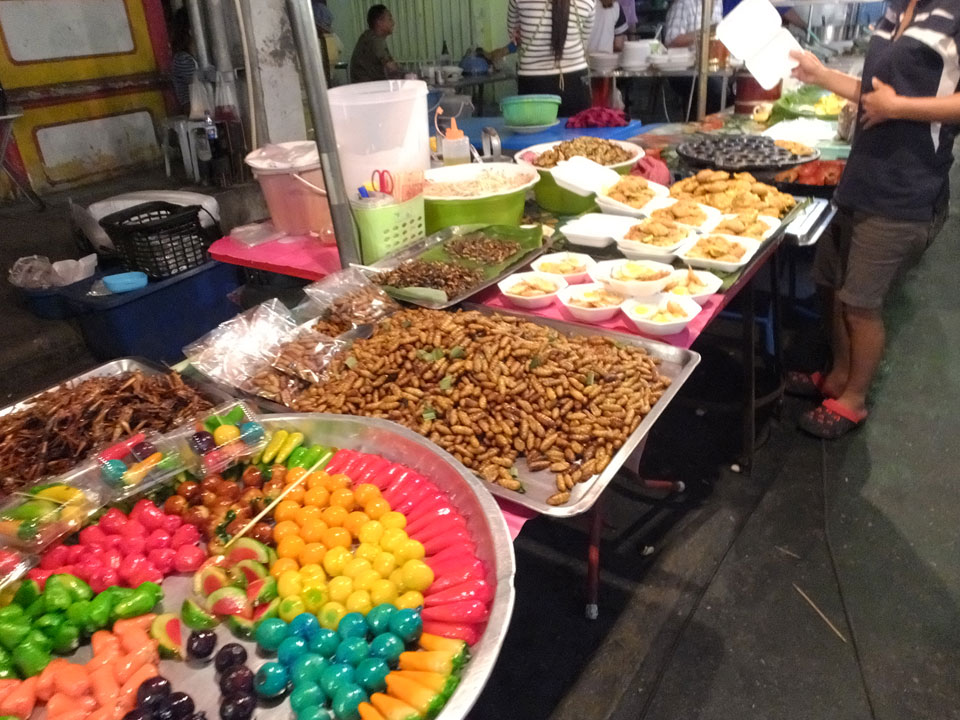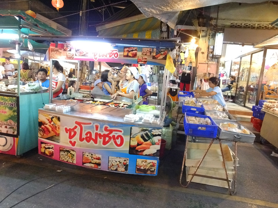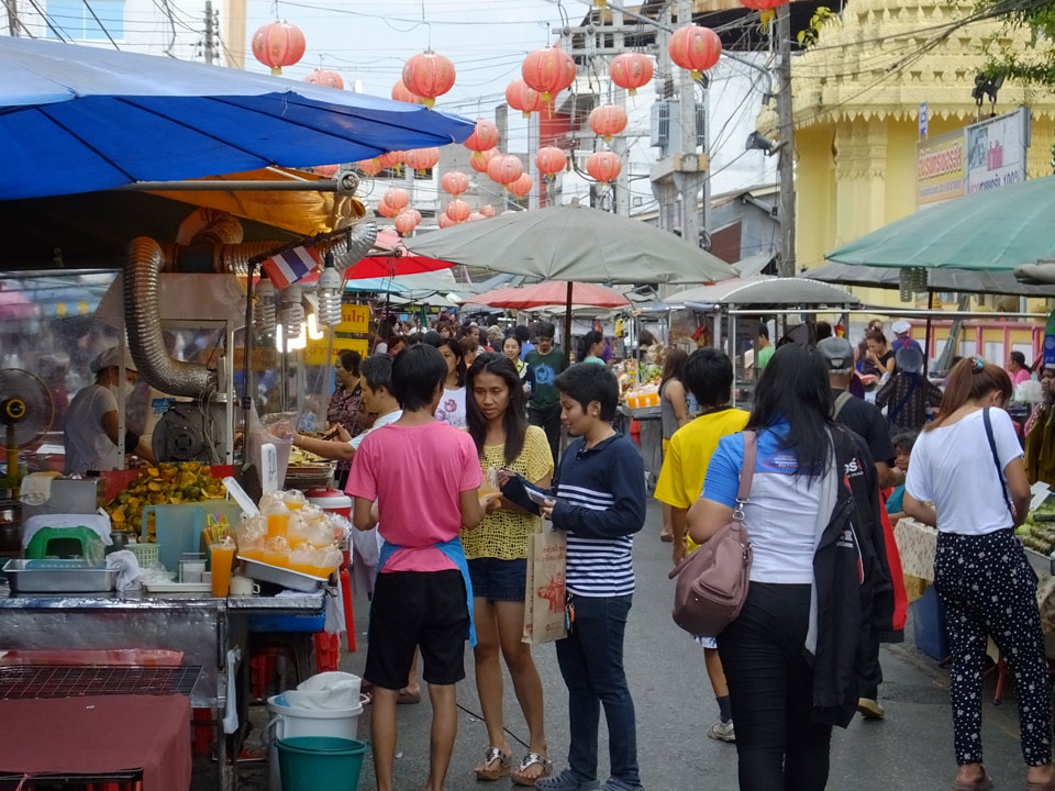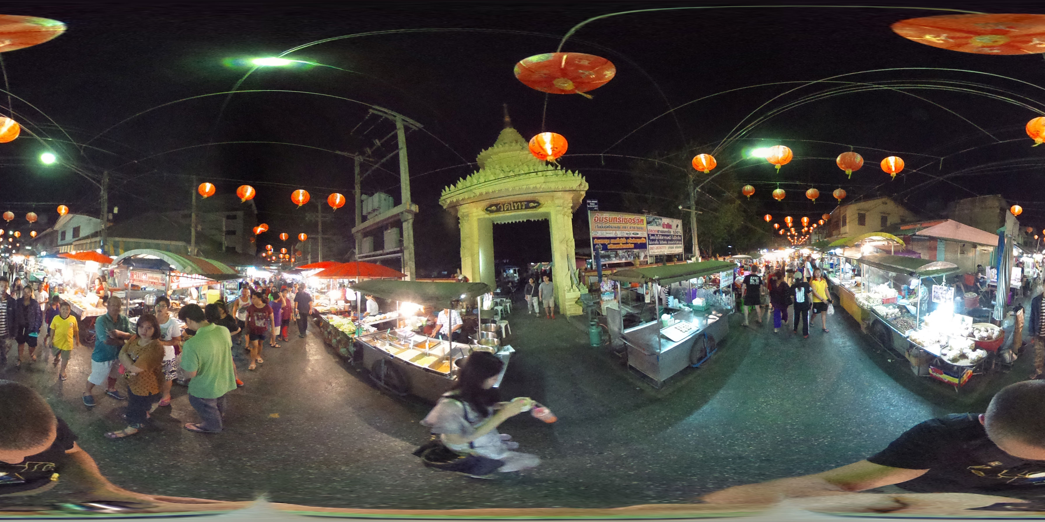 Abends dann nochmals auf den Markt. Ich knipste 360°, aß so Einiges von den Ständen. Schließlich setzte ich mich in ein Restaurant auf ein Curry. Ein Thai fing ein Gespräch an, sehr gutes Englisch. Er hat ’ne Firma in Bangkok – Shipping. Er sagte, er hat noch nie einen Foreigner das Fisch-Curry essen sehen, weil zu scharf. Das hatte ich gerade mit Chilli nachgeschärft. Meine Nase lief aber auch ordentlich, wie immer, schmeckte aber ganz gut. Hier im Süden ist eben alles spicy. Ich überlegte nur, woher der Fisch stammt. Der Fluss schien nicht gerade sauber.