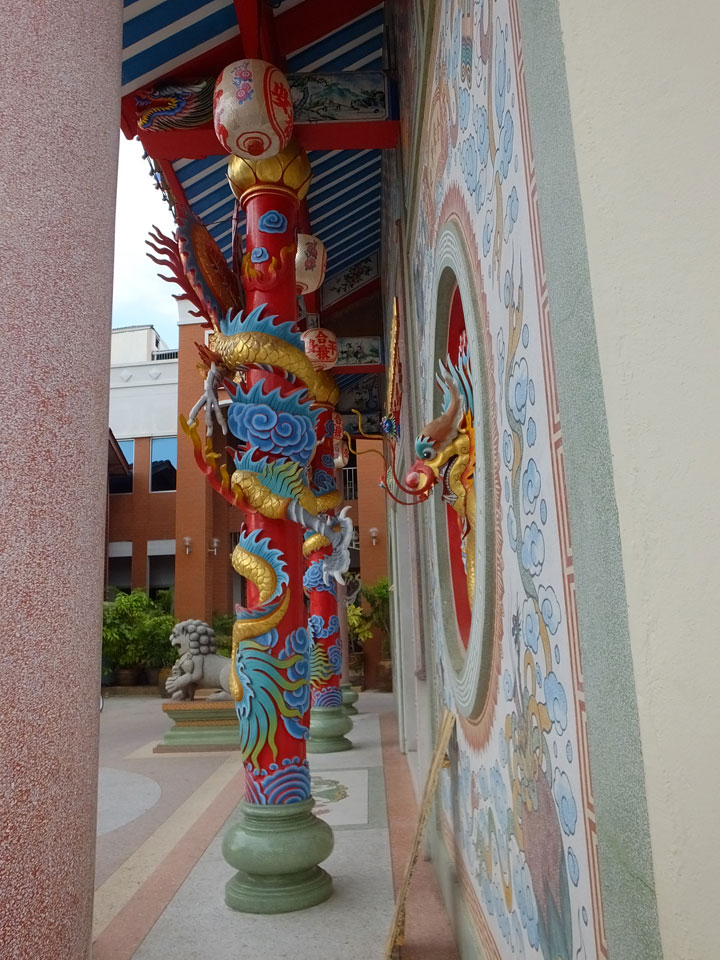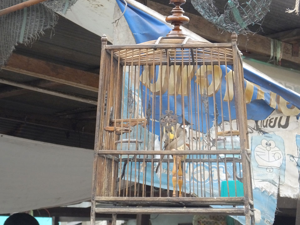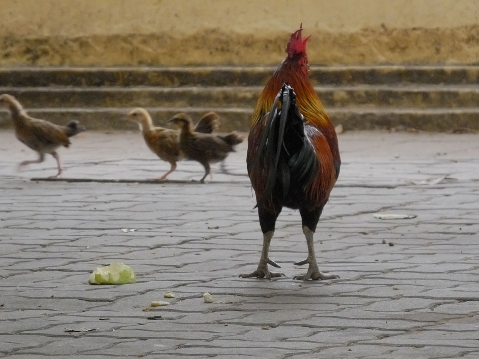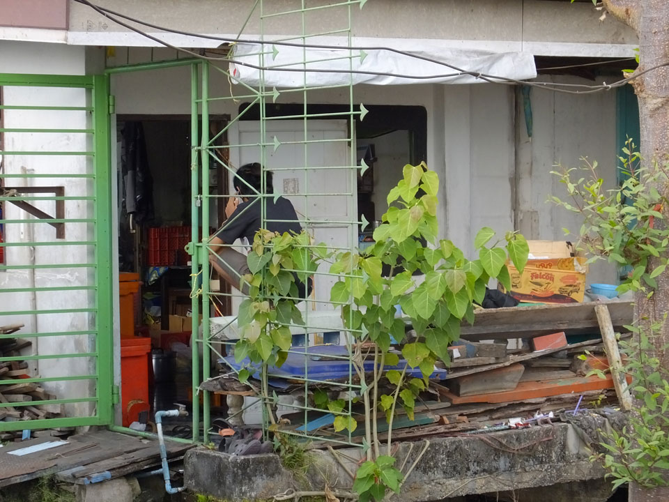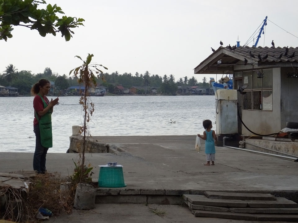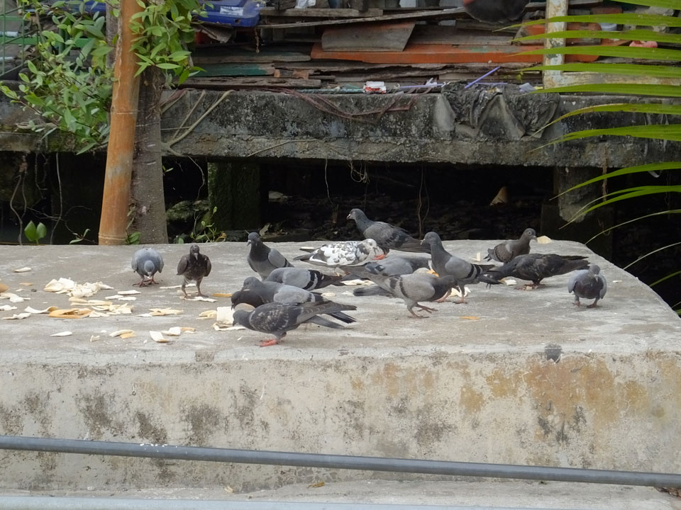 Am Fluss unten war das echte Südostasien-Atmosphäre: Longboats und Leute, die am Fluss wohnen. Ich wollte ein paar Tauben knipsen, die gefüttert wurden – mit der Theta. Da kippte die um und es war ein weiterer Kratzer auf der Linse. So empfindlich das Ding – jetzt zeigt sich ein dunkler Punkt auf jedem Bild. Sehr ärgerlich! Hätte wäre wenn – man sollte das Ding echt nur mit Stativ nutzen. Jetzt ist’s zu spät.