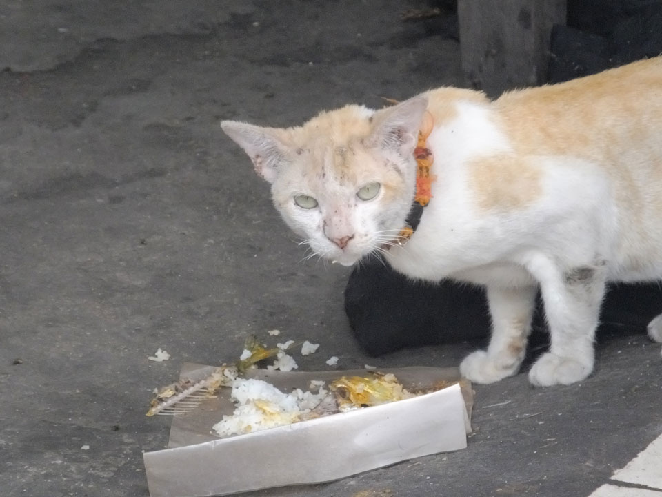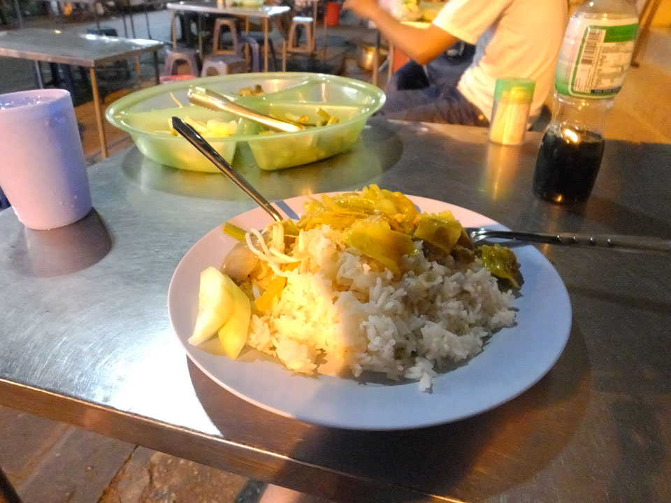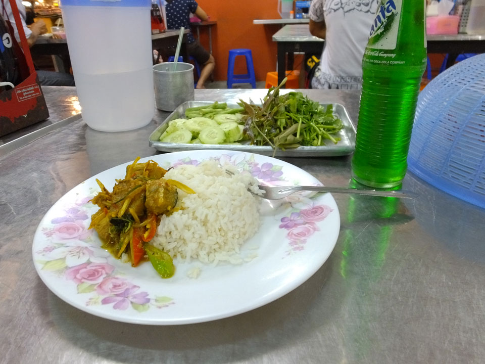 Doch bissel zu warm für meinen Geschmack. Ich wechselte in ein AC-Zimmer für 450 THB die Nacht. Es dauerte eine Weile, bis ich da raus kam. Dann Schweinefleisch mit Reis und Cola, es war schon nach 4.