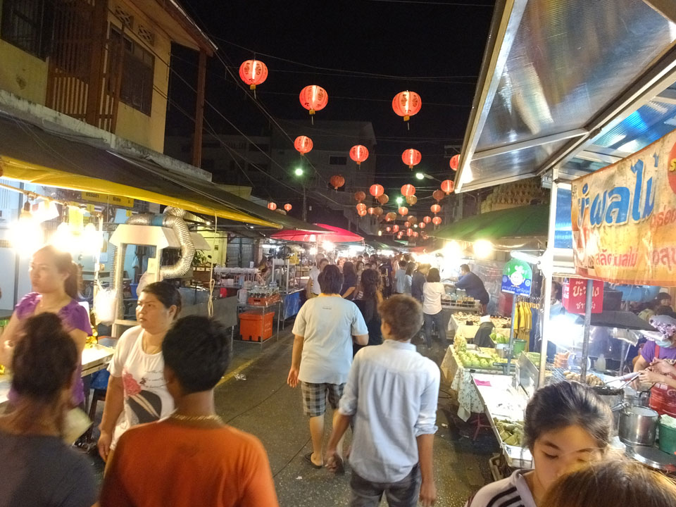 Ich holte mir noch einen Eiskaffee und wollte zum Nacht- und Wochenend-Markt, der heute stattfand – bis 22:00. Ich fand dann auch relativ schnell die vielen Stände. Bis runter zum Fluss gab’s viel zu sehen – keine weiteren Touristen.