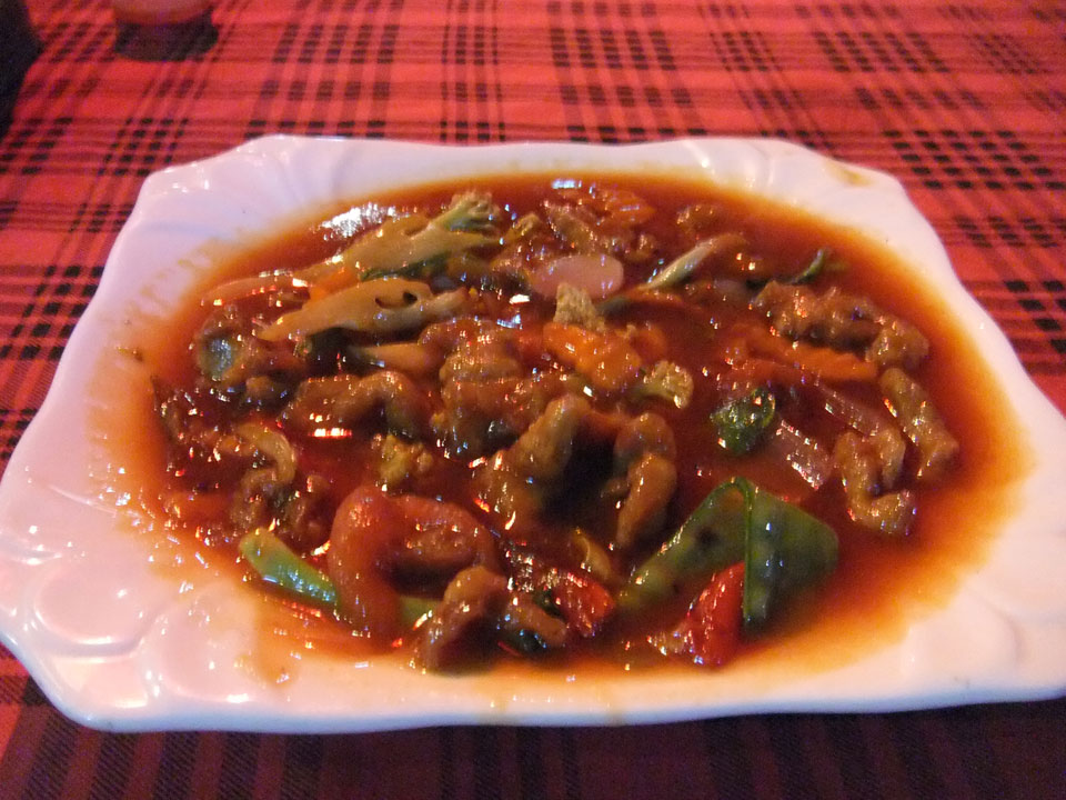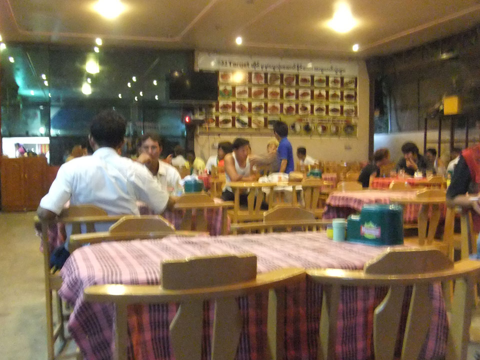 Ich ging um die Ecke was essen. Ein chinesisches Gericht – Süß/saures Curry samt Wasser kam 3500 KYT (€3.30). Nicht ganz so billig aber OK.