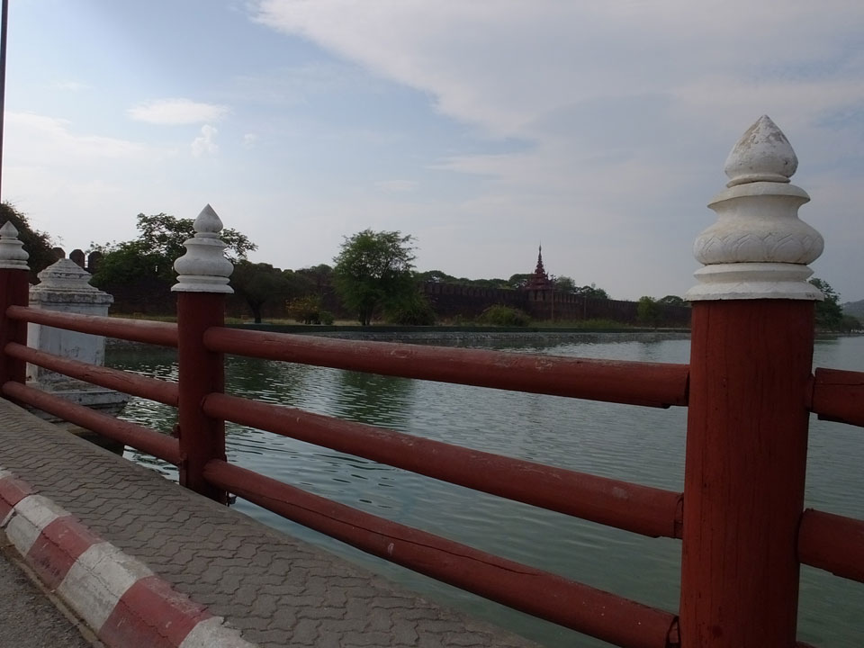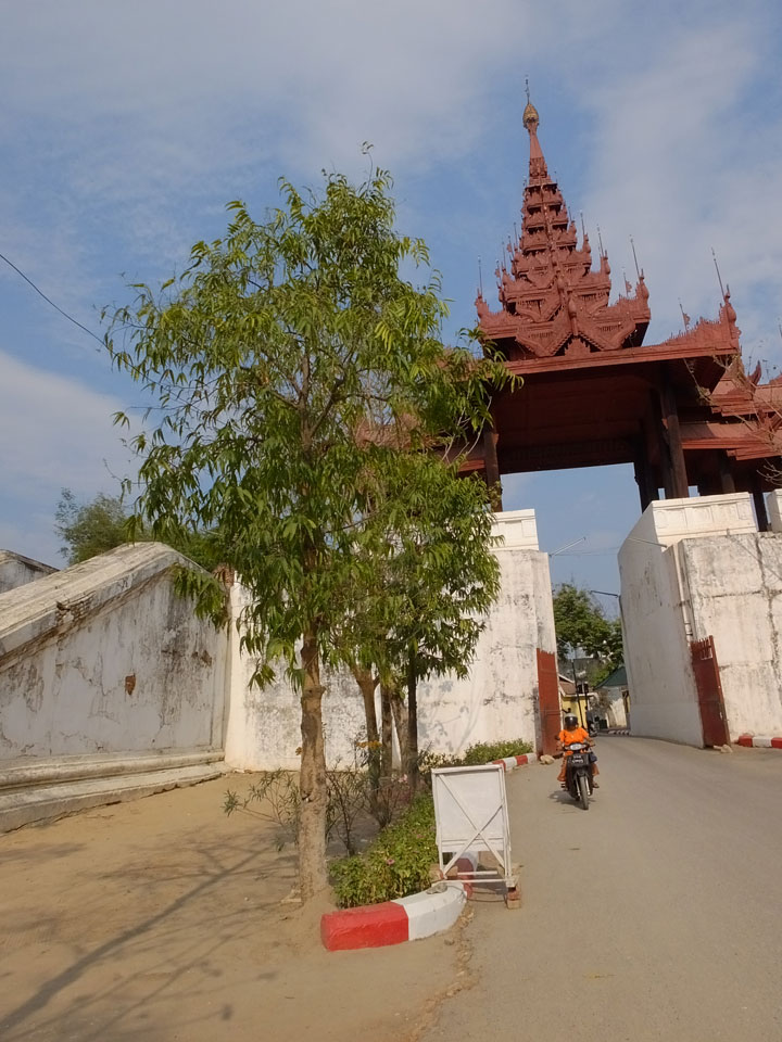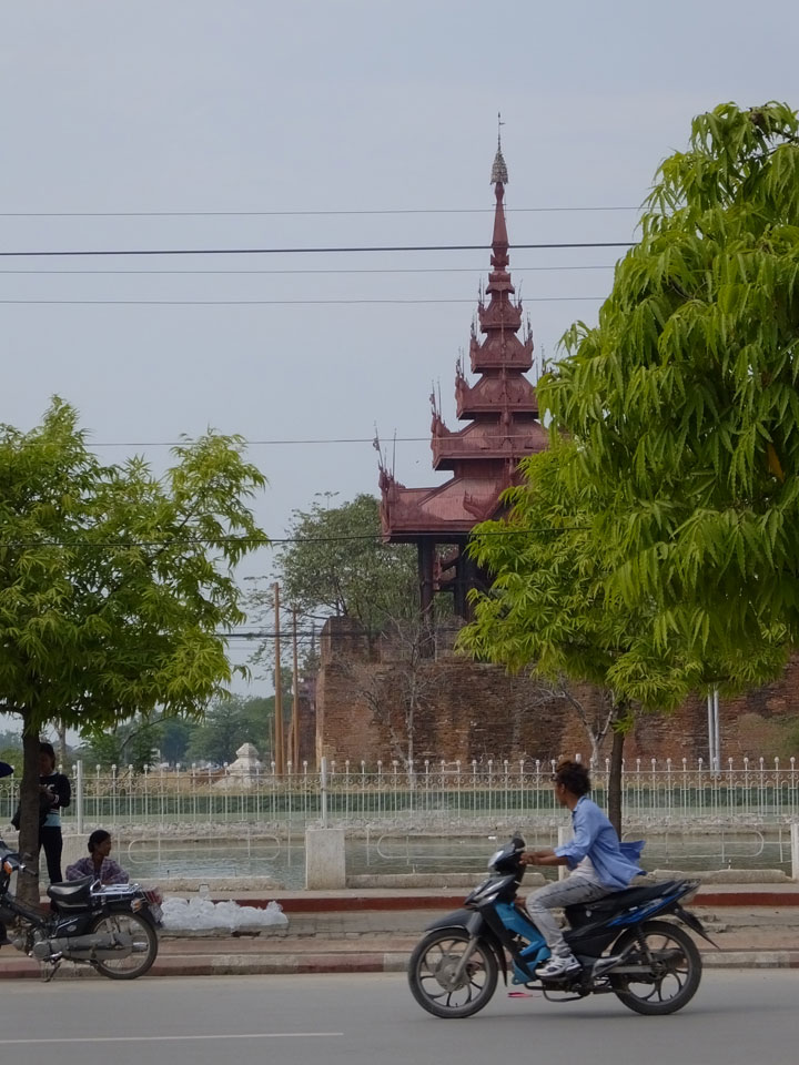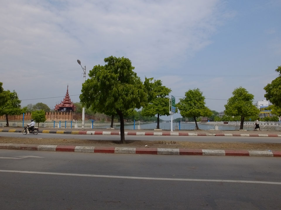 Das erste Ziel war das Castle. Mandalay ist groß und im die Mauern um die Burg sind lang. Alles war viel länger, als gedacht. Ich radelte gut 15′ an einer Mauer entlang. Auf dem Highway mit nur wenigen Fahrradfahrern gab’s zwar eine Fahrradspur, doch ich fühlte mich nicht so sicher beim Abbiegen.