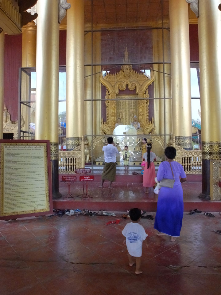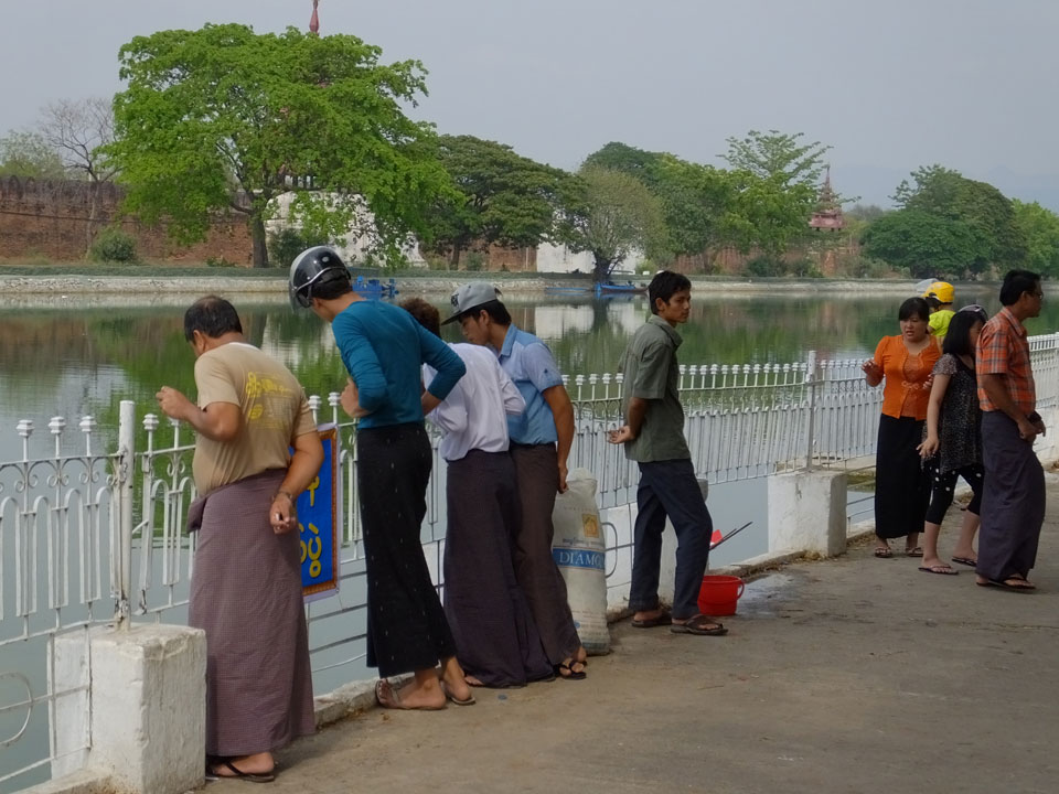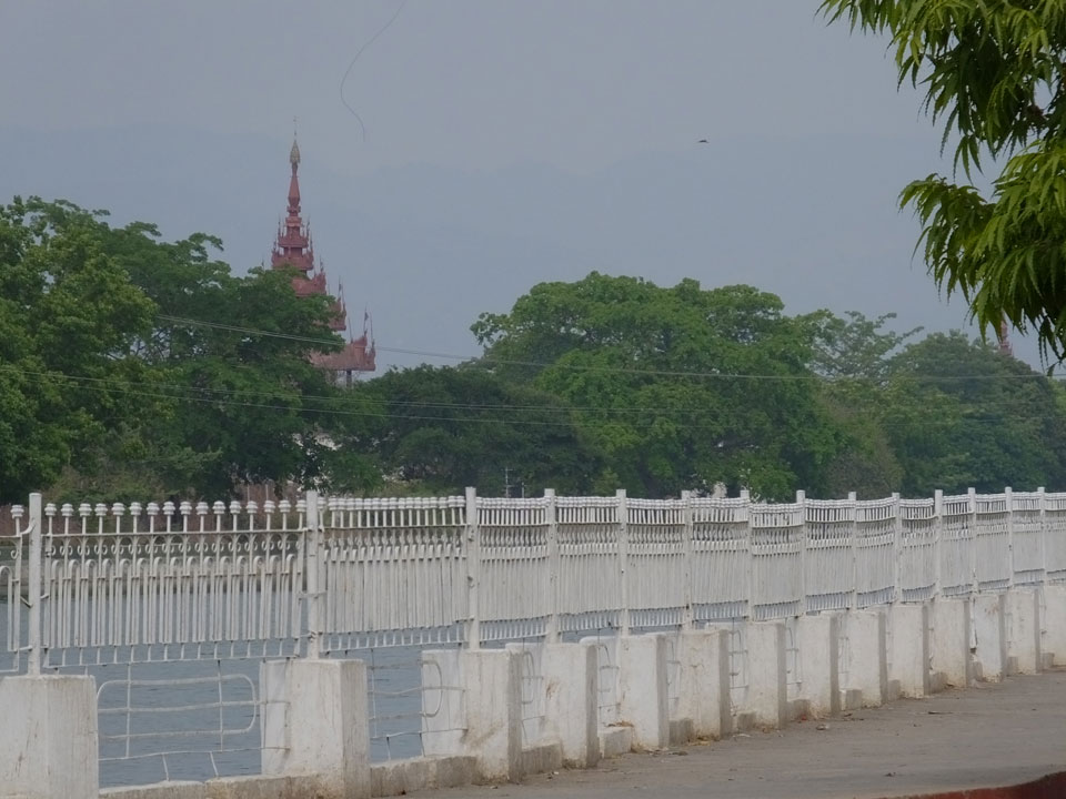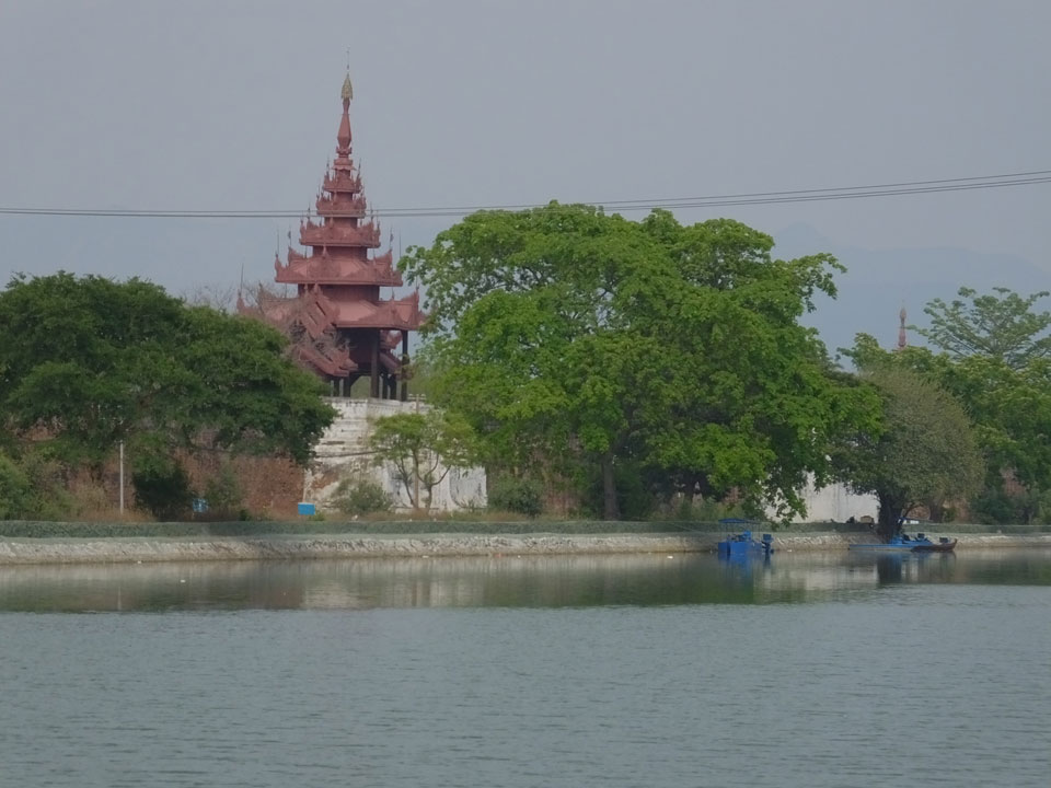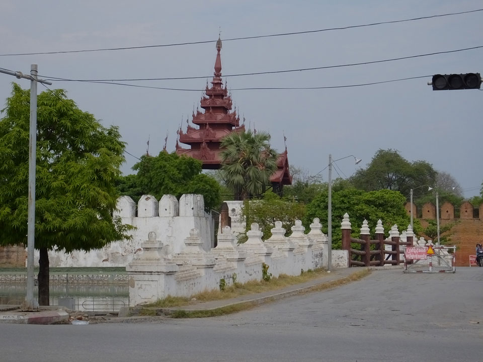 Das erste Ziel war das Castle. Mandalay ist groß und im die Mauern um die Burg sind lang. Alles war viel länger, als gedacht. Ich radelte gut 15′ an einer Mauer entlang. Auf dem Highway mit nur wenigen Fahrradfahrern gab’s zwar eine Fahrradspur, doch ich fühlte mich nicht so sicher beim Abbiegen.
