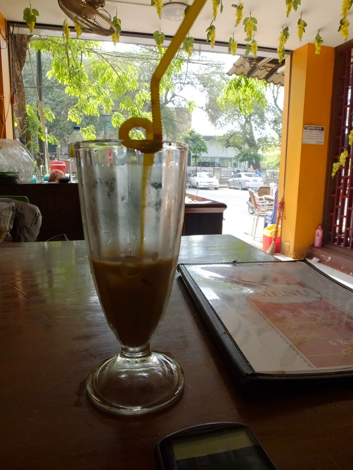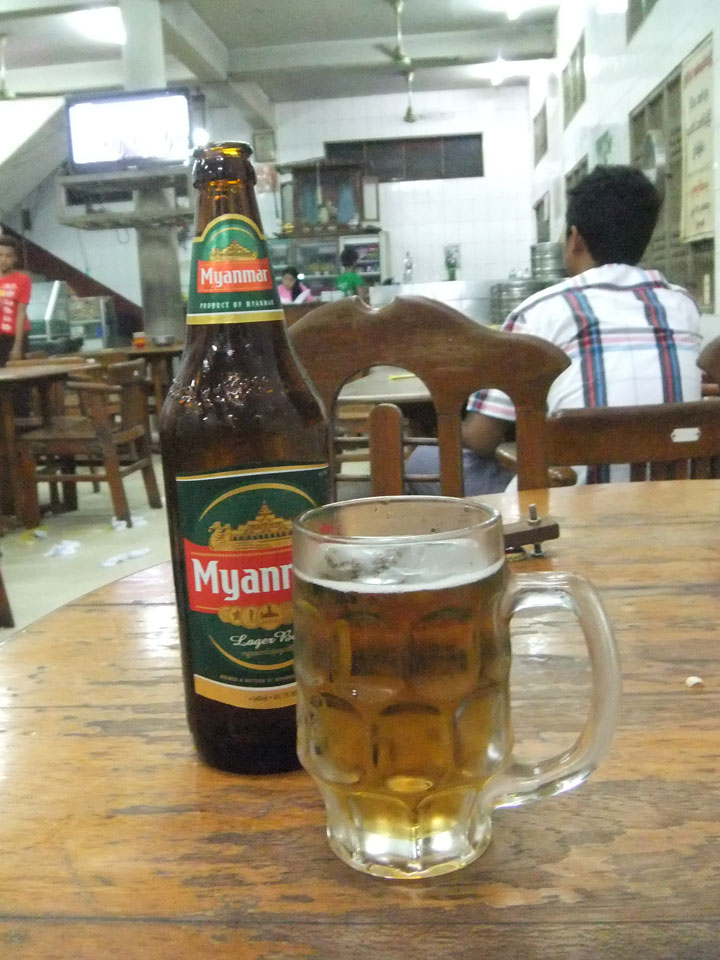 Ein Engländer saß draußen, redete it ihm. Der Geldautomat neben dem Hotel war „out of service“. Der Rezeptionist ging mit mir. In einem Hotel um die Ecke klappte es und ich zog mir heftige 150.000 KYT. Mal sehen, ob die Gebühren fest sind. Nach so viel Wasser und Schwitzen heute brauchte ich was zu Trinken. Ich holte mir ein Bier (640 ml) – 1.800. Danach redete ich etwas mit dem Engländer, der noch immer draußen saß. Er kommt aus Oxford, kannte CHemnitz. Als Schauspieler war er in vielen Theatern in Deutschland. Ich bekam viele Mosquitos mangels Mückenschutz ab und ging wieder auf’s Zimmer.