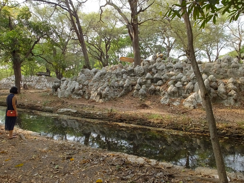 In der Hitze von fast 40 °C kam ich auch hier gut in’s Schwitzen. Lange Hosen wegen Tempeln und lokaler Mode – ich brauchte erst mal eine Erfrischung. Die kam in Form eines Eiscafés für 1000. Die Essenspreise dort im Rastaurant auch eher Richtung 5.000 pro Gericht, was doch recht teuer ist. Nach 2 1/2 Burgmauern kam ich zum Eingang und kaufte mir das Touristen-Ticket für 10.000, Teuer, aber gültig für 5 Tage.
