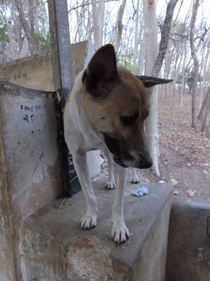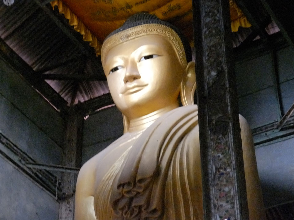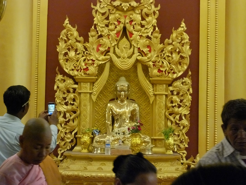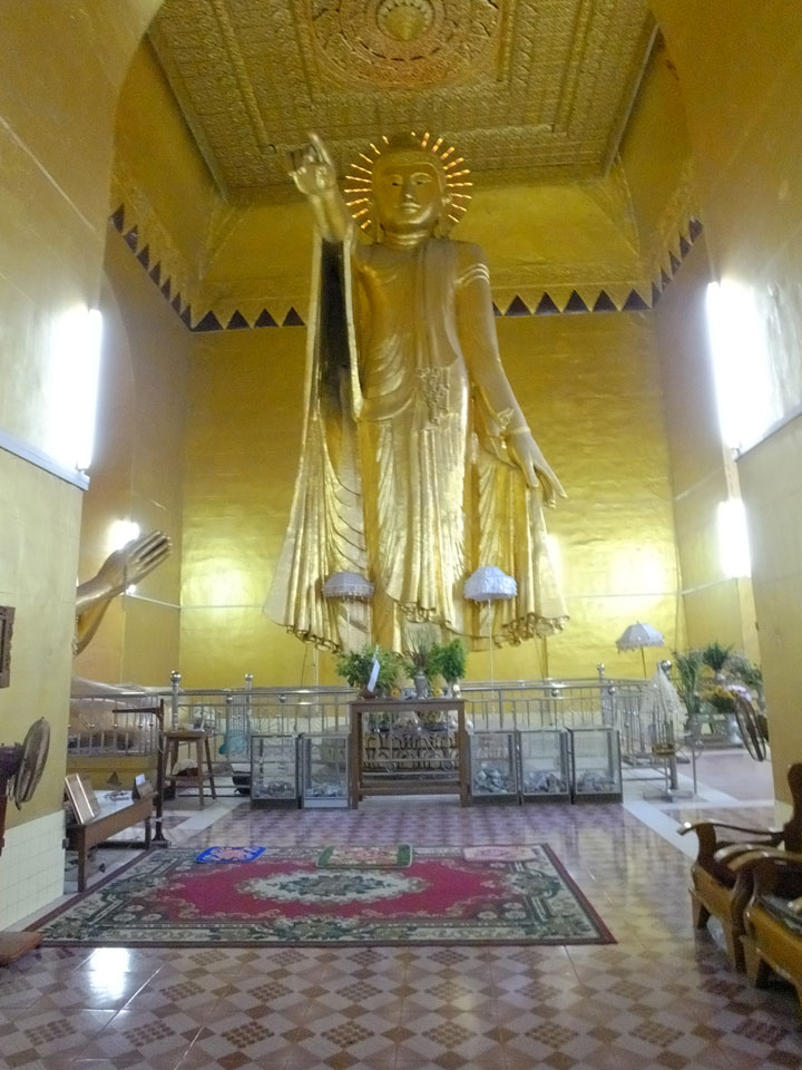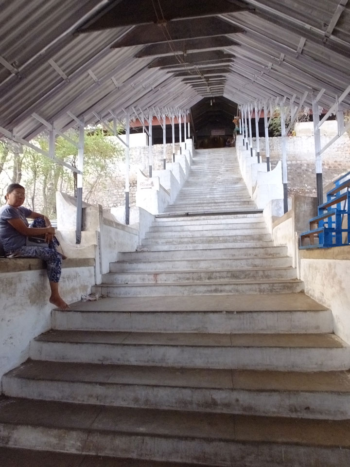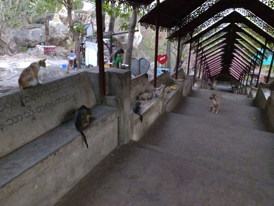 Der Weg auf den Hügel war einfach. Barfuß wurden meine Füße schmutzig. Manchmal klebte der Boden und roter Betelnuss-Saft klebte manchmal auf den Treppen. An jeder Station stand ein Buddha, ganz oben dann der Größte.