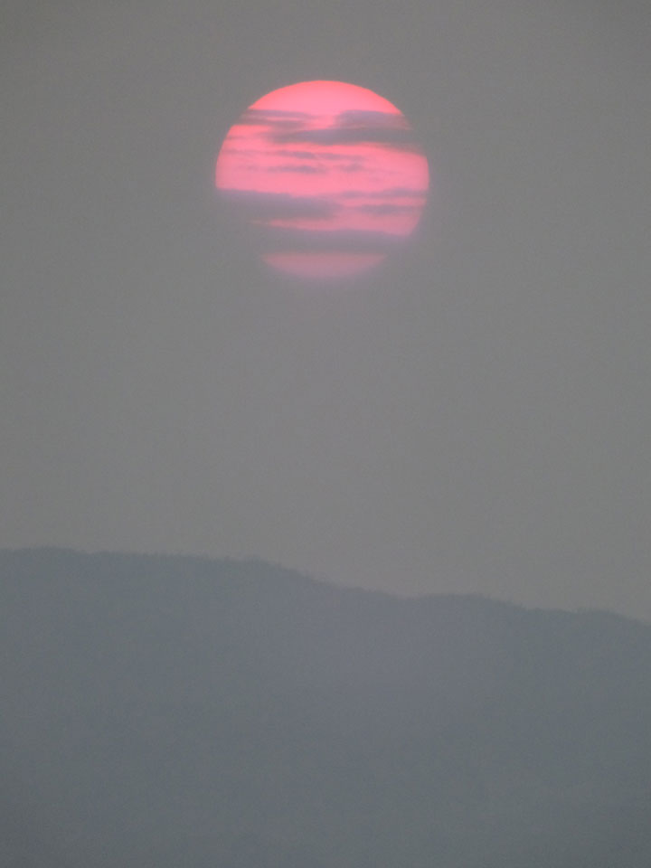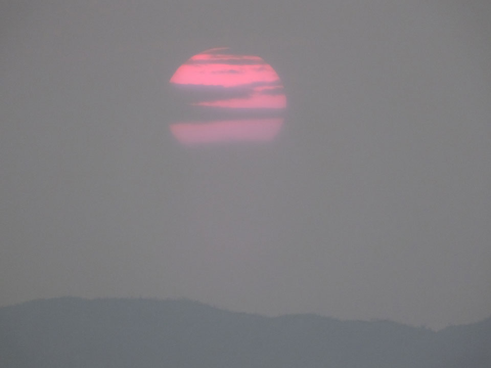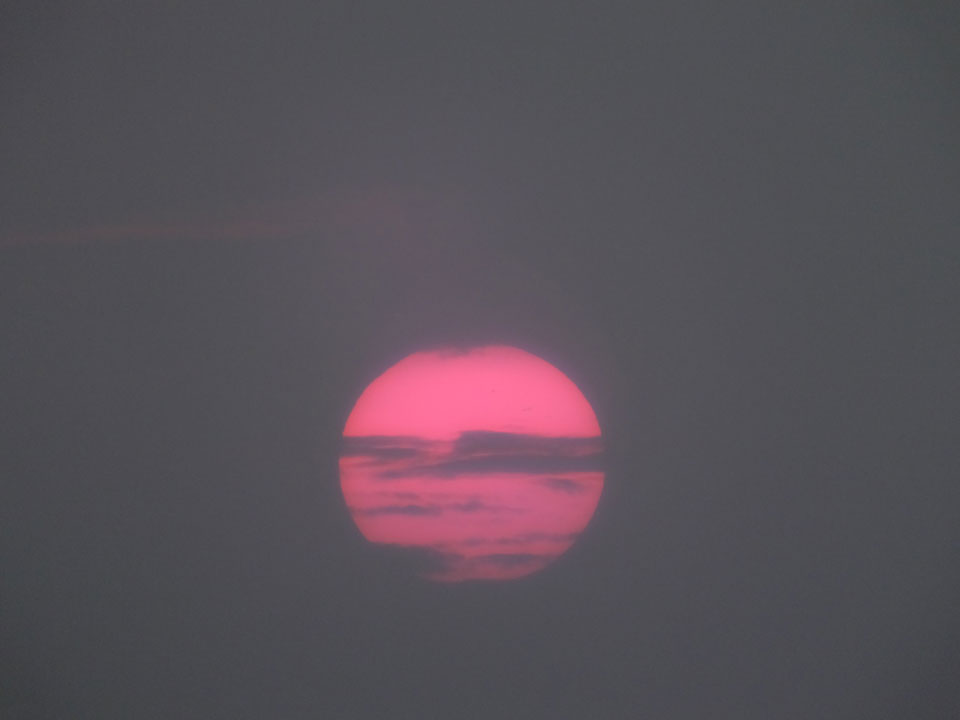 Ich kam gerade richtig zum Sonnenuntergang. Heute sah man die Sonne sogar. Mit der Luft schien sie sehr rot, statt orange auf Koh Tao. Meine Fuji hatte Probleme mit dem Fokus.