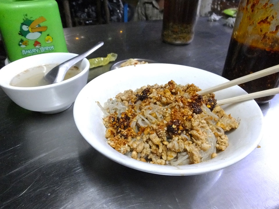 Es war inzwischen finster und ich hatte einen weiten Heimweg. Mein Rad hatte Licht aber die Funzel reichte kaum für echte Vorausschau. ICh machte langsam und kam auch dank GPS gut Richtung Hotel. Im Billig-Nudel-Laden wieder das Essen, wie gestern – 700. Jetzt hatte ich nur noch um die 200 übrig, also zum Hotel. Fahrrad abgegeben, Dusche und chillen.