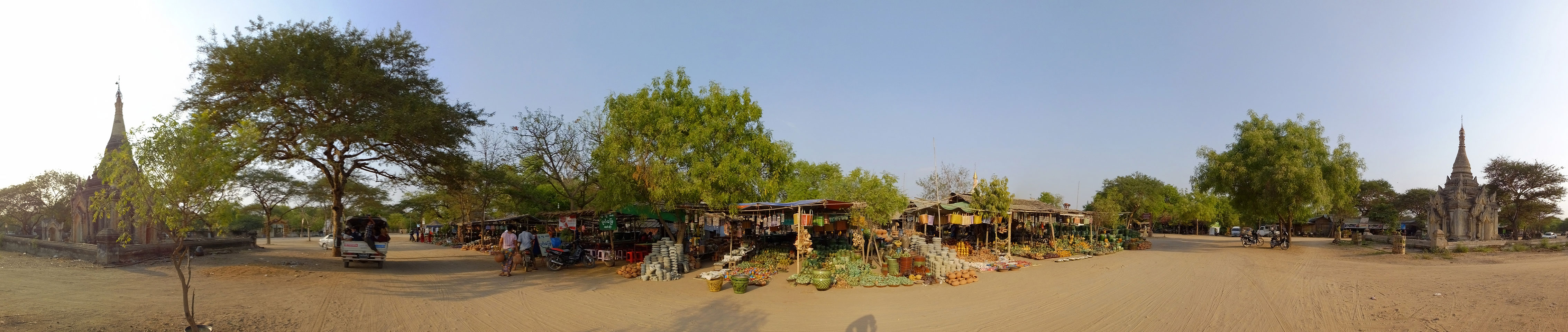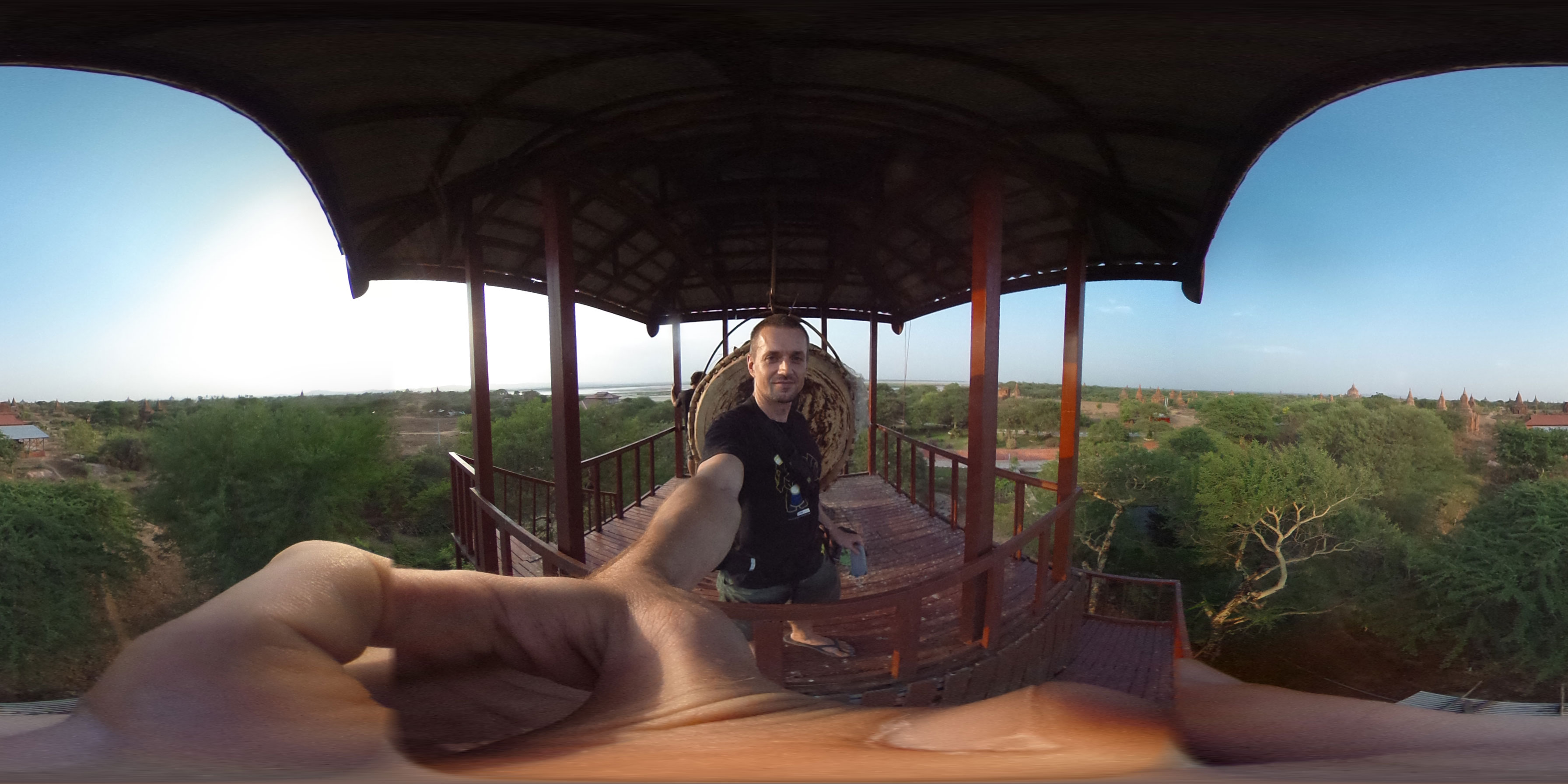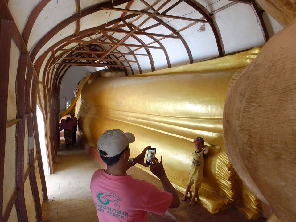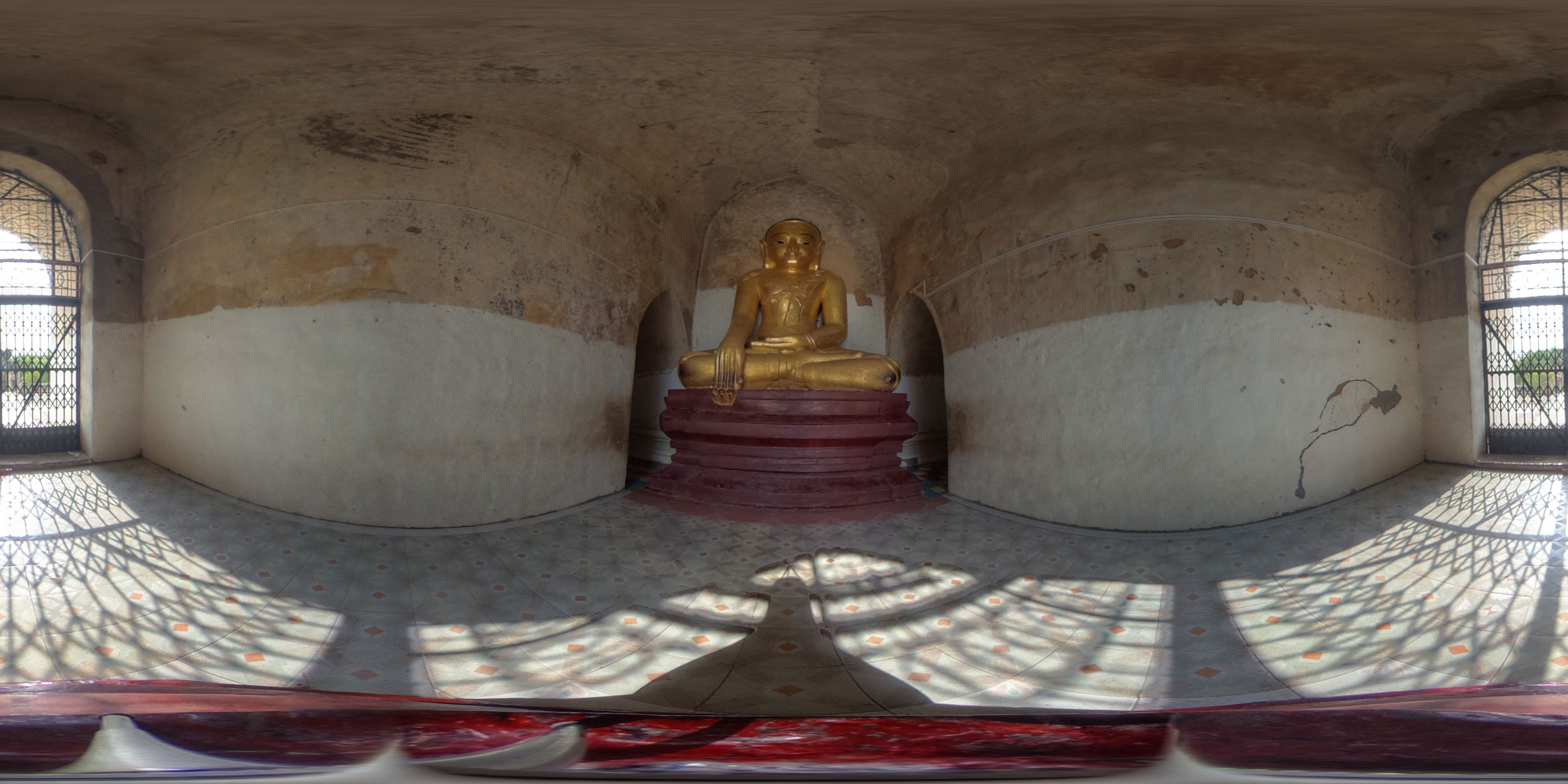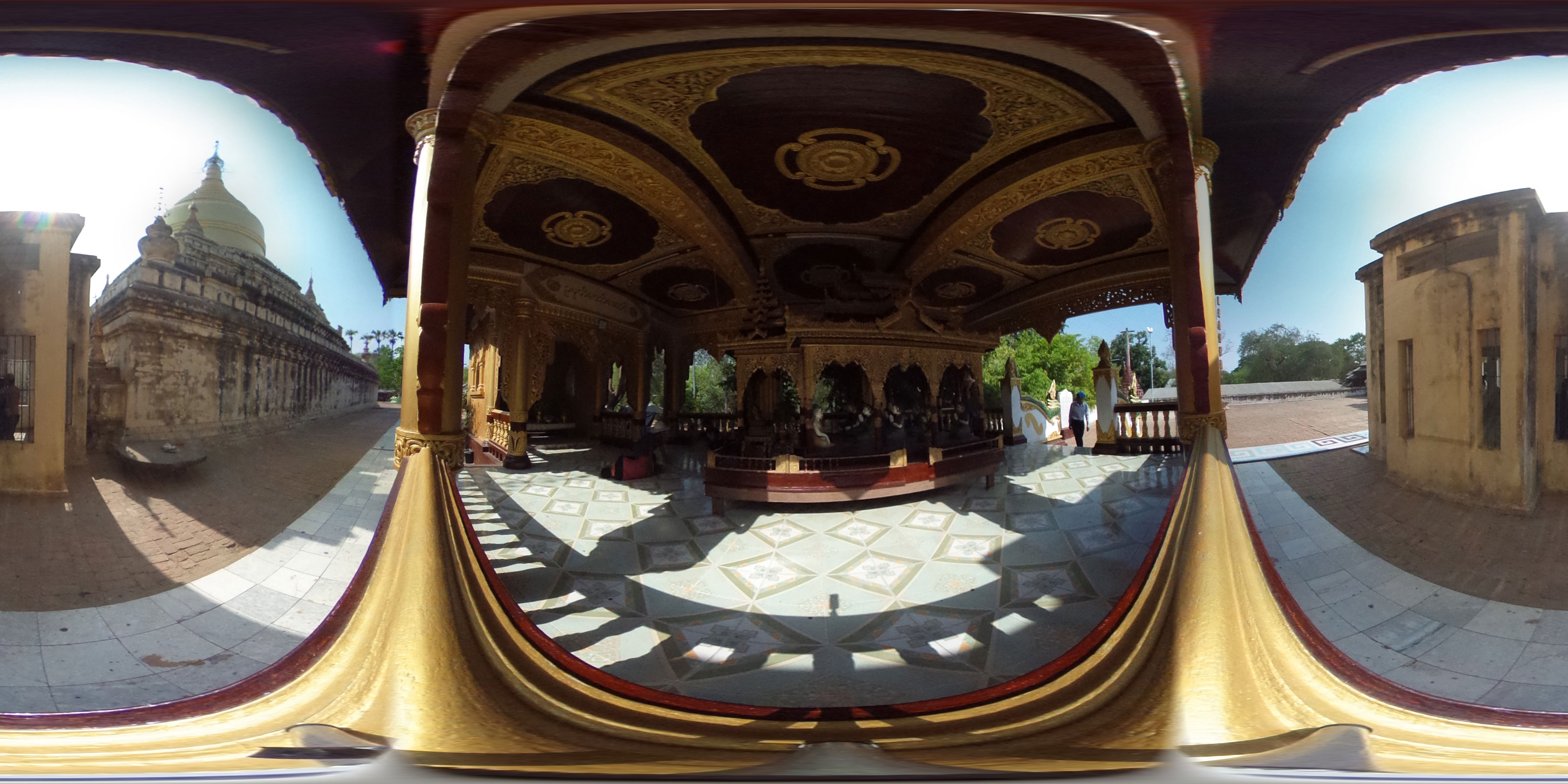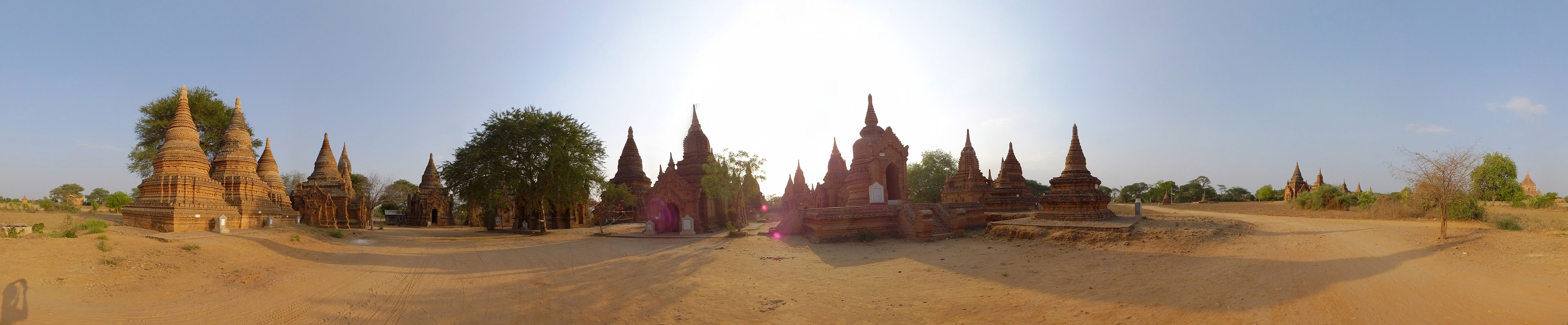 Ich fuhr zu vielen Tempeln, ging in einige und drehte auch so manche Runde durch die Pampa. Sandfahrten sind etwas schwerer zu beherrschen aber ich sah viel. Innen sind die Tempel einander ähnlich. Meine Theta wird immer beäugt. Sowas haben die Leute halt noch nicht gesehen, wenn ich sie auf einem Stativ hinstelle. Die Burmesen sind nett und neugierig. Alles super. Bei meiner Fahrt kam ich öfters an den gleichen Orten vorbei und sah Sachen doppelt. Die Tempel ähneln sich sehr und ich hatte mich gegen Abend schon satt gesehen.