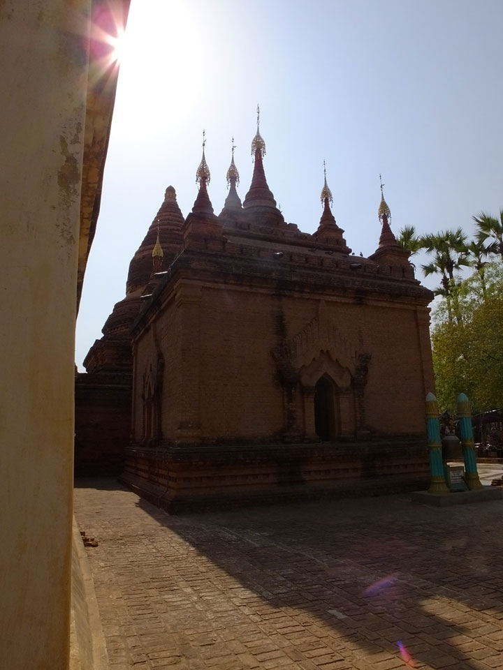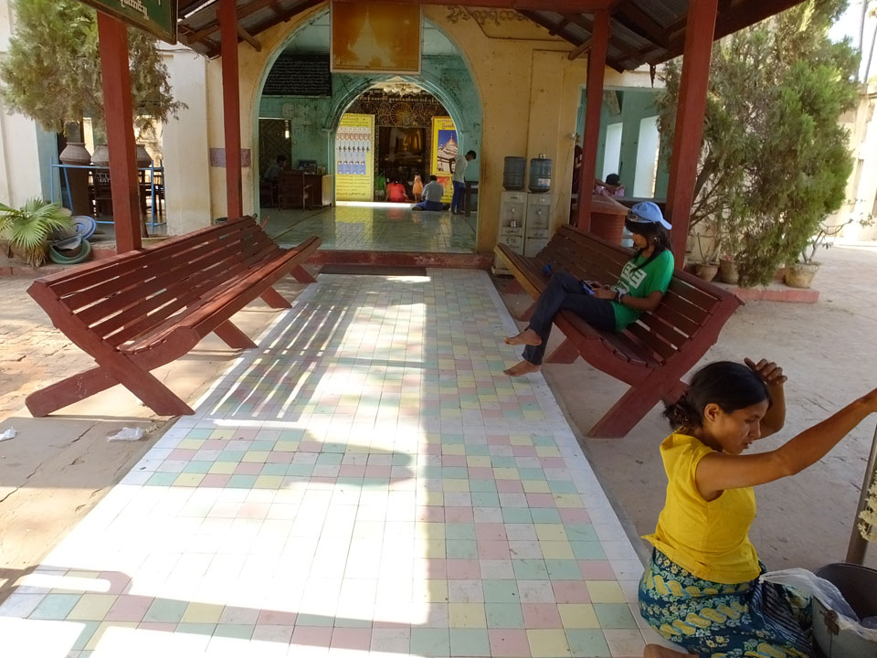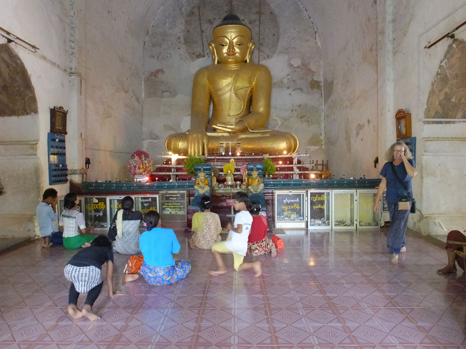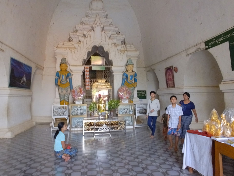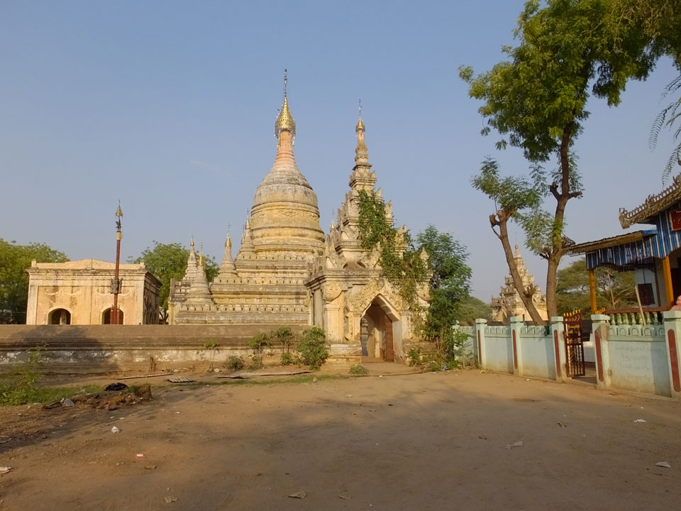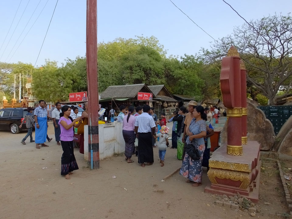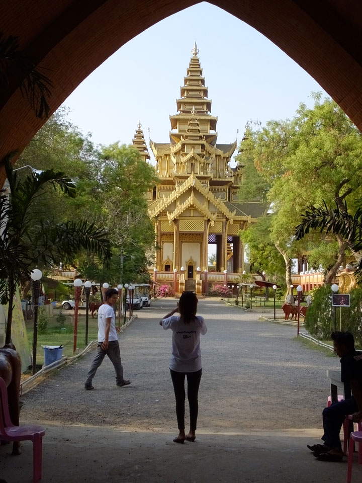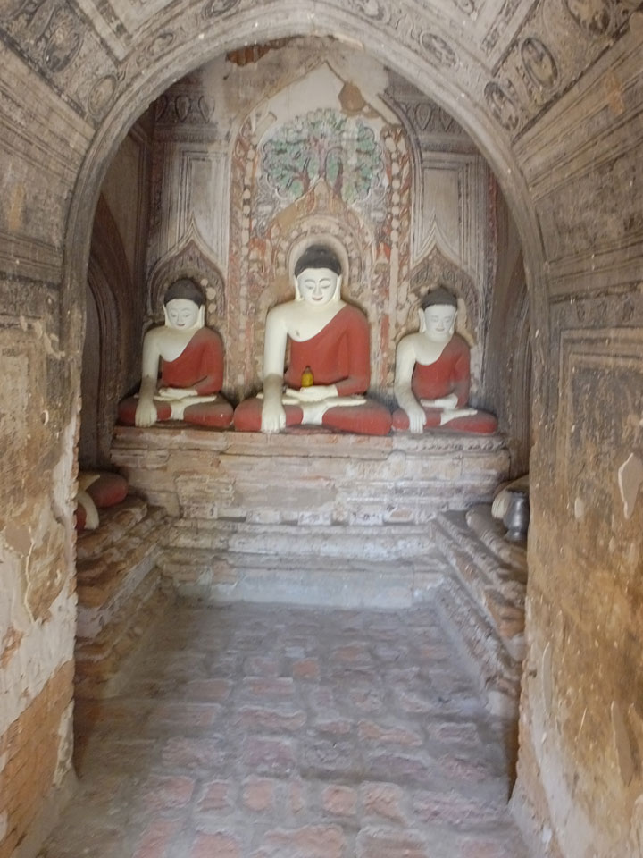 Ich fuhr zu vielen Tempeln, ging in einige und drehte auch so manche Runde durch die Pampa. Sandfahrten sind etwas schwerer zu beherrschen aber ich sah viel. Innen sind die Tempel einander ähnlich. Meine Theta wird immer beäugt. Sowas haben die Leute halt noch nicht gesehen, wenn ich sie auf einem Stativ hinstelle. Die Burmesen sind nett und neugierig. Alles super. Bei meiner Fahrt kam ich öfters an den gleichen Orten vorbei und sah Sachen doppelt. Die Tempel ähneln sich sehr und ich hatte mich gegen Abend schon satt gesehen.