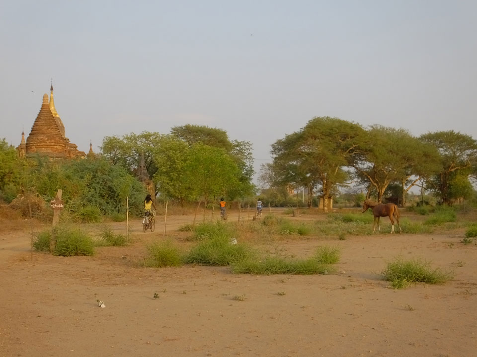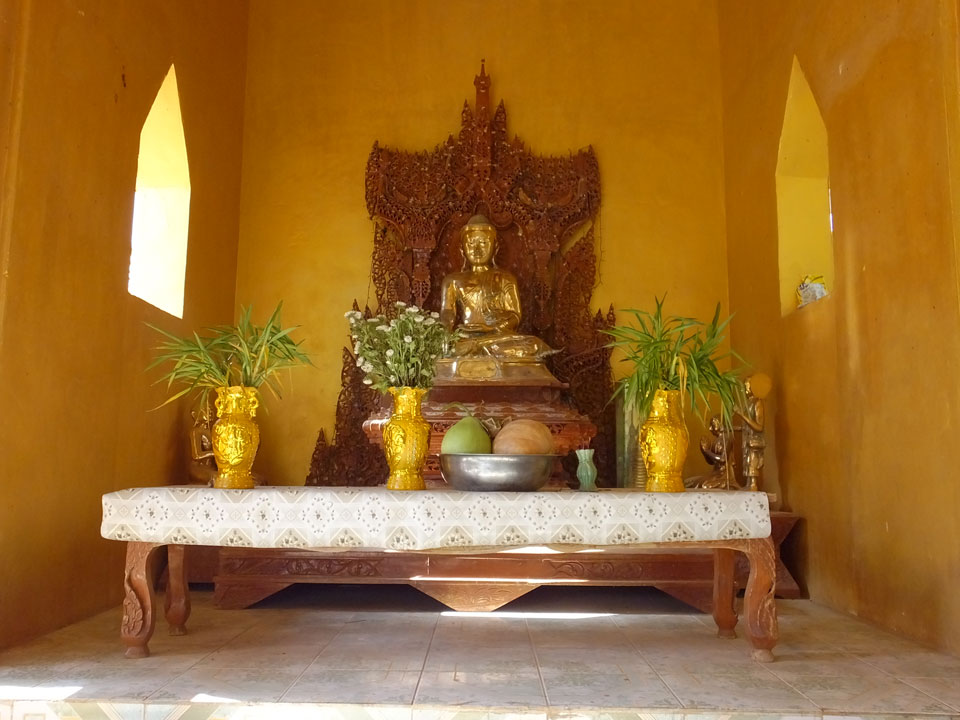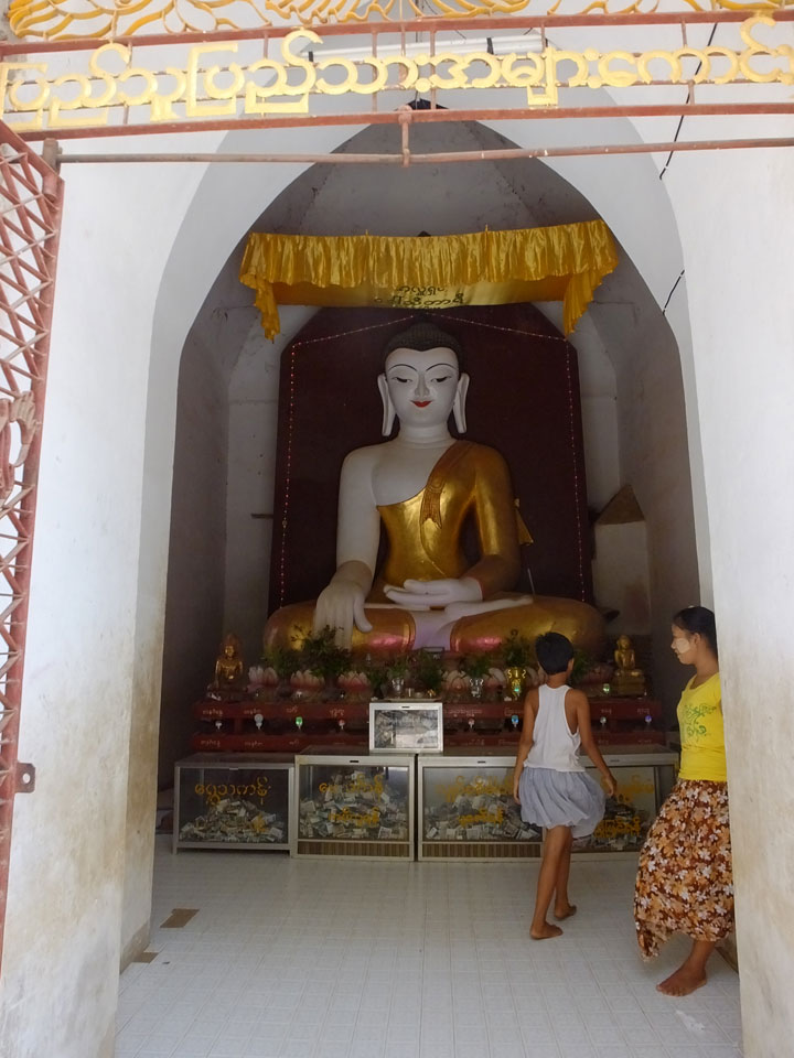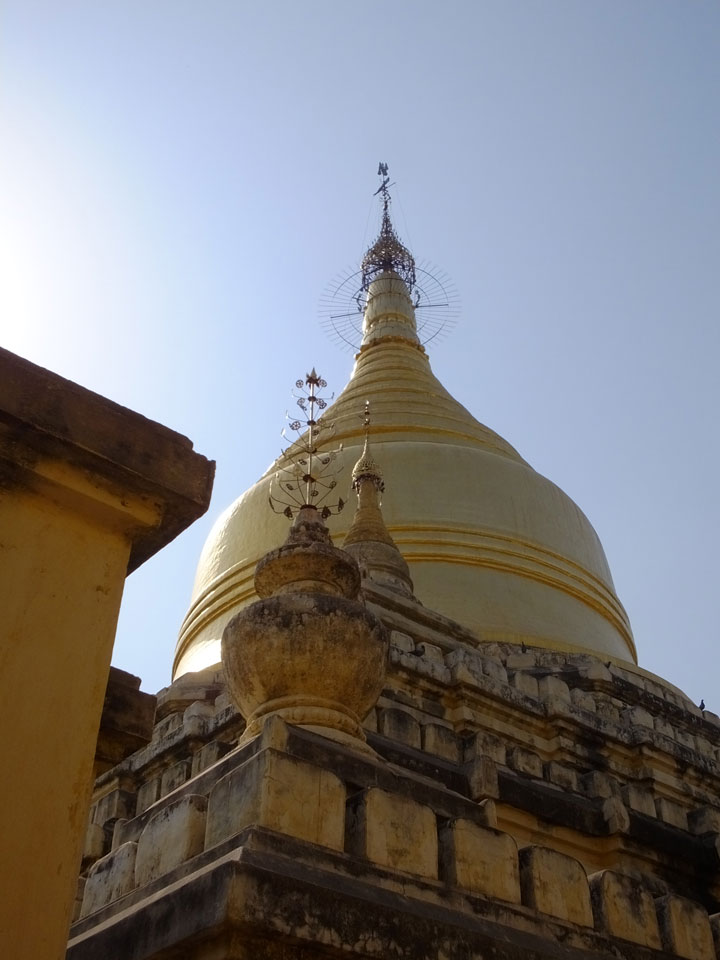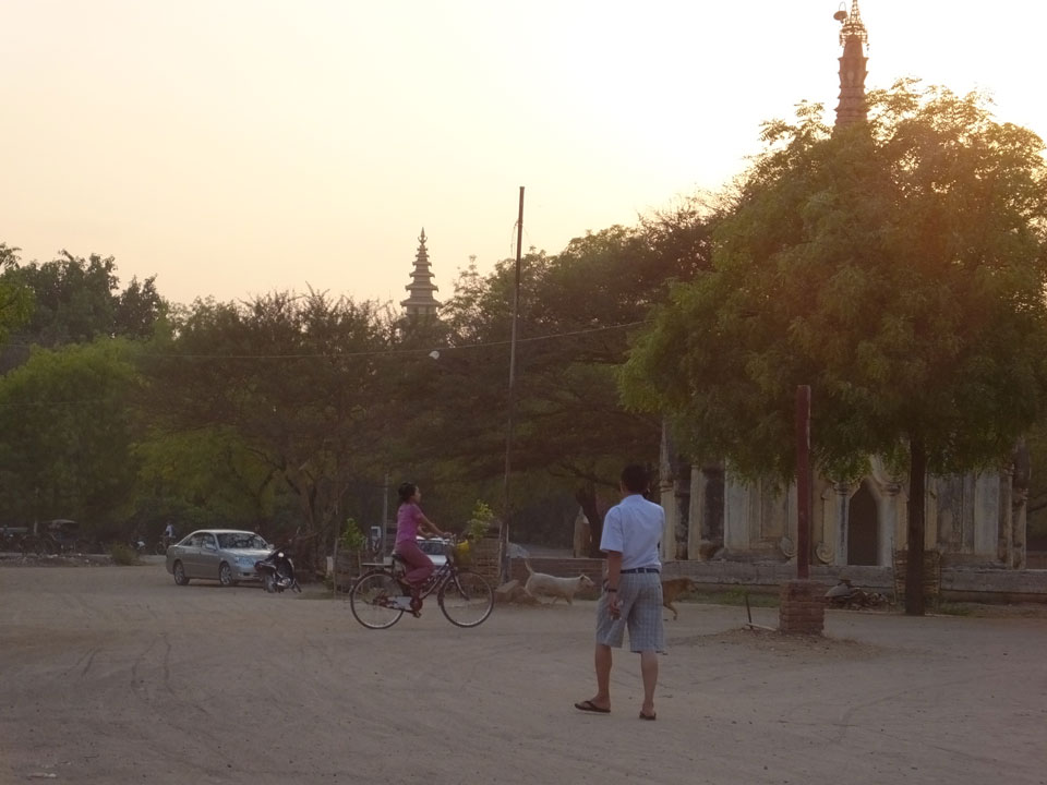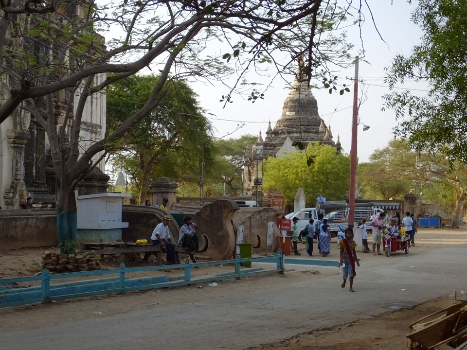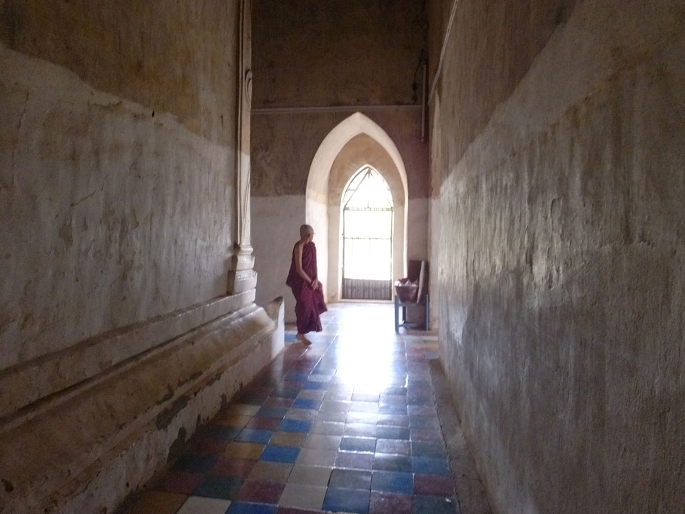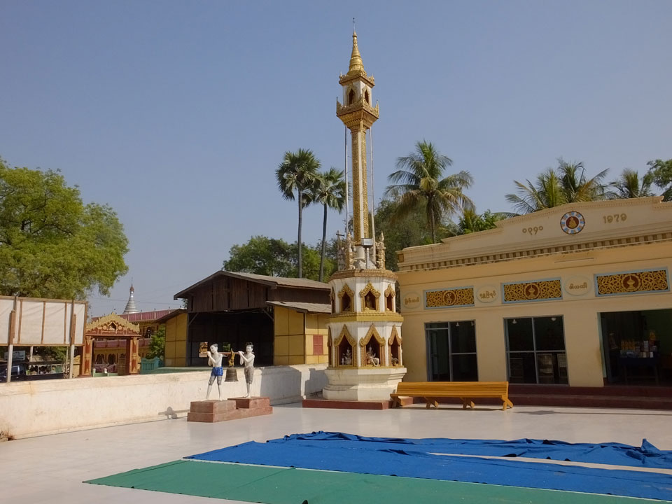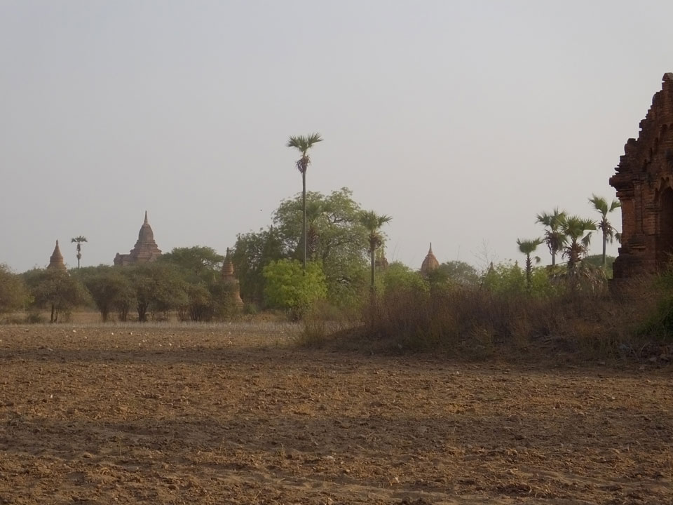 Ich fuhr zu vielen Tempeln, ging in einige und drehte auch so manche Runde durch die Pampa. Sandfahrten sind etwas schwerer zu beherrschen aber ich sah viel. Innen sind die Tempel einander ähnlich. Meine Theta wird immer beäugt. Sowas haben die Leute halt noch nicht gesehen, wenn ich sie auf einem Stativ hinstelle. Die Burmesen sind nett und neugierig. Alles super. Bei meiner Fahrt kam ich öfters an den gleichen Orten vorbei und sah Sachen doppelt. Die Tempel ähneln sich sehr und ich hatte mich gegen Abend schon satt gesehen.
