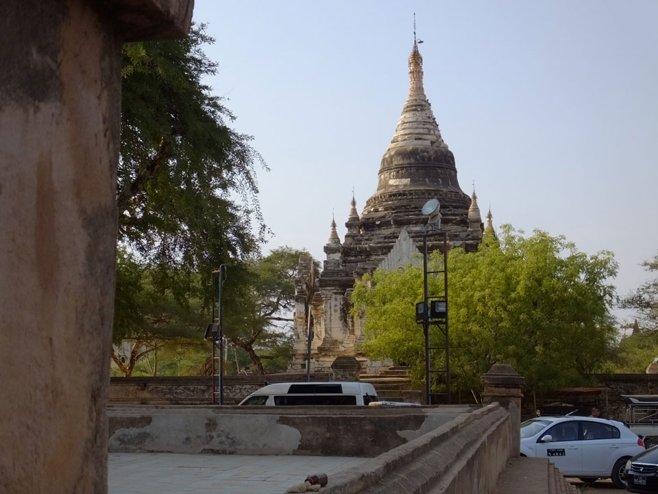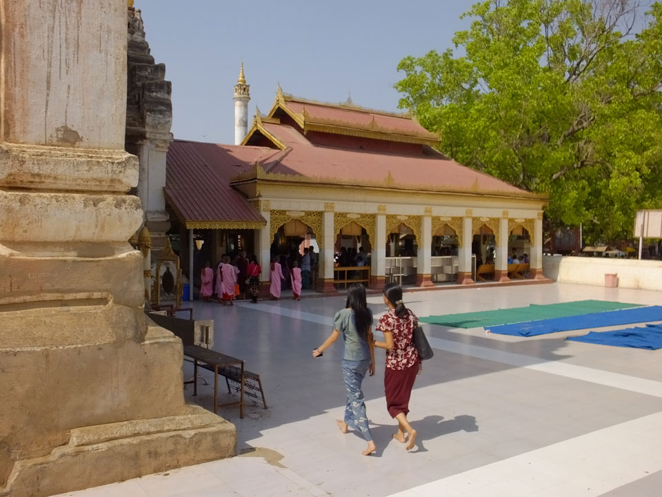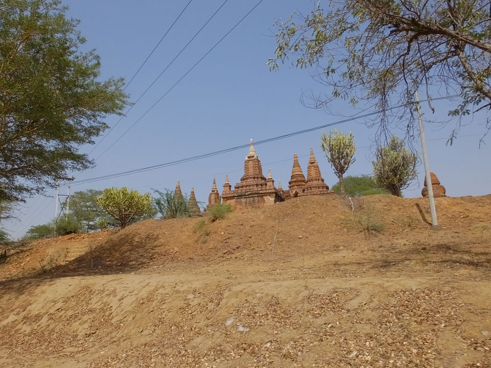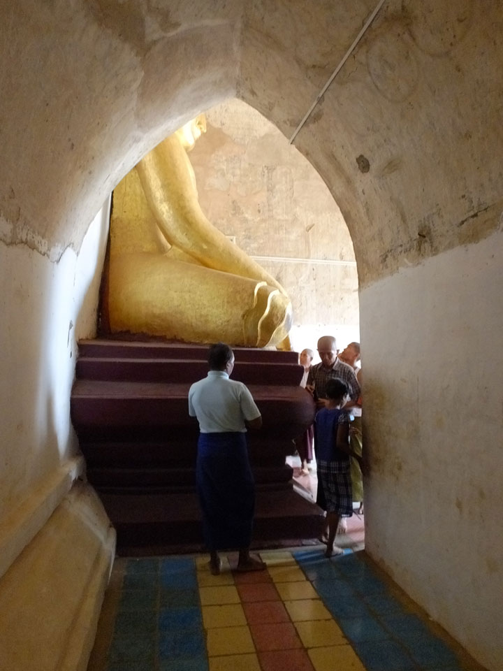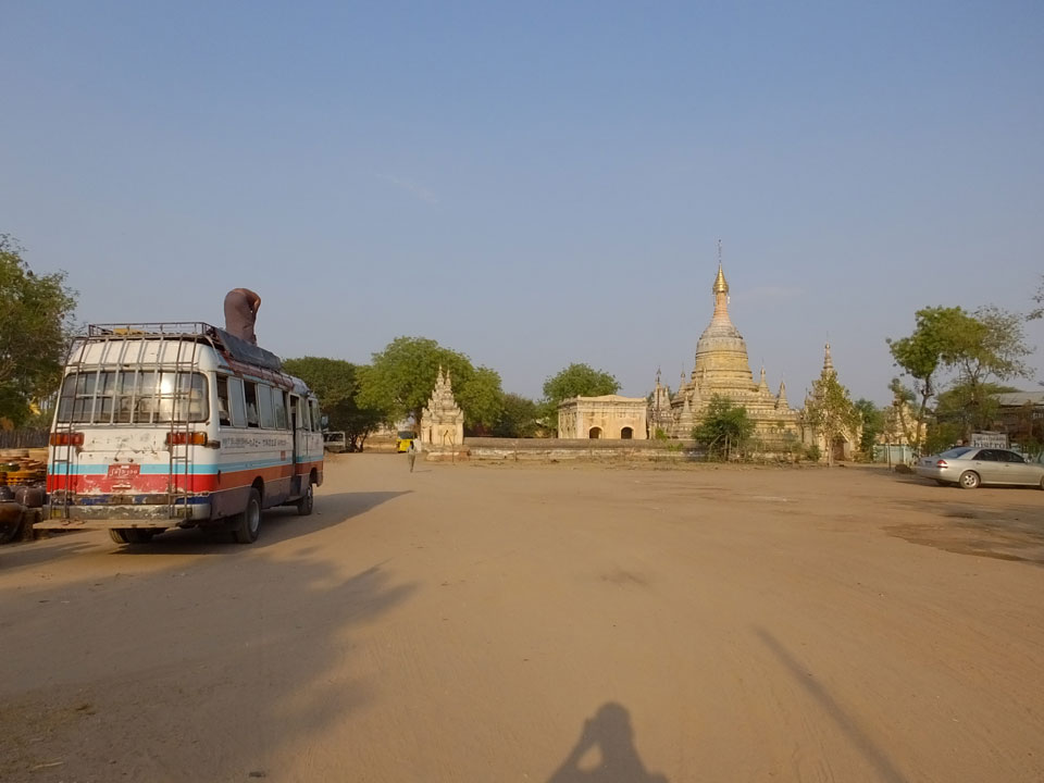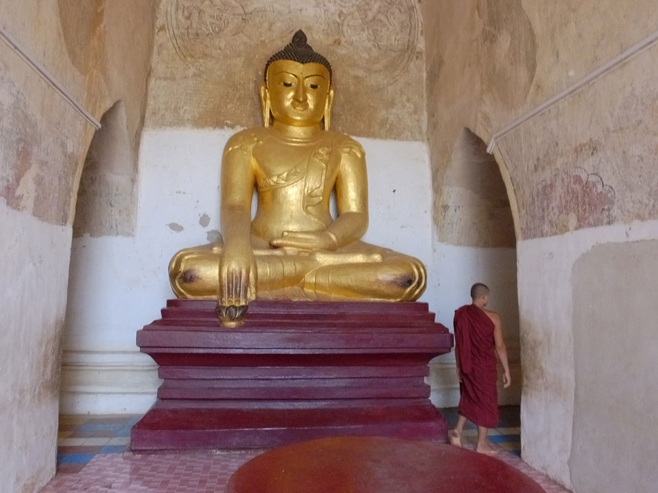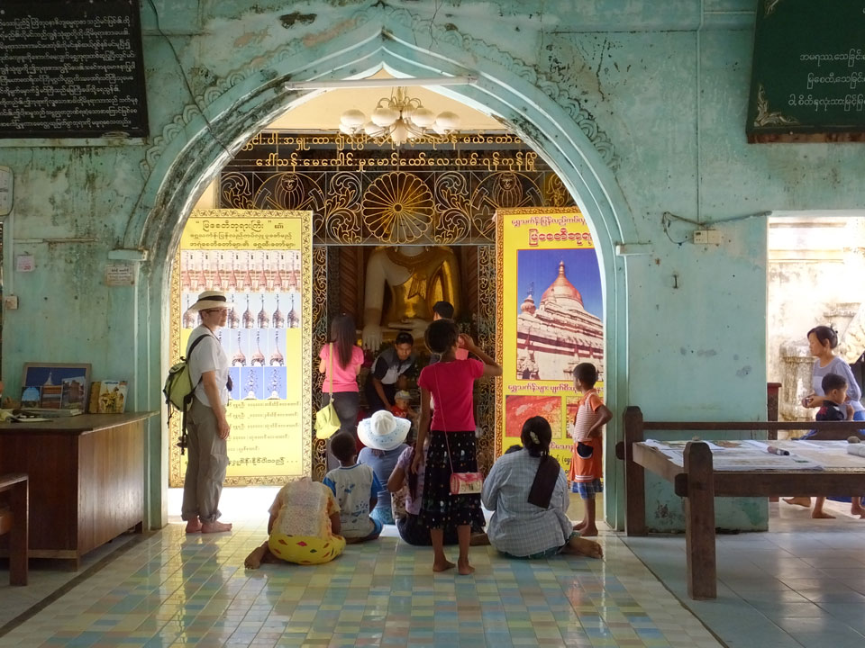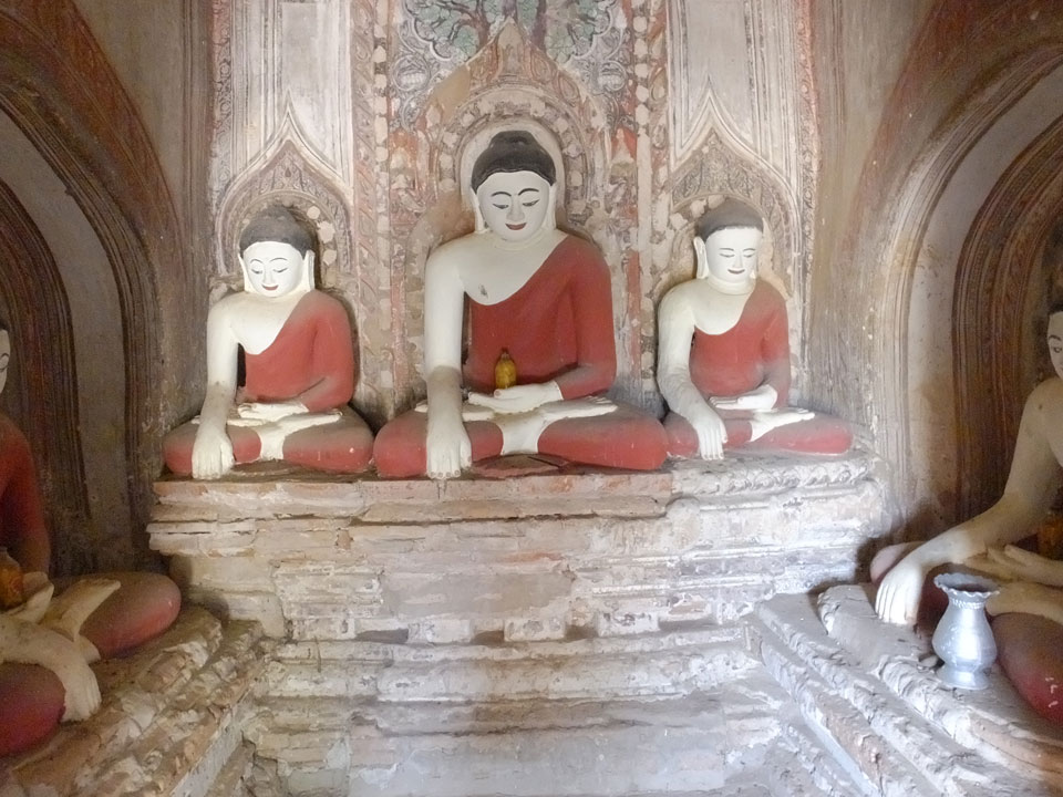 Ich fuhr zu vielen Tempeln, ging in einige und drehte auch so manche Runde durch die Pampa. Sandfahrten sind etwas schwerer zu beherrschen aber ich sah viel. Innen sind die Tempel einander ähnlich. Meine Theta wird immer beäugt. Sowas haben die Leute halt noch nicht gesehen, wenn ich sie auf einem Stativ hinstelle. Die Burmesen sind nett und neugierig. Alles super. Bei meiner Fahrt kam ich öfters an den gleichen Orten vorbei und sah Sachen doppelt. Die Tempel ähneln sich sehr und ich hatte mich gegen Abend schon satt gesehen.