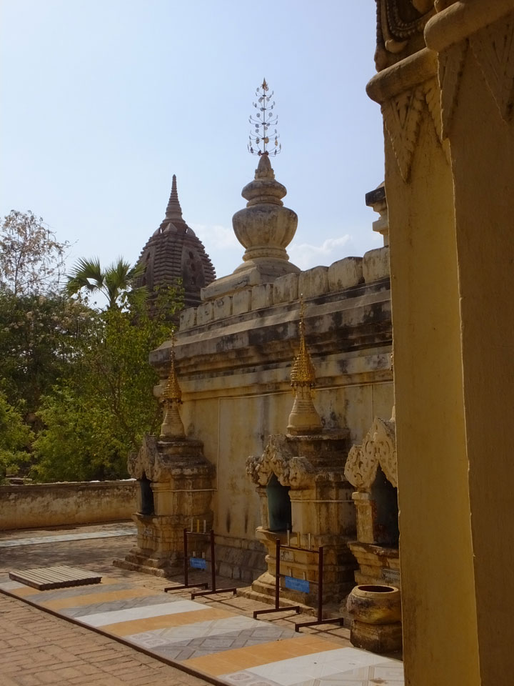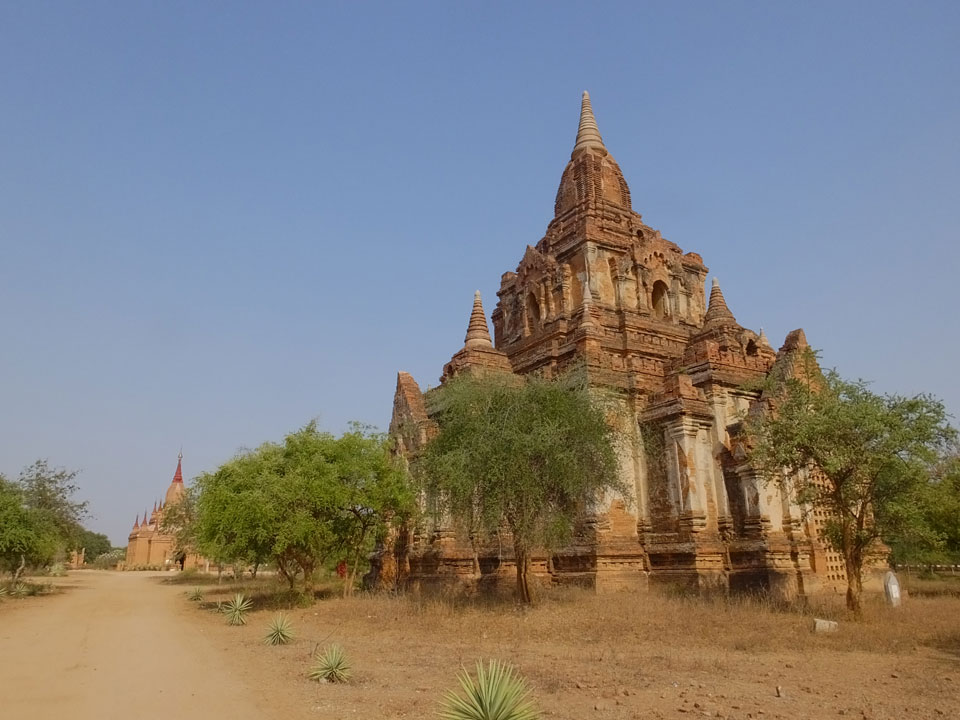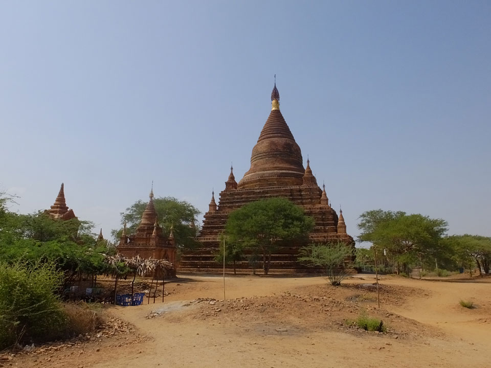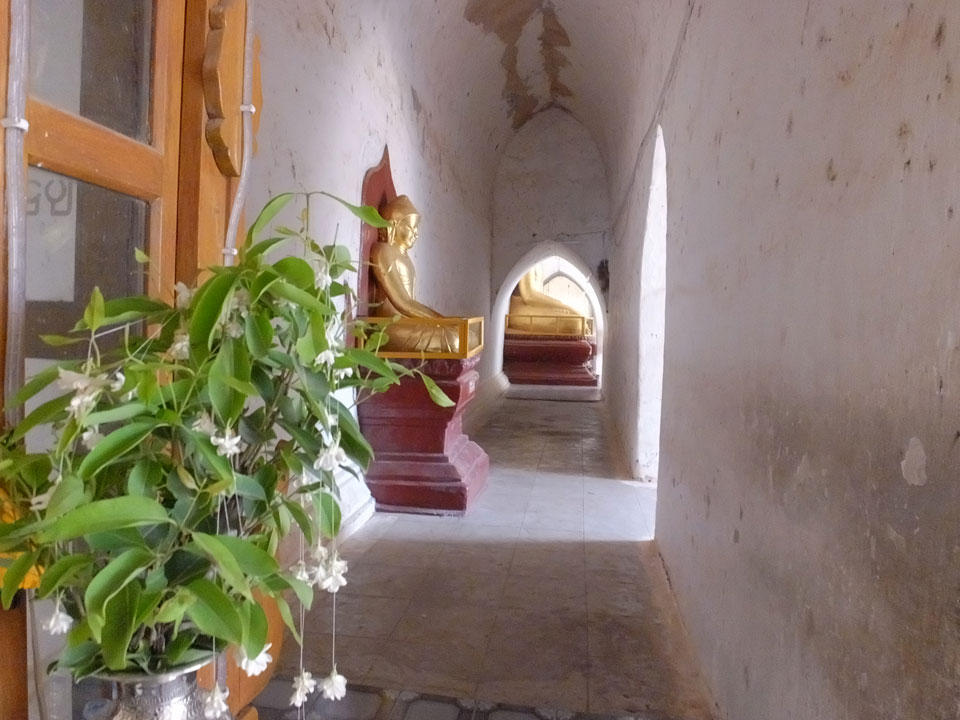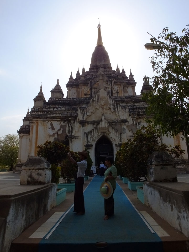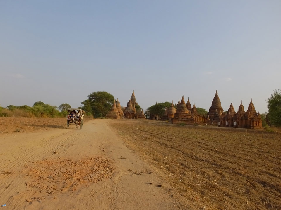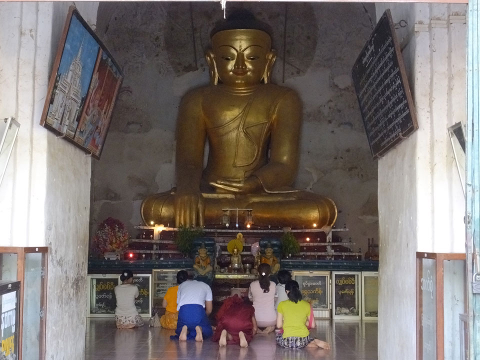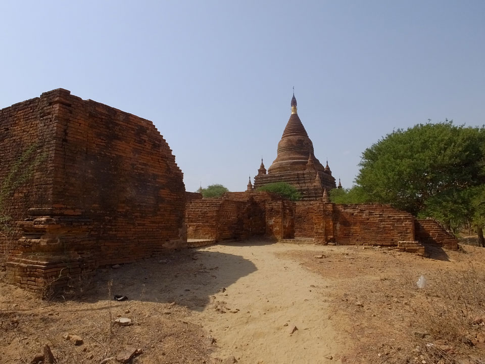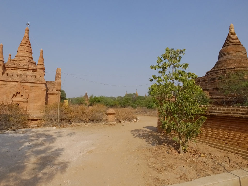 Ich fuhr zu vielen Tempeln, ging in einige und drehte auch so manche Runde durch die Pampa. Sandfahrten sind etwas schwerer zu beherrschen aber ich sah viel. Innen sind die Tempel einander ähnlich. Meine Theta wird immer beäugt. Sowas haben die Leute halt noch nicht gesehen, wenn ich sie auf einem Stativ hinstelle. Die Burmesen sind nett und neugierig. Alles super. Bei meiner Fahrt kam ich öfters an den gleichen Orten vorbei und sah Sachen doppelt. Die Tempel ähneln sich sehr und ich hatte mich gegen Abend schon satt gesehen.