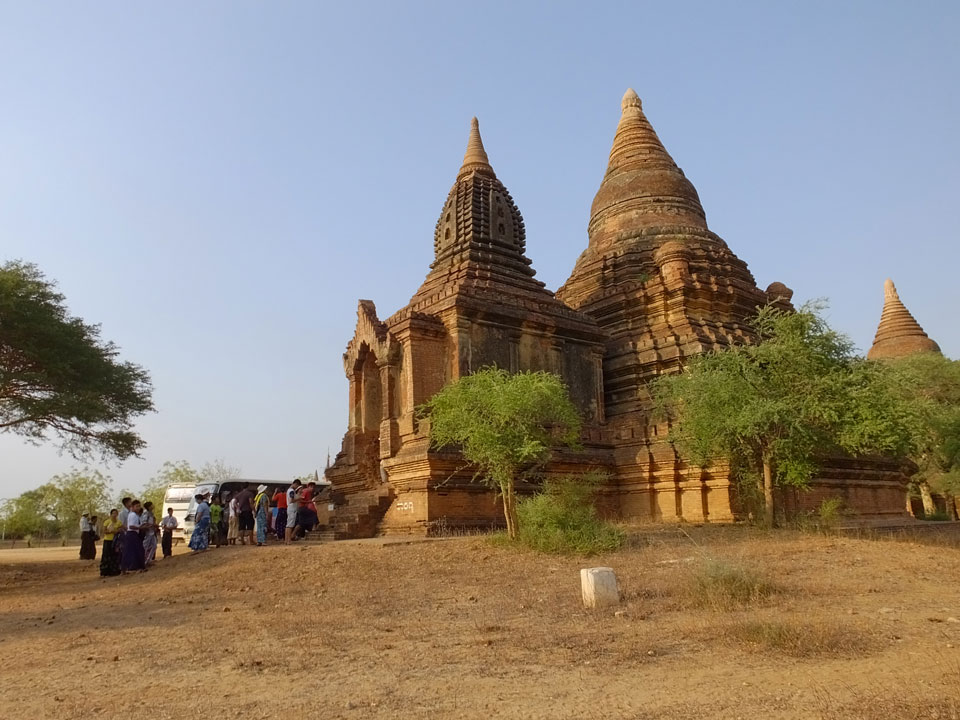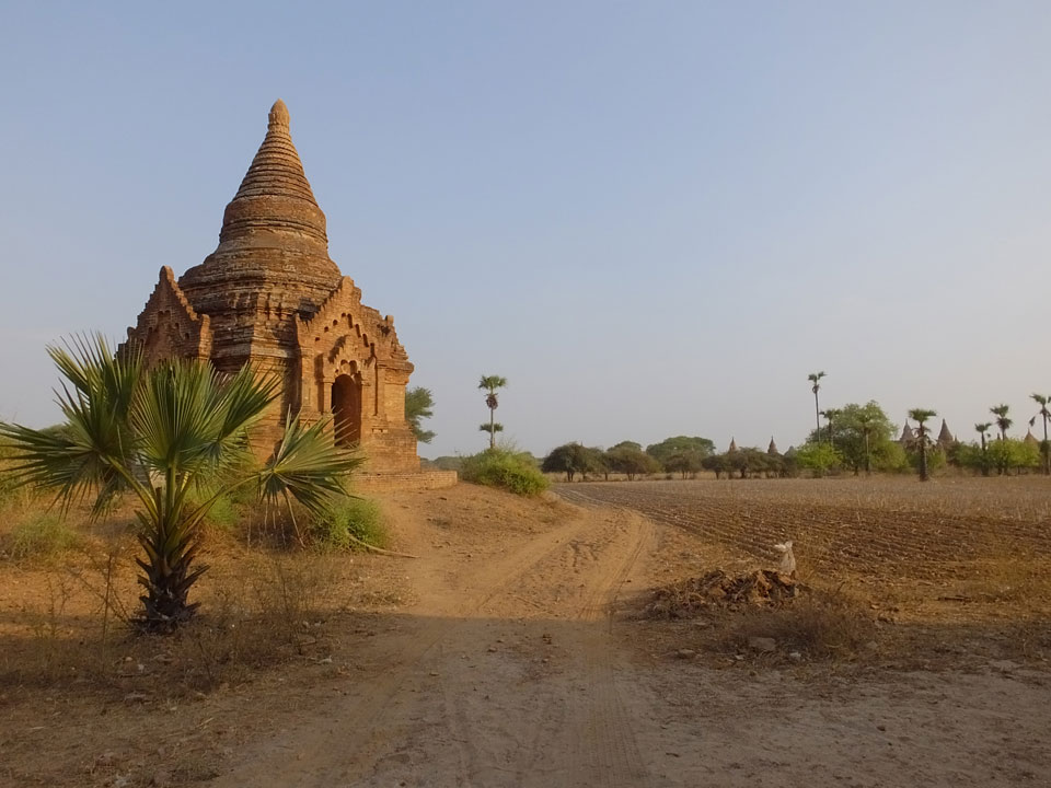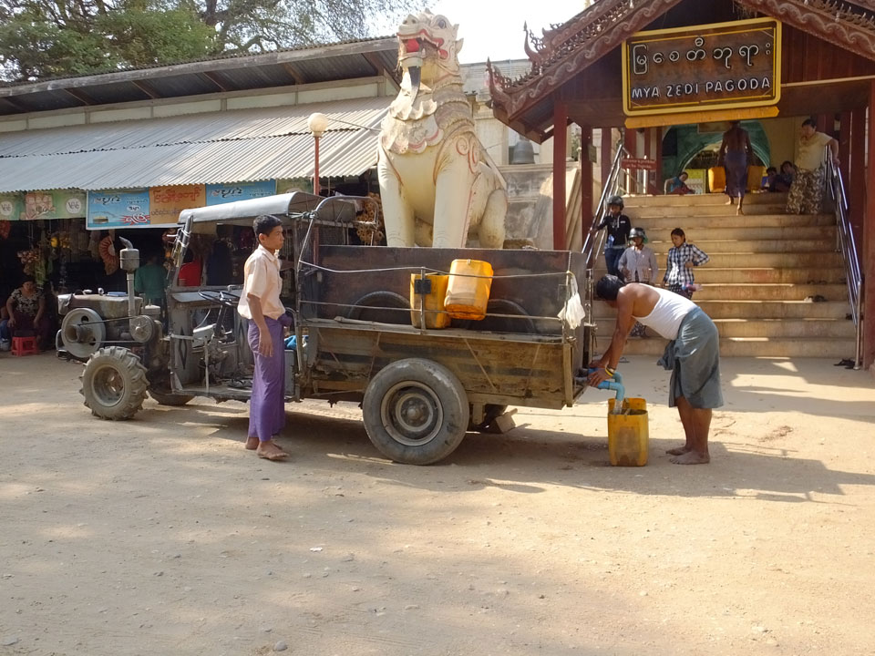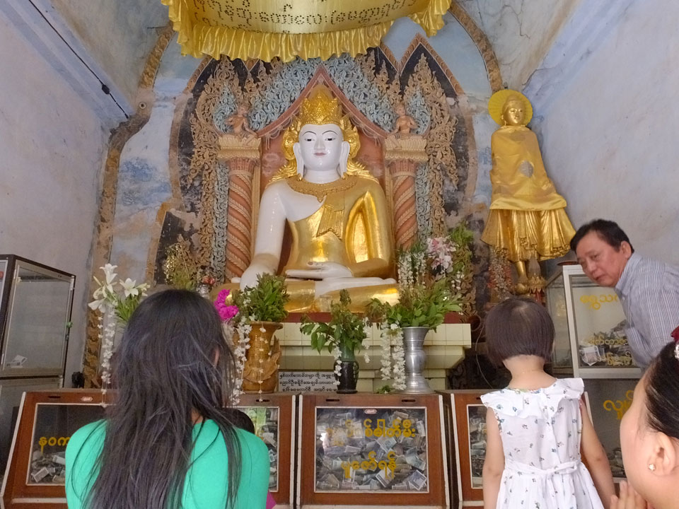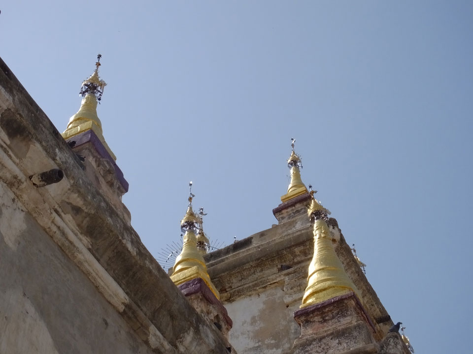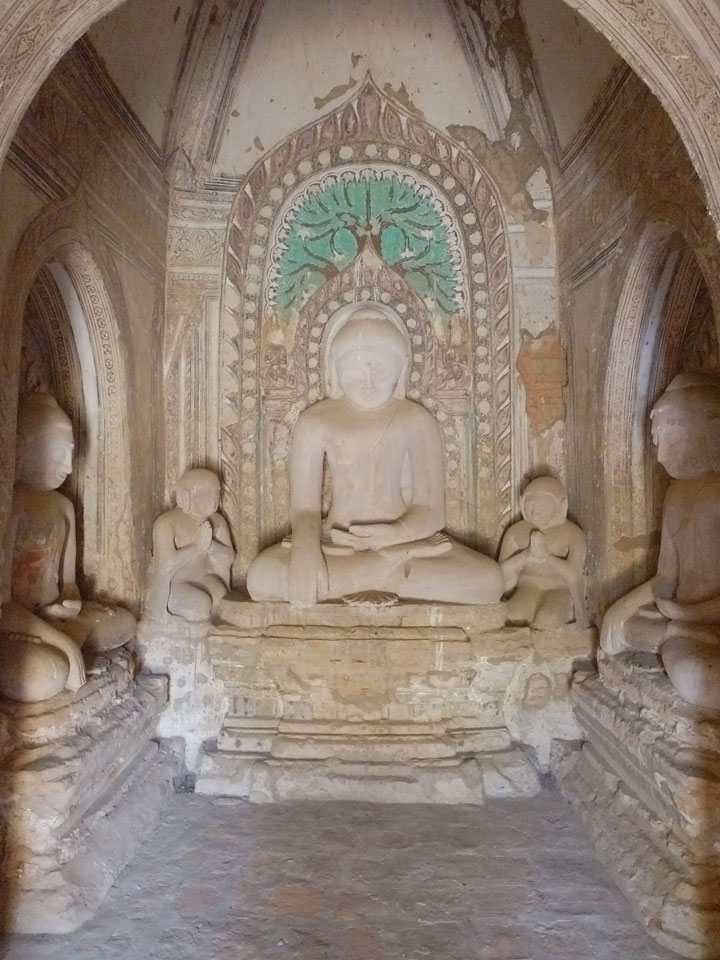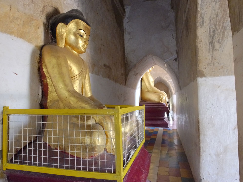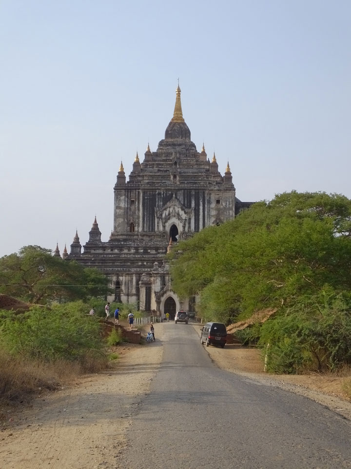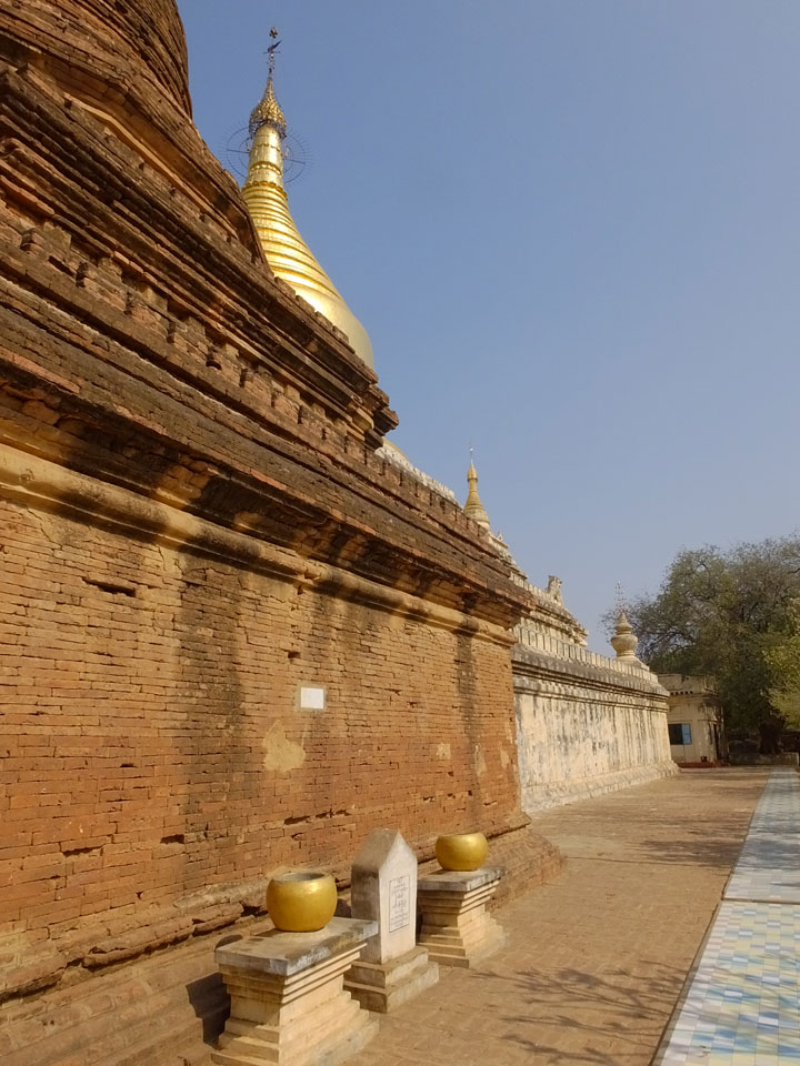 Ich fuhr zu vielen Tempeln, ging in einige und drehte auch so manche Runde durch die Pampa. Sandfahrten sind etwas schwerer zu beherrschen aber ich sah viel. Innen sind die Tempel einander ähnlich. Meine Theta wird immer beäugt. Sowas haben die Leute halt noch nicht gesehen, wenn ich sie auf einem Stativ hinstelle. Die Burmesen sind nett und neugierig. Alles super. Bei meiner Fahrt kam ich öfters an den gleichen Orten vorbei und sah Sachen doppelt. Die Tempel ähneln sich sehr und ich hatte mich gegen Abend schon satt gesehen.