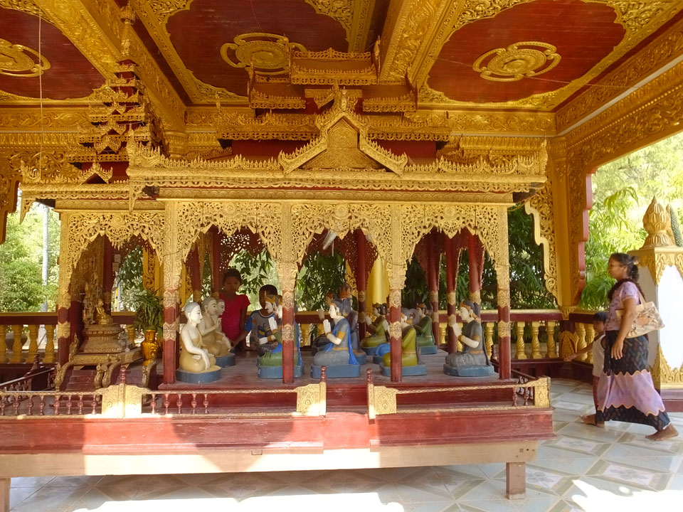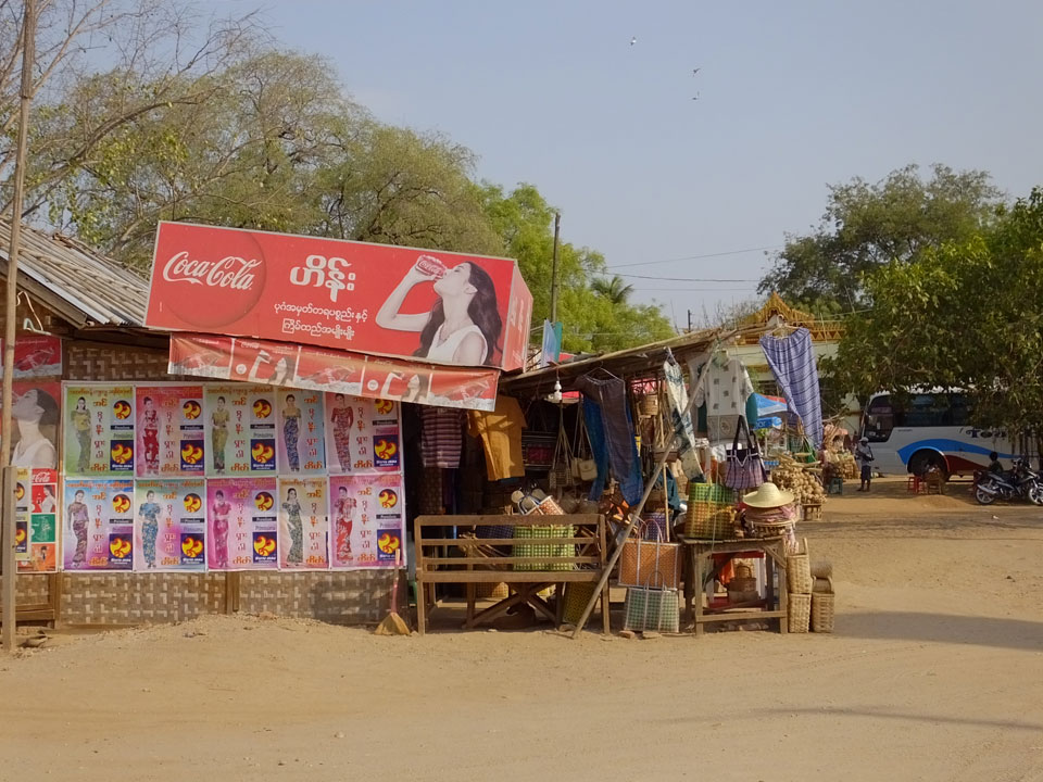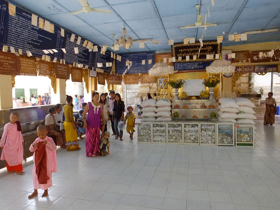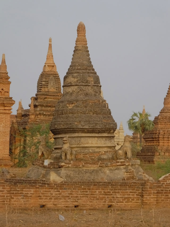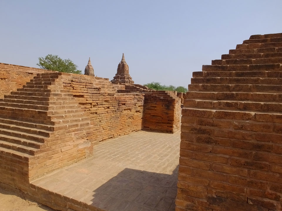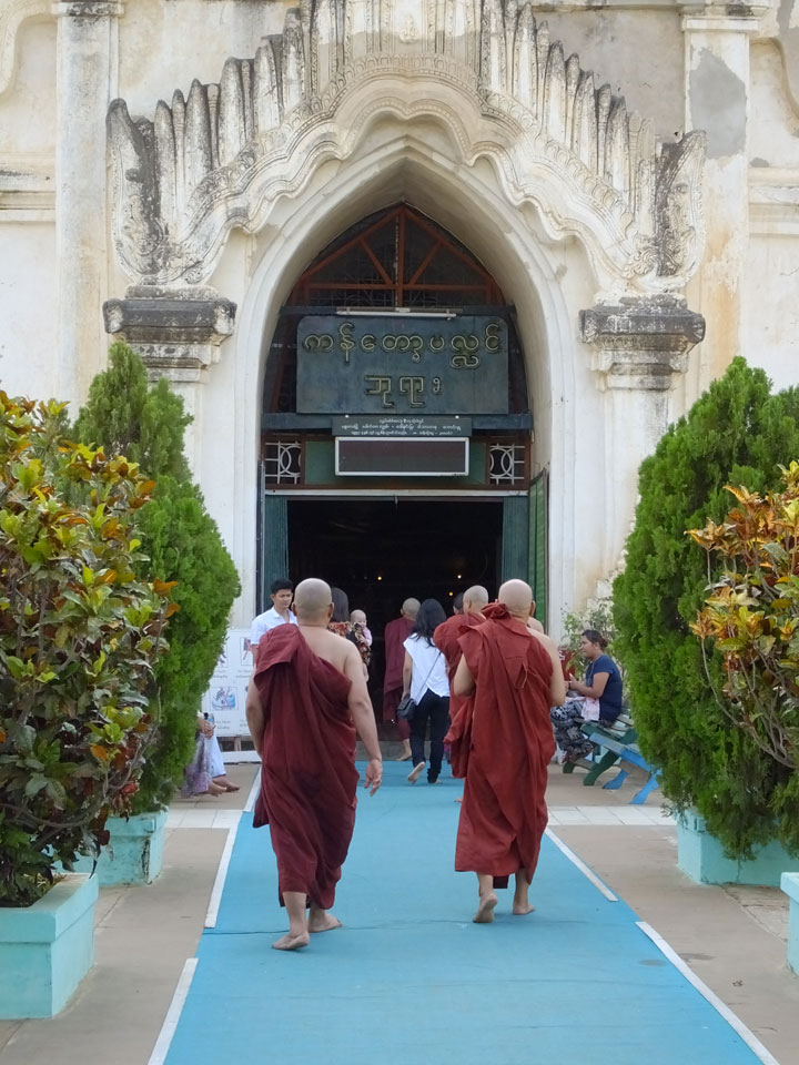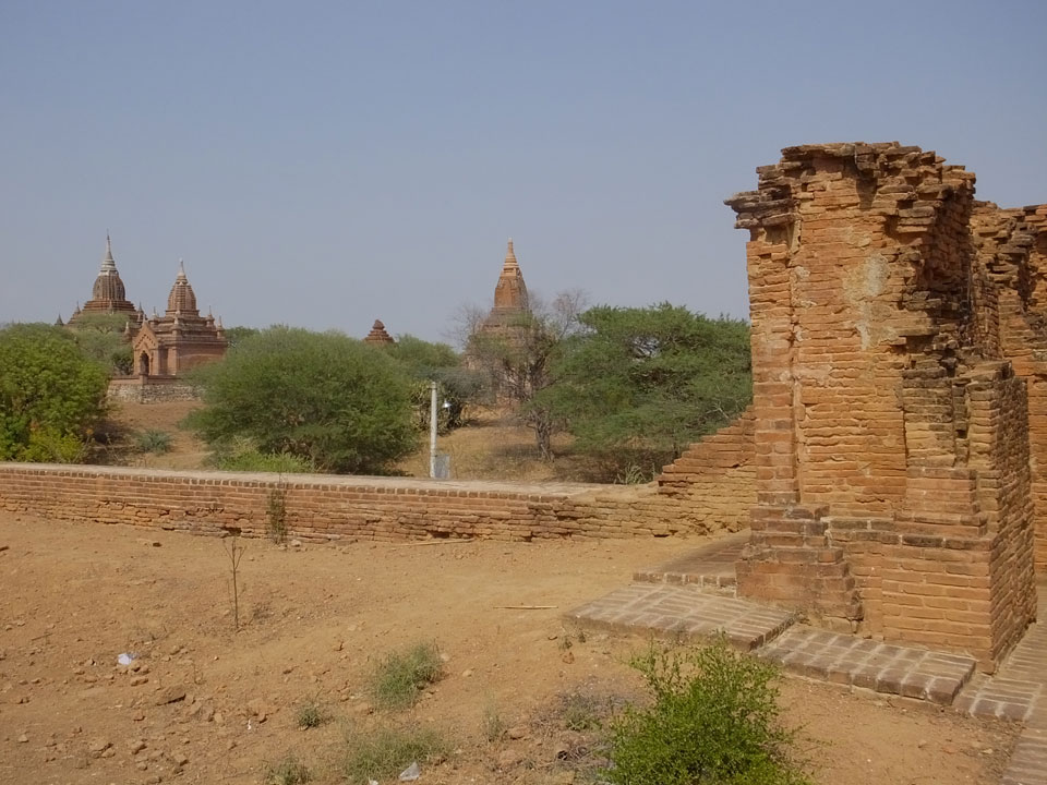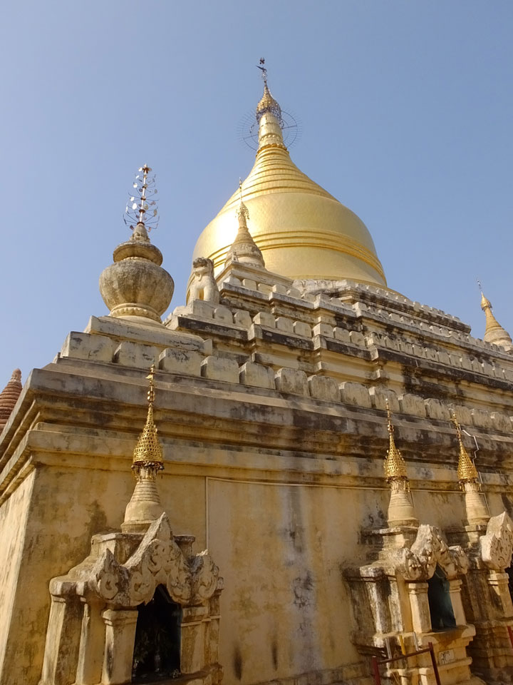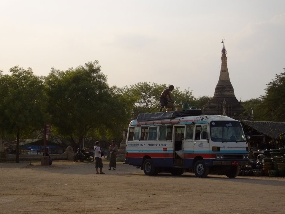 Ich fuhr zu vielen Tempeln, ging in einige und drehte auch so manche Runde durch die Pampa. Sandfahrten sind etwas schwerer zu beherrschen aber ich sah viel. Innen sind die Tempel einander ähnlich. Meine Theta wird immer beäugt. Sowas haben die Leute halt noch nicht gesehen, wenn ich sie auf einem Stativ hinstelle. Die Burmesen sind nett und neugierig. Alles super. Bei meiner Fahrt kam ich öfters an den gleichen Orten vorbei und sah Sachen doppelt. Die Tempel ähneln sich sehr und ich hatte mich gegen Abend schon satt gesehen.
