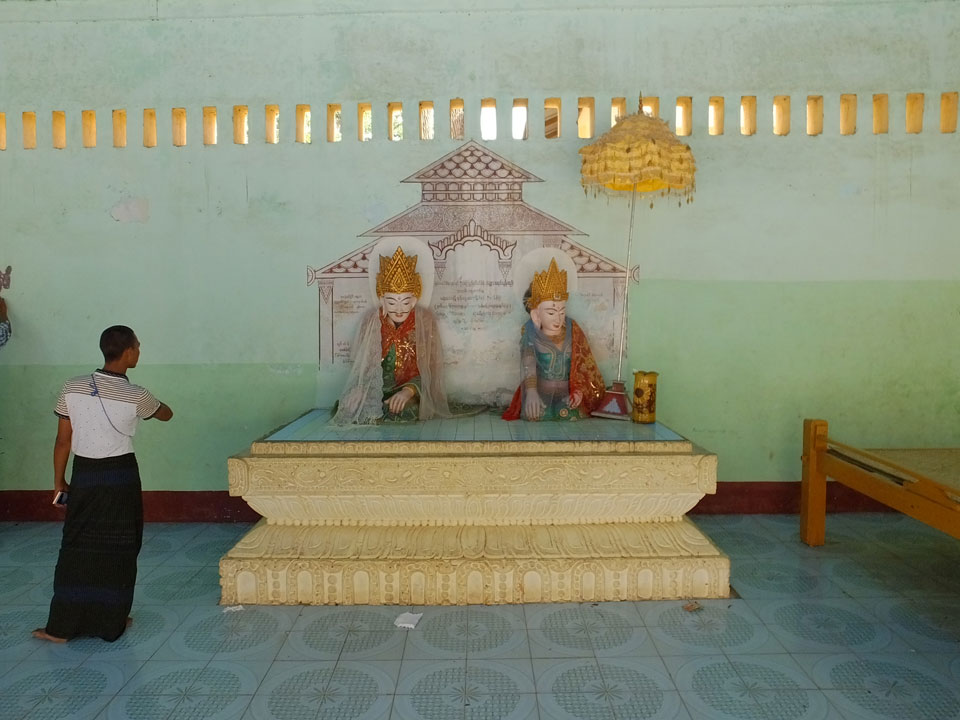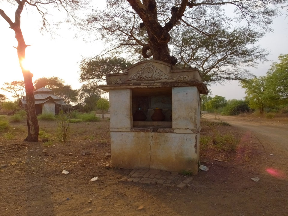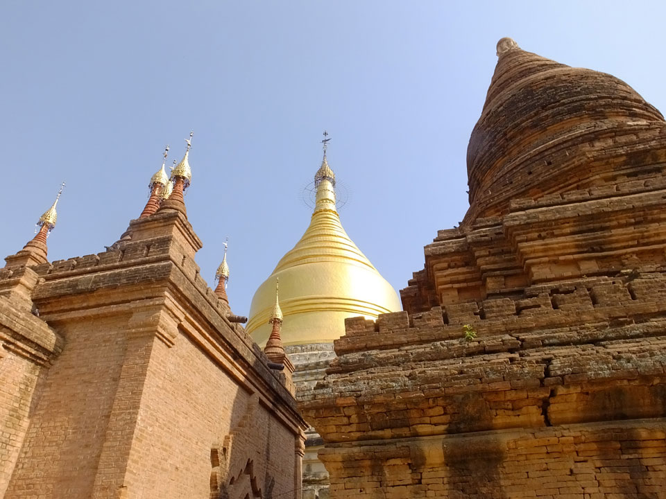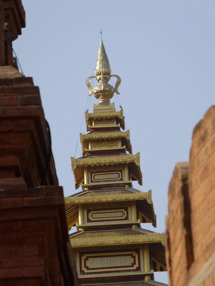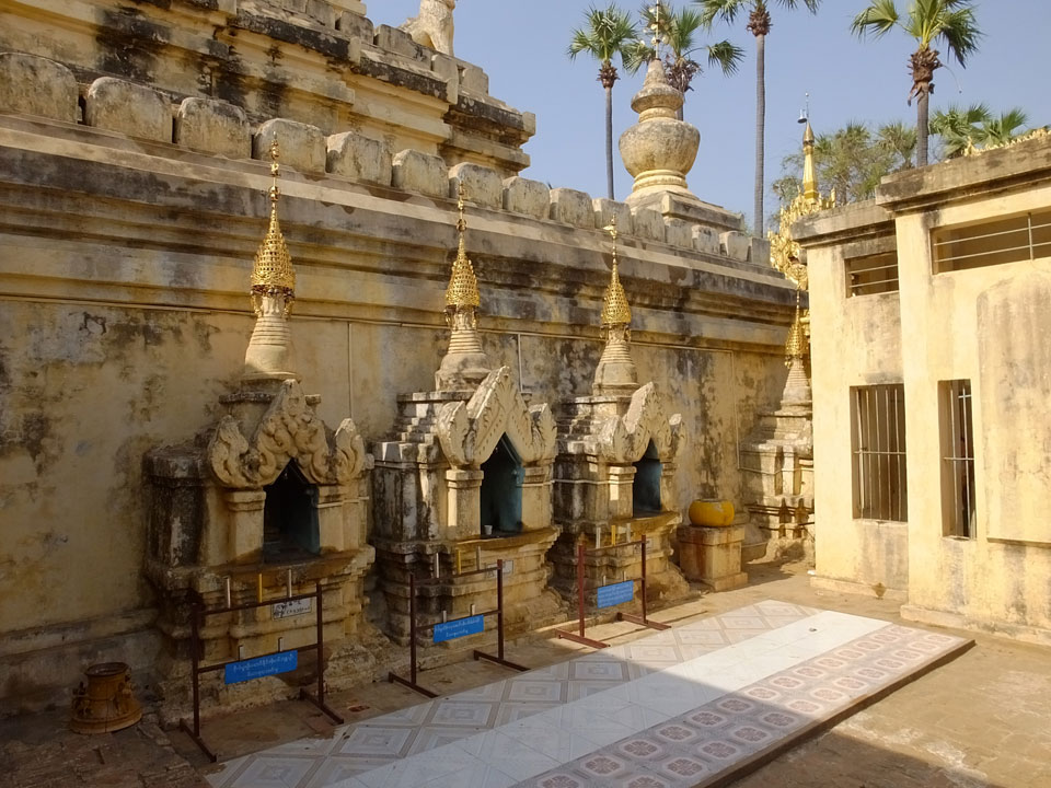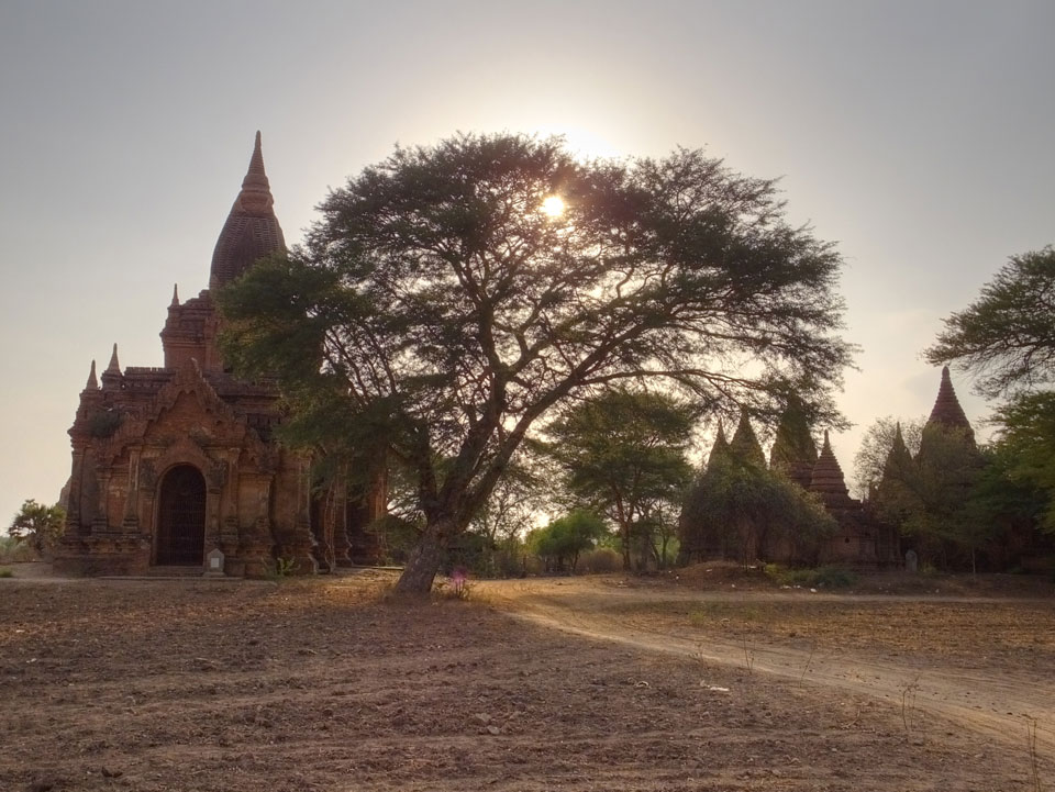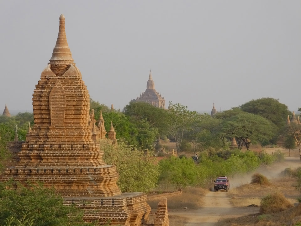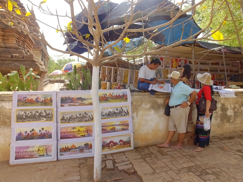 Ich fuhr zu vielen Tempeln, ging in einige und drehte auch so manche Runde durch die Pampa. Sandfahrten sind etwas schwerer zu beherrschen aber ich sah viel. Innen sind die Tempel einander ähnlich. Meine Theta wird immer beäugt. Sowas haben die Leute halt noch nicht gesehen, wenn ich sie auf einem Stativ hinstelle. Die Burmesen sind nett und neugierig. Alles super. Bei meiner Fahrt kam ich öfters an den gleichen Orten vorbei und sah Sachen doppelt. Die Tempel ähneln sich sehr und ich hatte mich gegen Abend schon satt gesehen.
