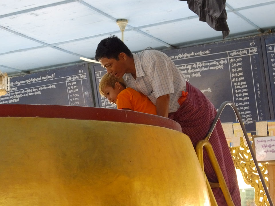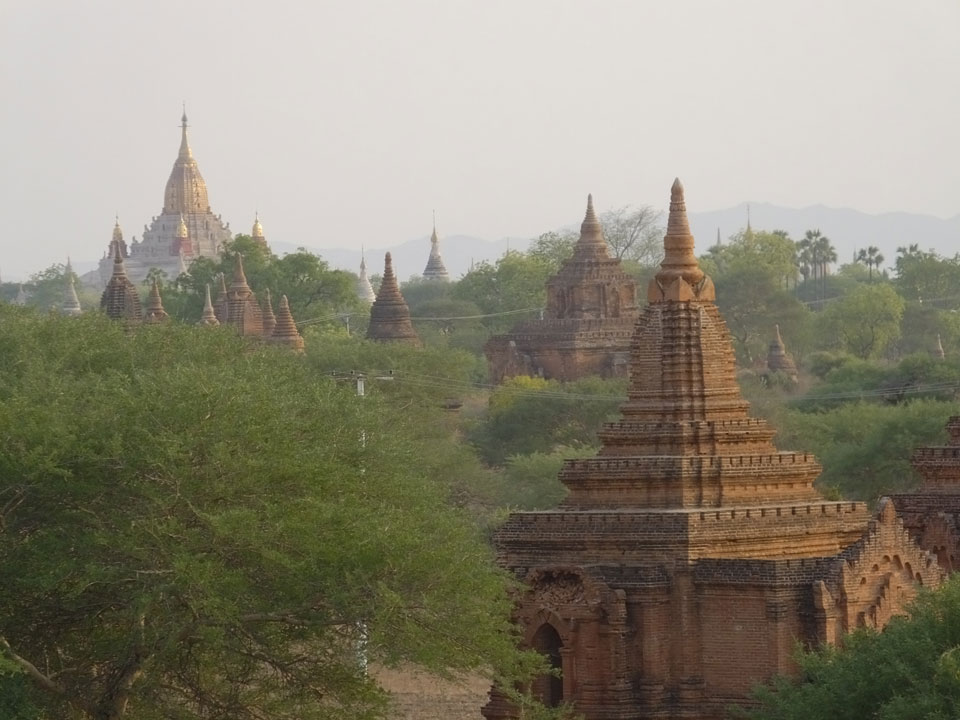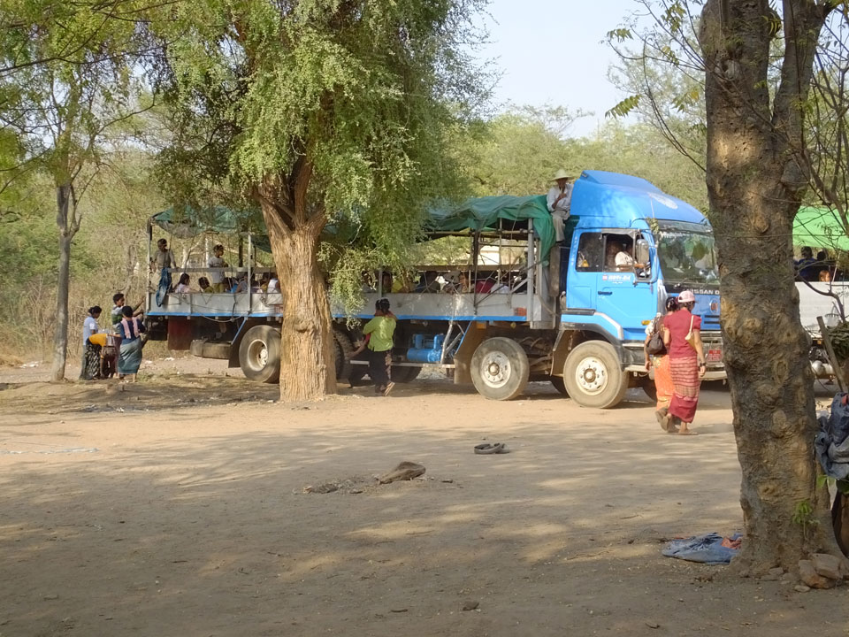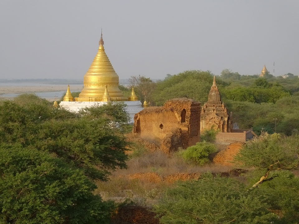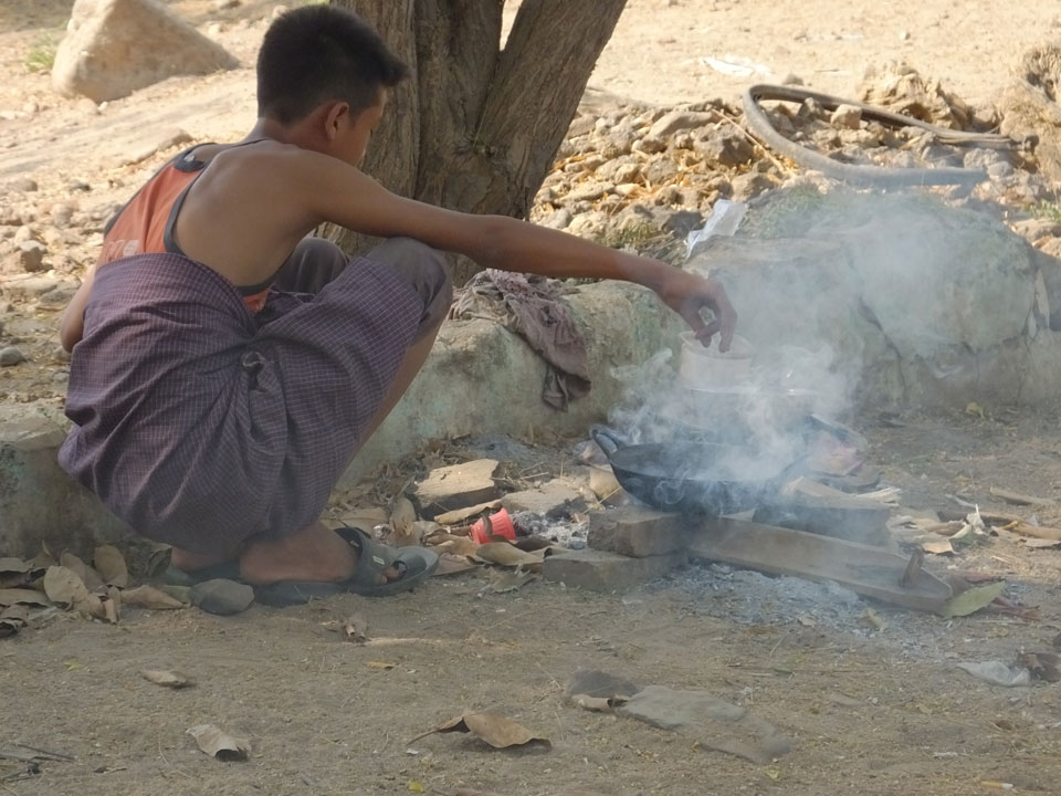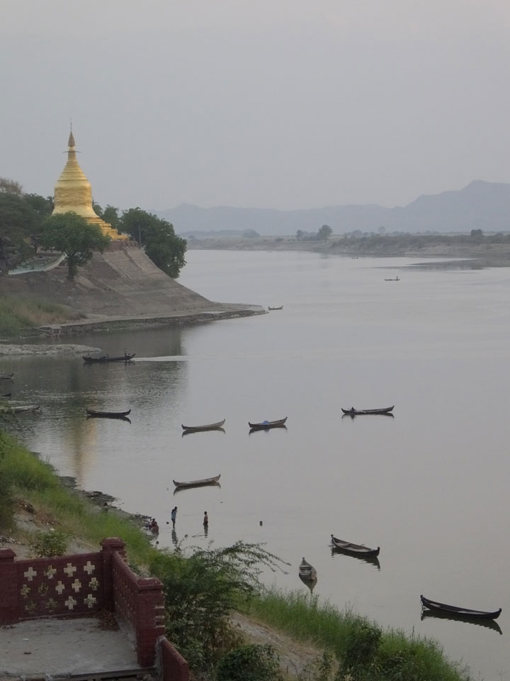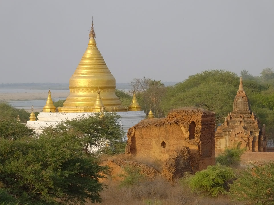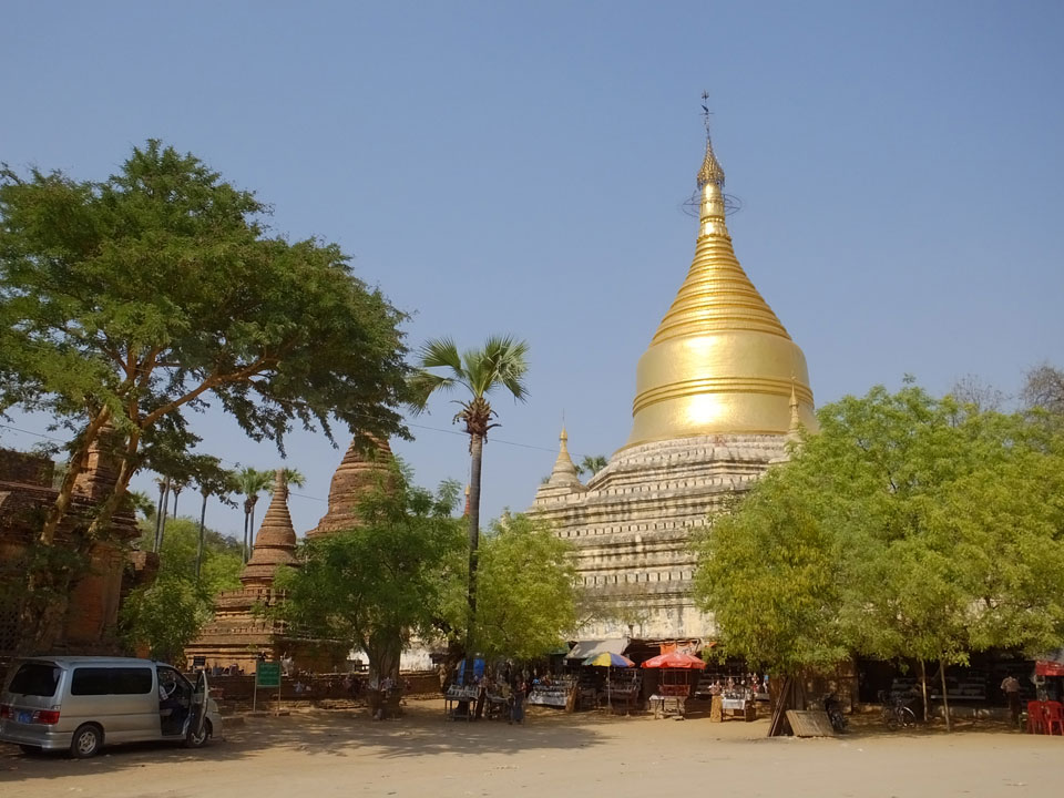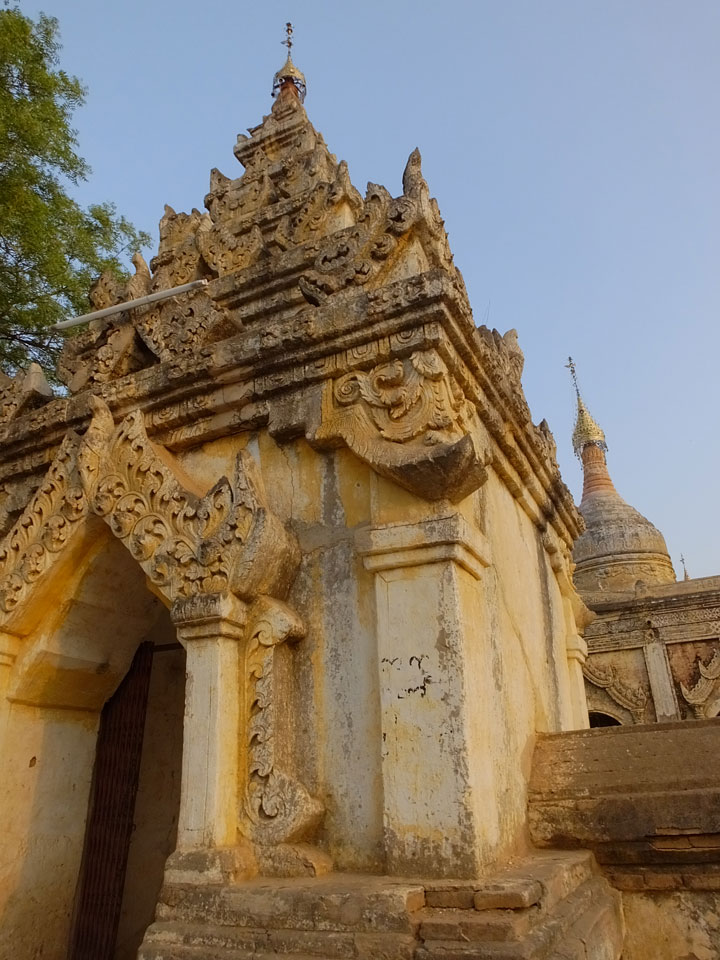 Ich fuhr zu vielen Tempeln, ging in einige und drehte auch so manche Runde durch die Pampa. Sandfahrten sind etwas schwerer zu beherrschen aber ich sah viel. Innen sind die Tempel einander ähnlich. Meine Theta wird immer beäugt. Sowas haben die Leute halt noch nicht gesehen, wenn ich sie auf einem Stativ hinstelle. Die Burmesen sind nett und neugierig. Alles super. Bei meiner Fahrt kam ich öfters an den gleichen Orten vorbei und sah Sachen doppelt. Die Tempel ähneln sich sehr und ich hatte mich gegen Abend schon satt gesehen.
