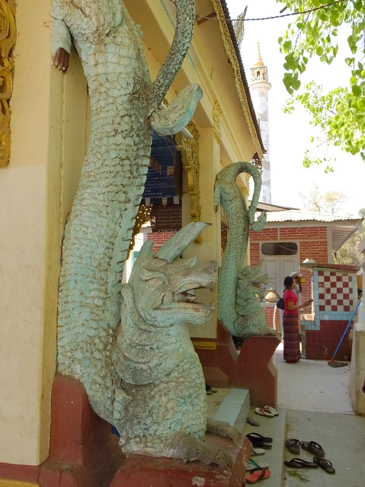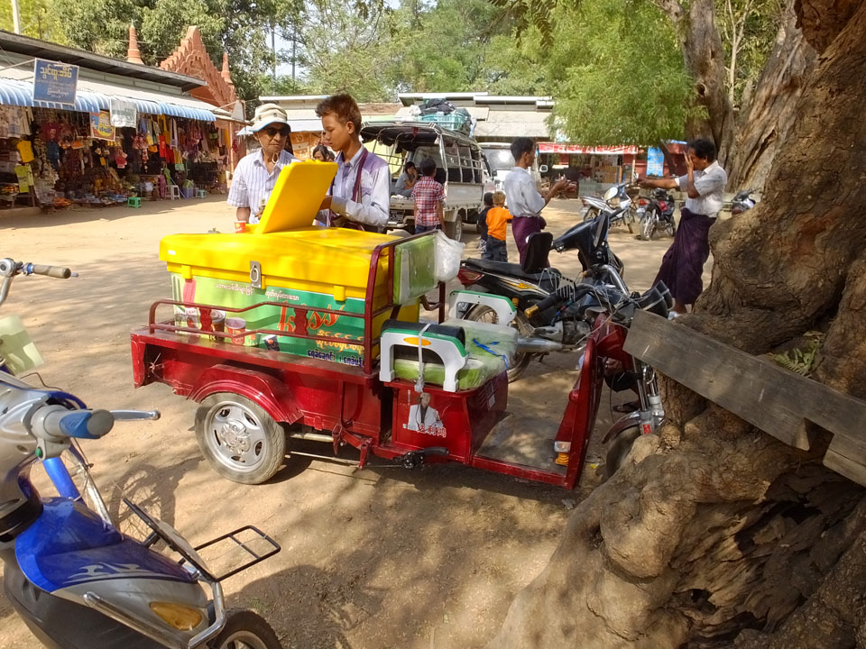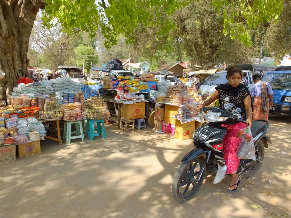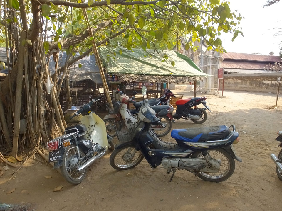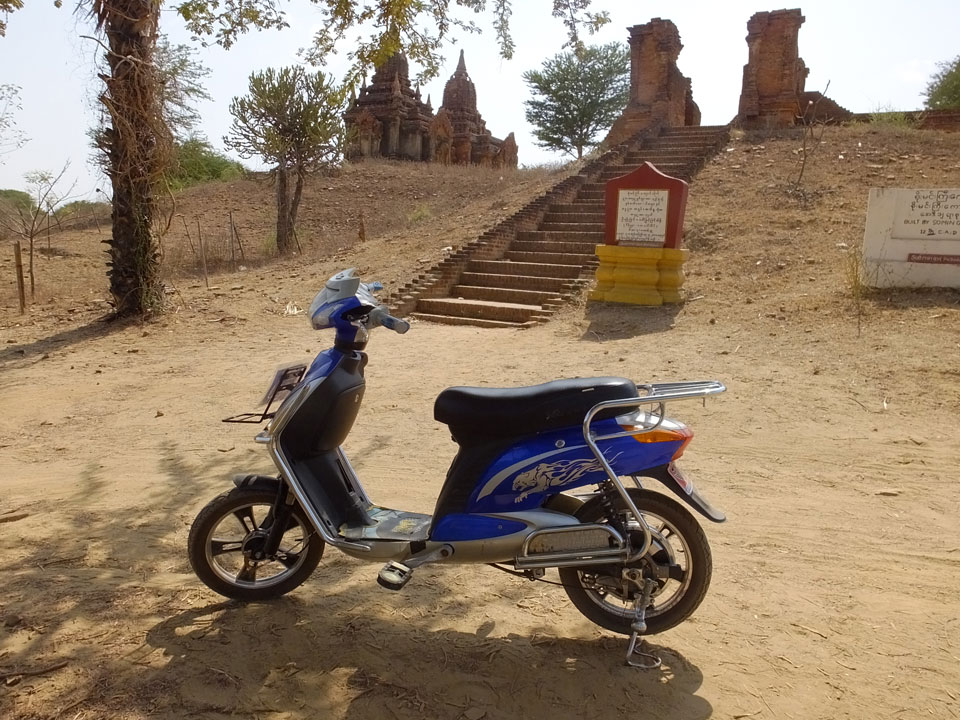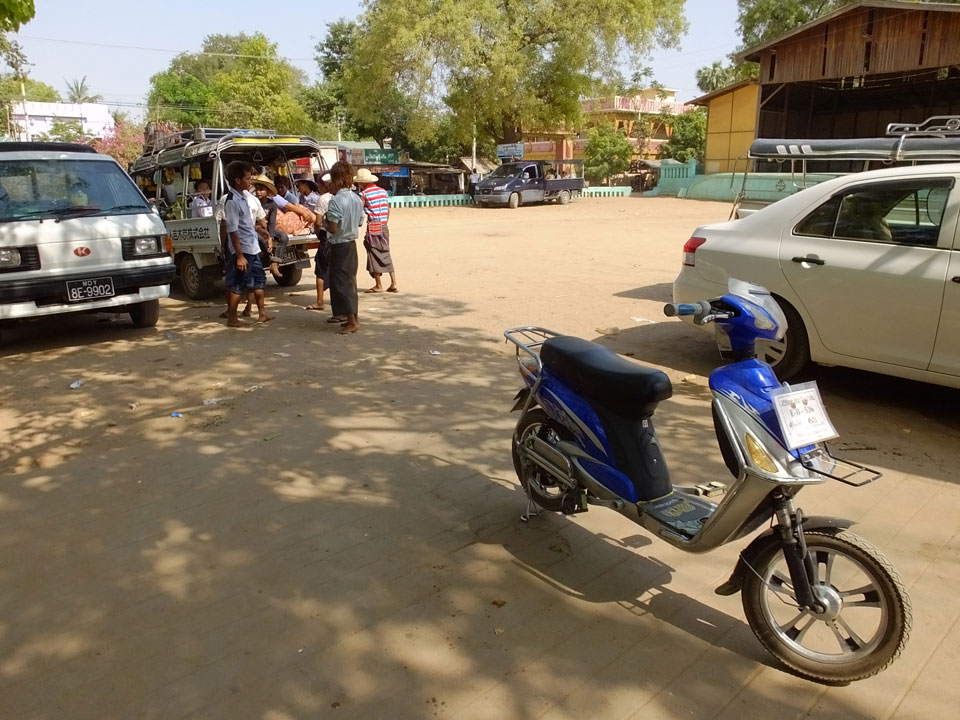Ich lieh mir einen eScooter aus. Zuerst mal musste 2 Mal der Akku ausgewechselt werden. Ich zahlte 4000 Kyat für den halben Tag und zuckelte los. Mit 25 km/h Höchstgeschwindigkeit alles ganz angenehm mit dem Fahrtwind und mit dem Elektroantrieb war das Teil auch einfach zu fahren.