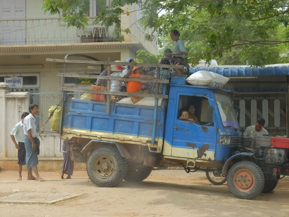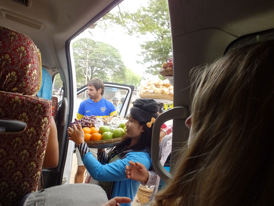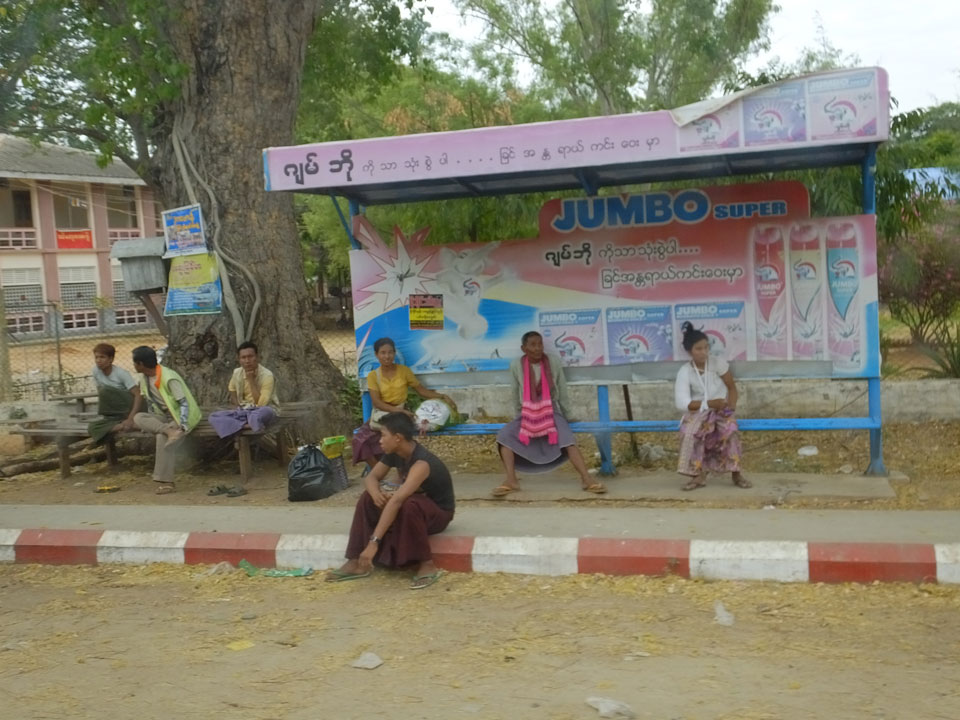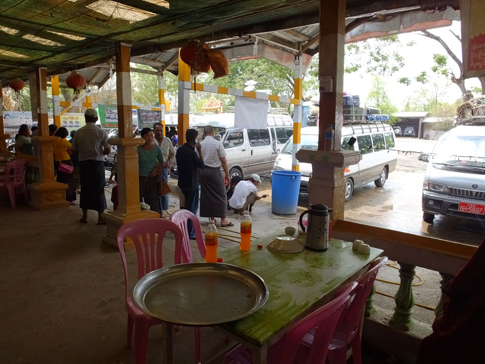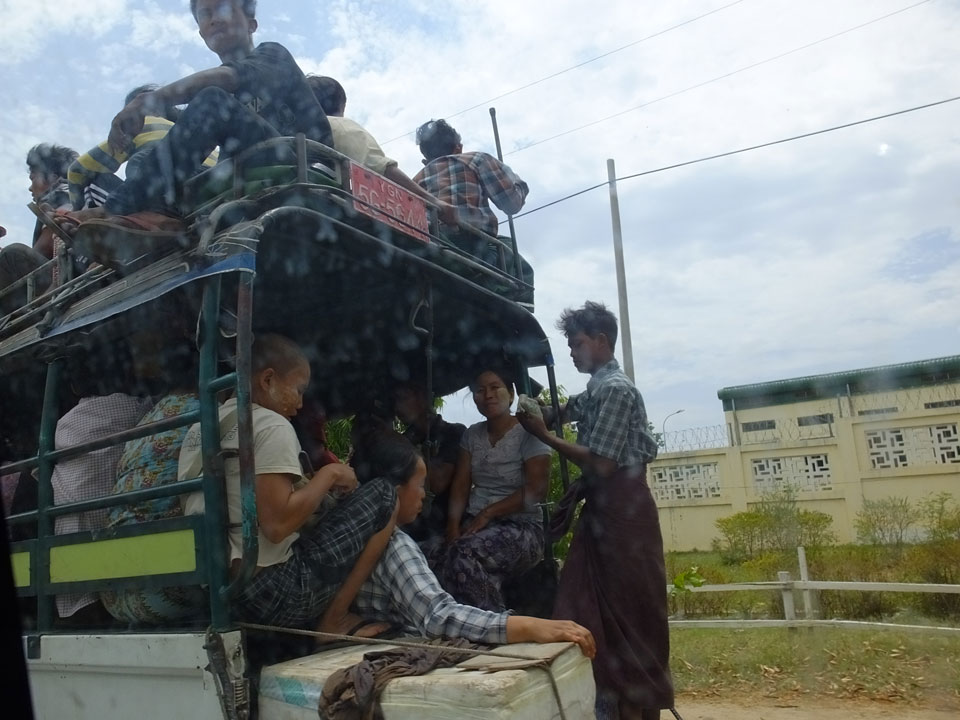 Morgens klappte mal wieder alles: Frühstück, Auschecken und Bus. Ein paar Leute aus dem Hostel wollten auch zum Inle-See und so wurde mein Rucksack auf dem Dach verstaut. Ich hatte aber eine andere Firma, also Rewind.