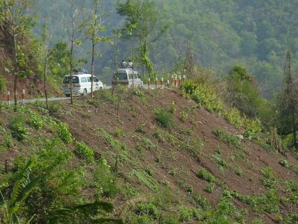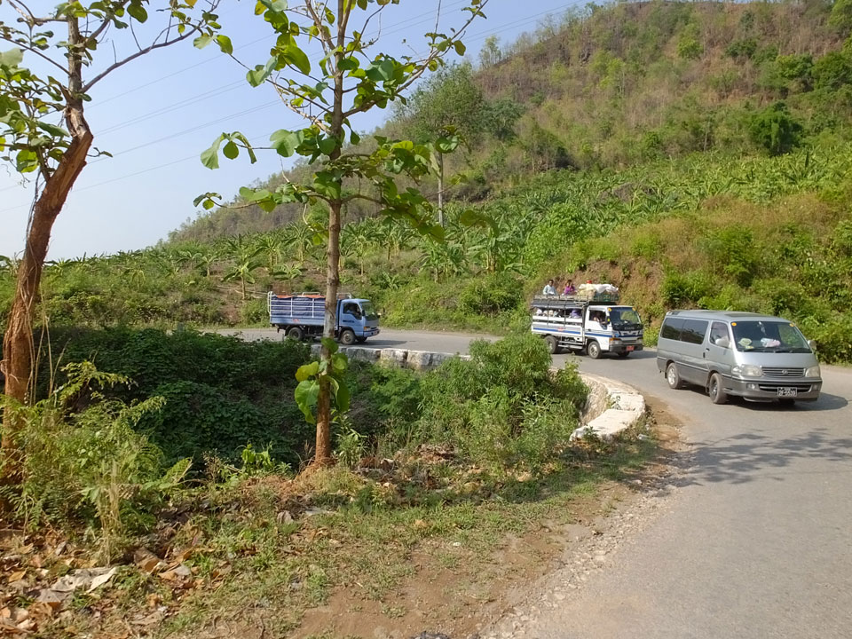 Die Fahrt schlängelte sich durch die Berge. Der Bus wurde mal u heiß, sodass wir eine Pause warten und danach etwas ohne AC auskommen mussten. In Kalaw schließlich stieg gut die Hälfte aus. Die Leute wollen den 3 Tages-Trek nach Nyaung Shwe machen. Bei der Hitze kommt sowas für mich nicht in Frage. Ein Mädel machte einie Treks, so was ich mithörte – auch den 3 Wochen Everest Trek.