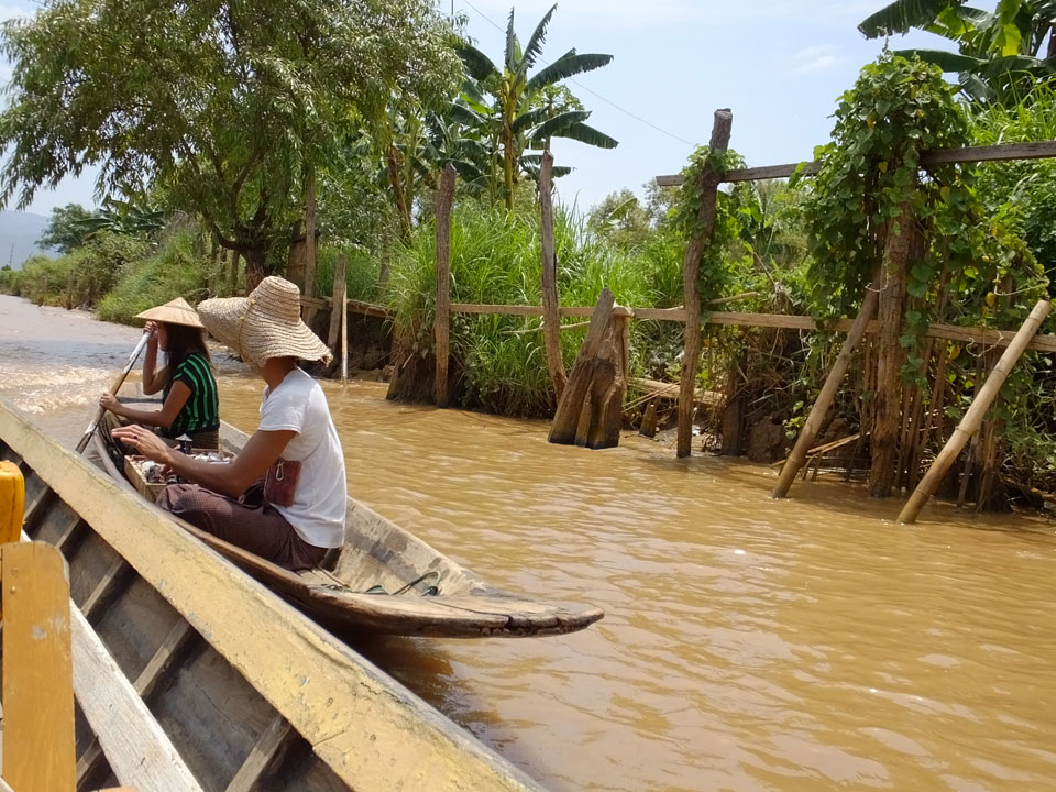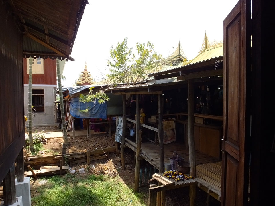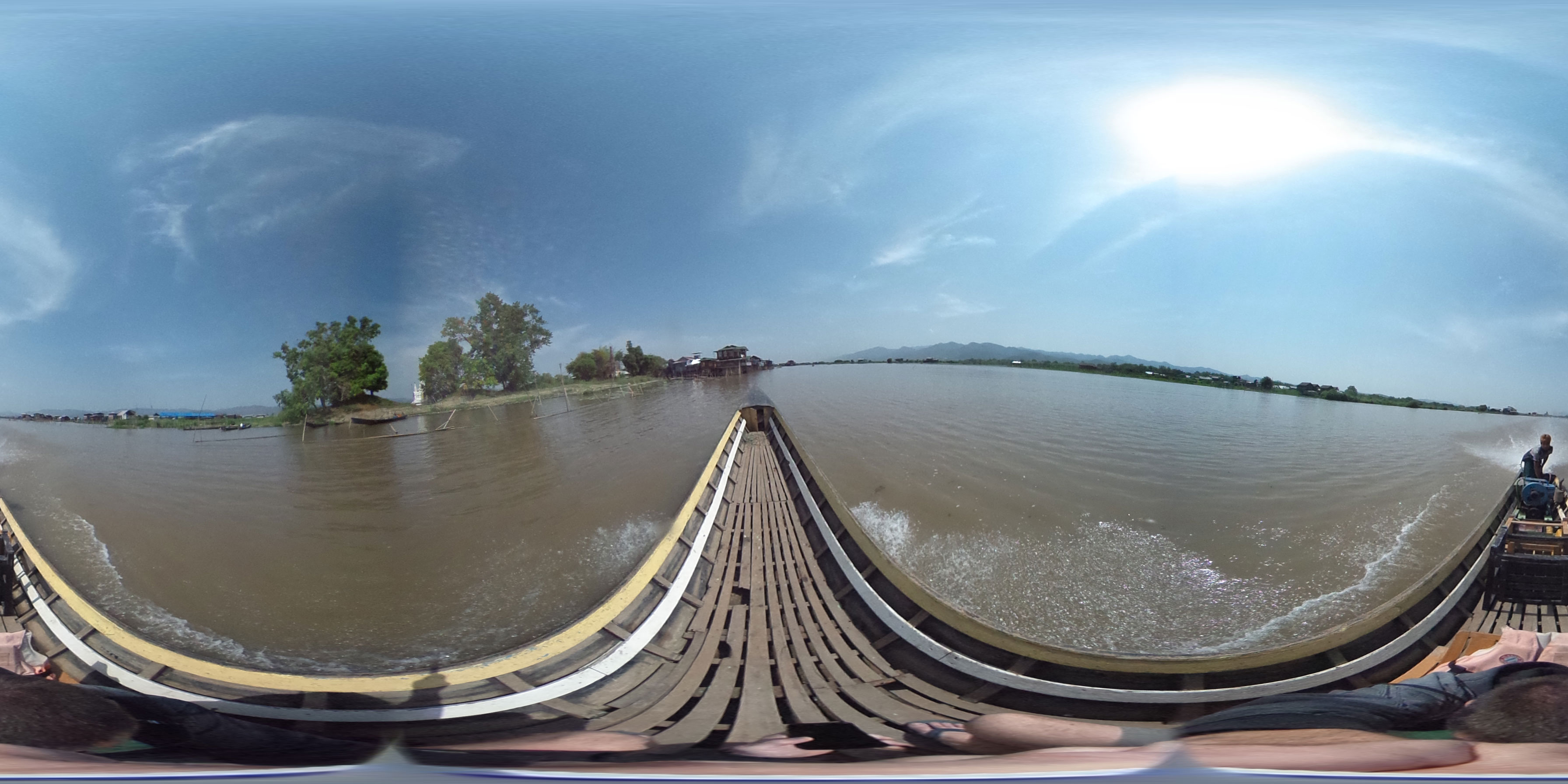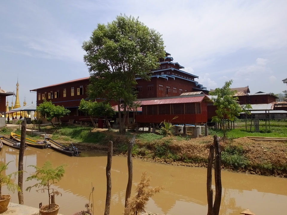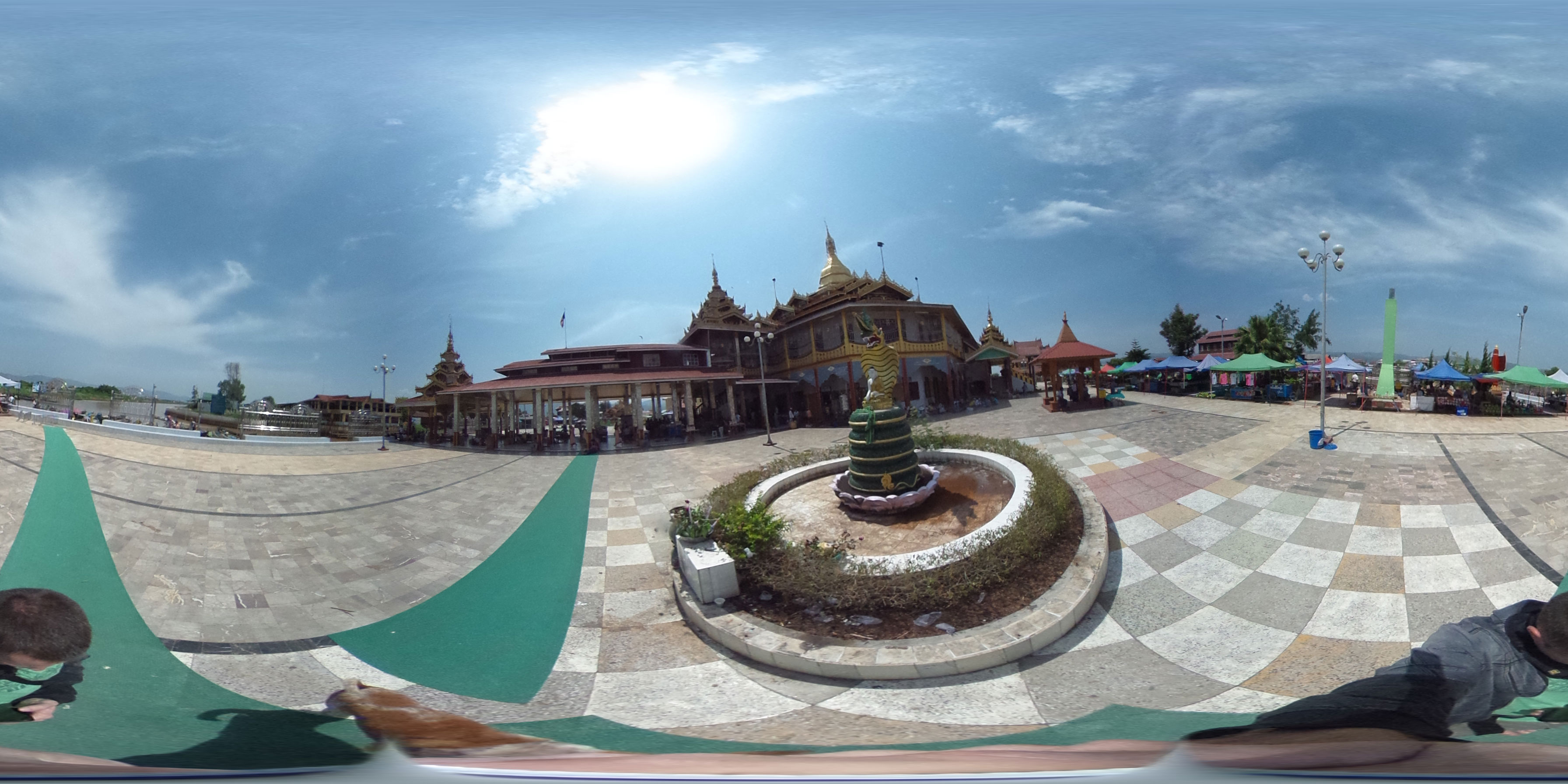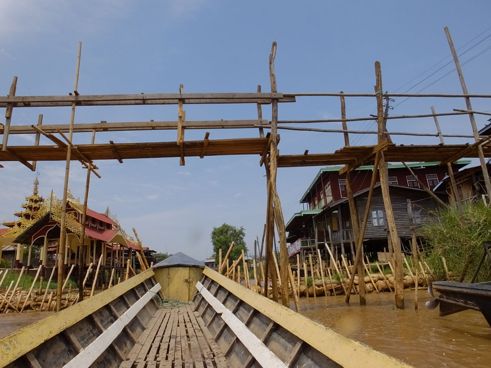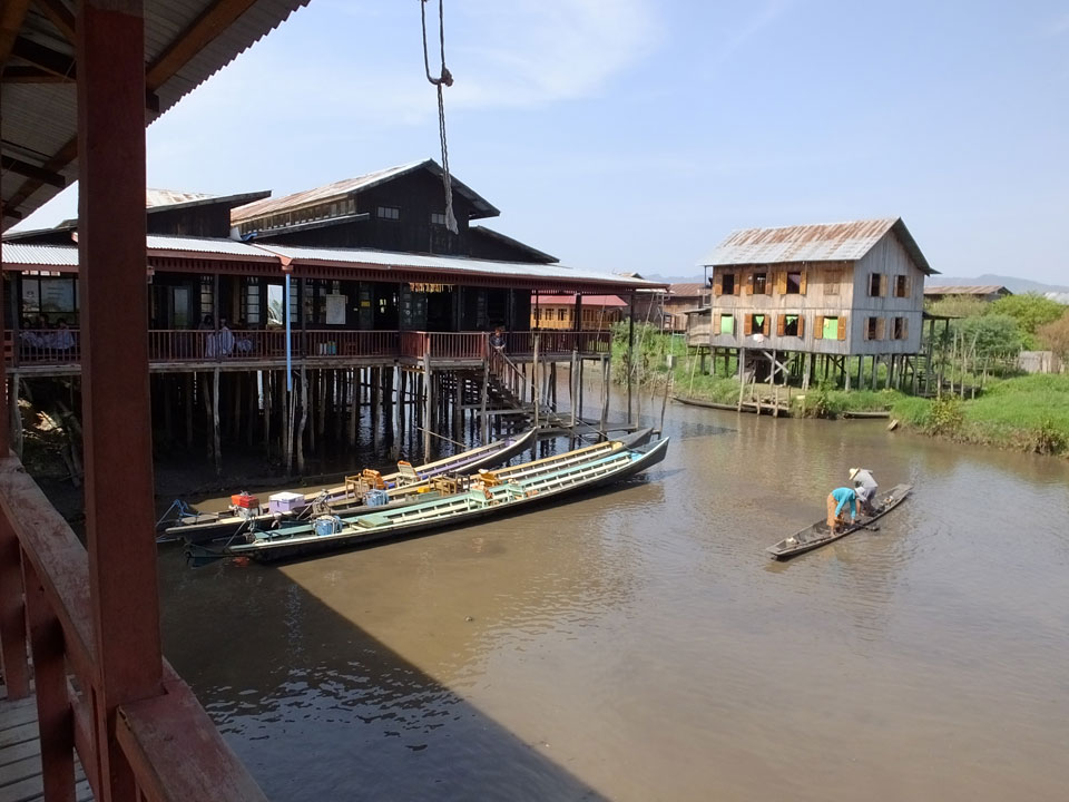 Kein Interesse, das Kloster nebenan noch zu besuchen und der Markt sei inzwischen auch zu. Für mich OK, ich hatte genug gesehen und so ging die Fahrt zurück. Noch mehr Photos und eine leere Batterie der Theta. Ich war’s zufrieden und kam wieder gut vor dem Hotel direkt am Kanal an. Brav zahlte ich die 15.000 Kyat. Die ganze Tour nahm um die 4 Stunden in Anspruch. Meine Beine hatte ich mir etwas in der Sonne verbrannt. Kopf und Gesicht waren dank Sonnencreme und Kapuzenpullover gesichert