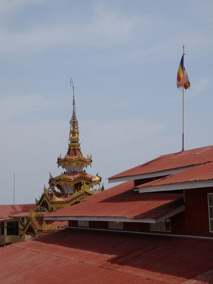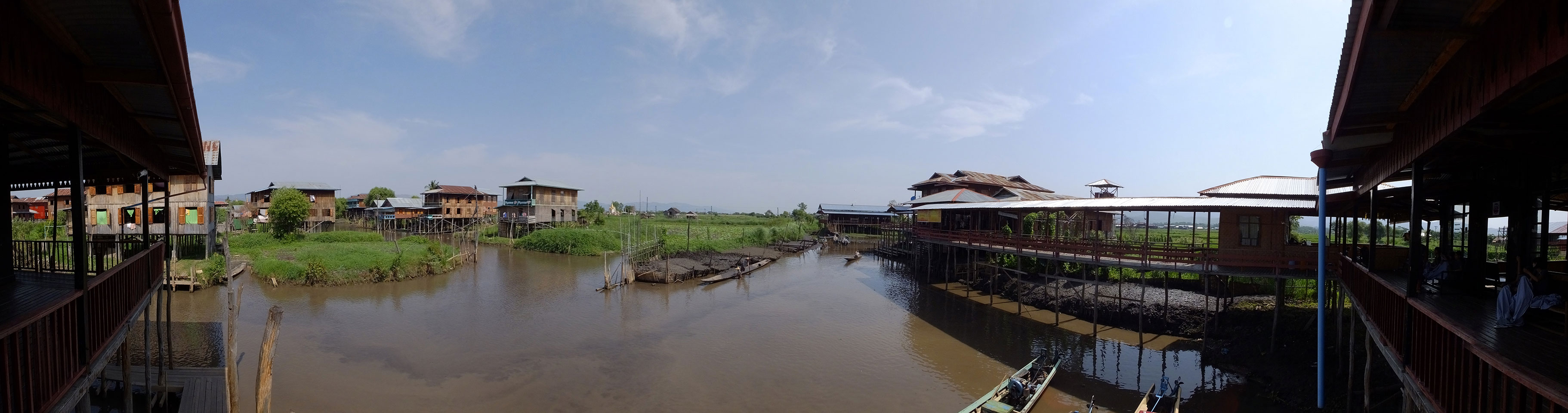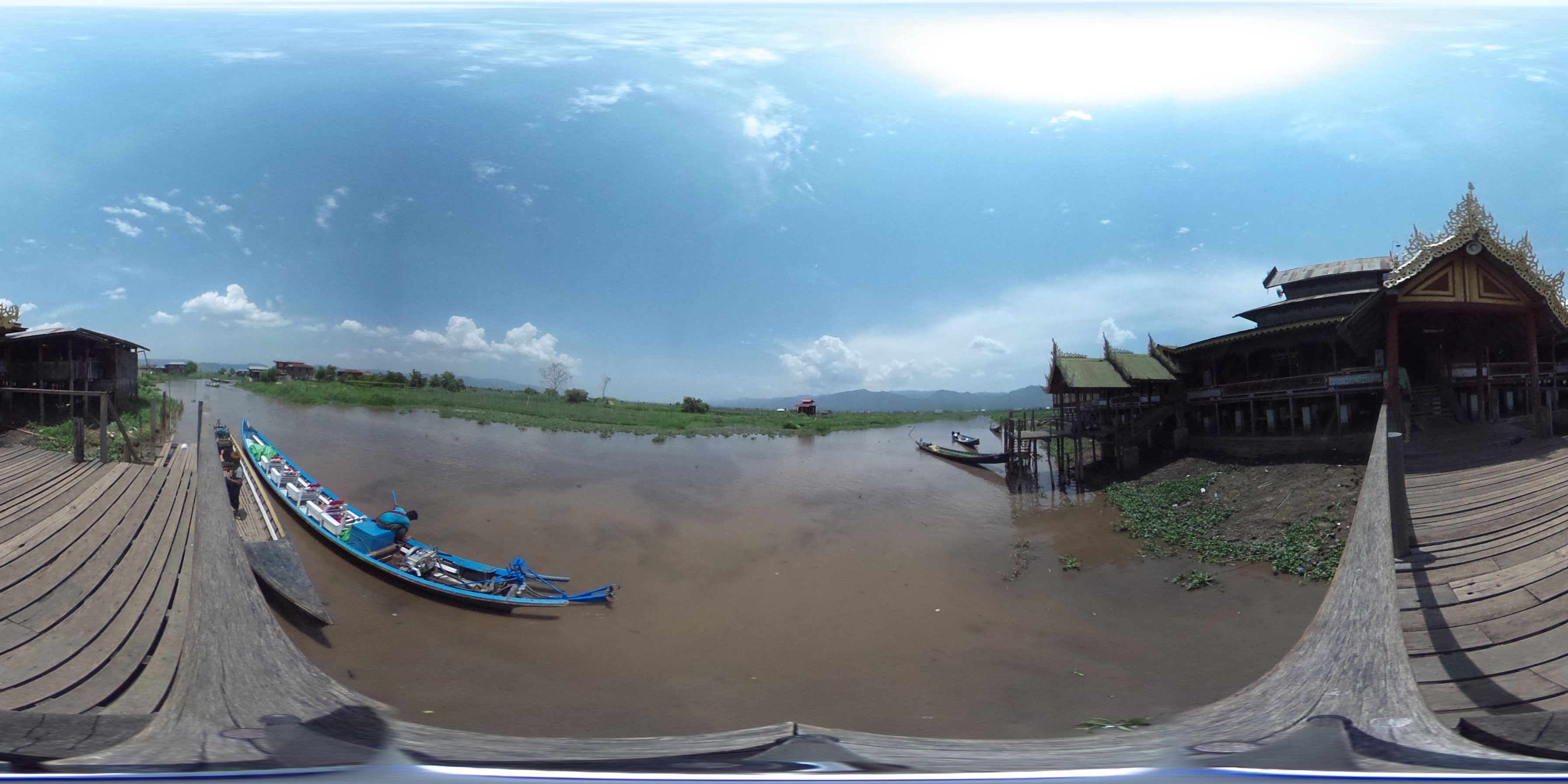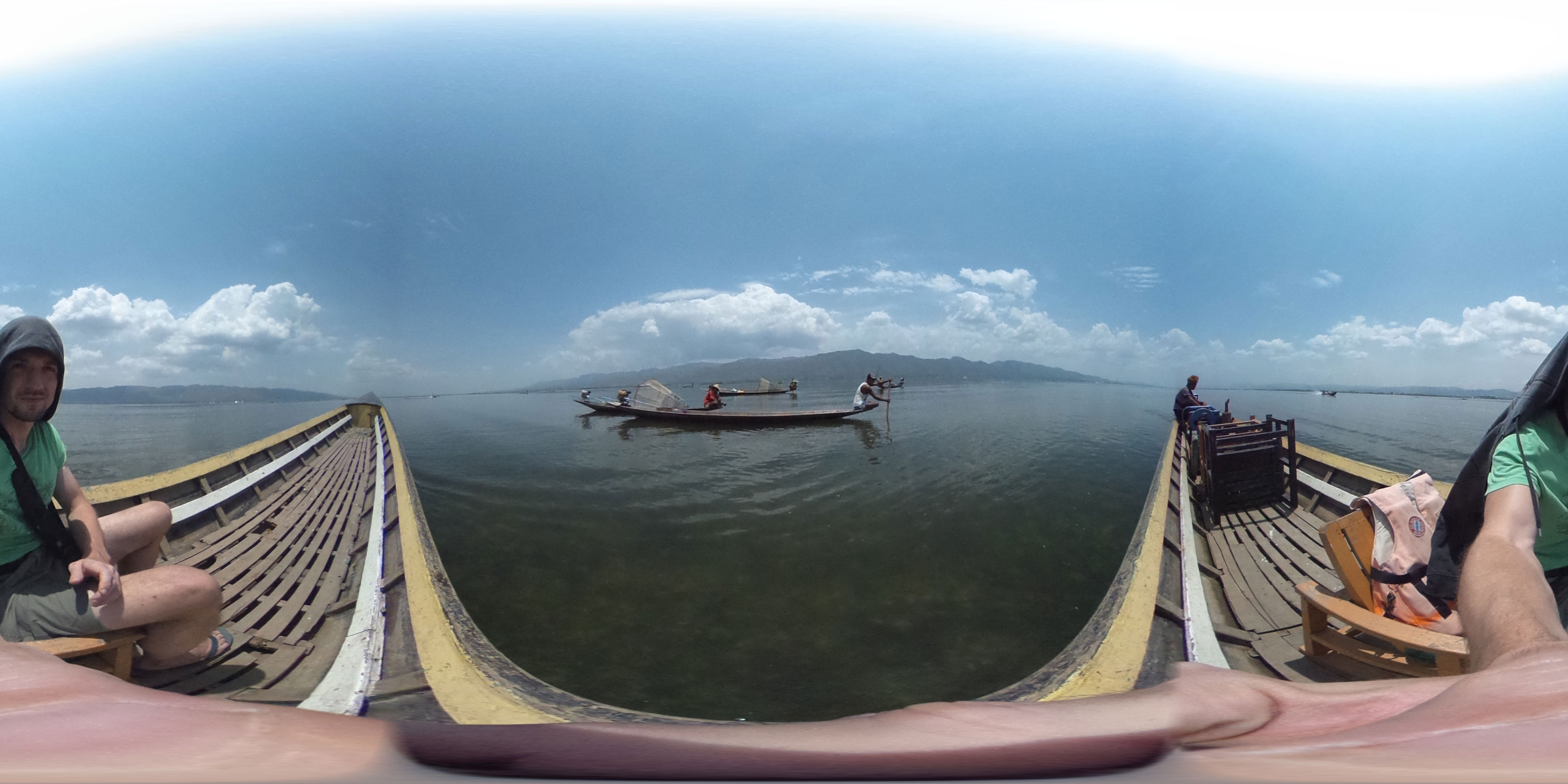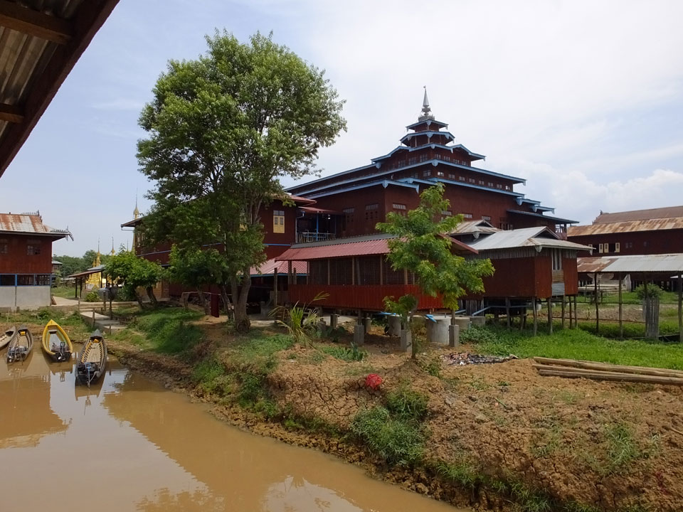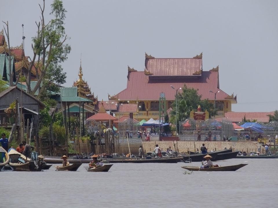 Kein Interesse, das Kloster nebenan noch zu besuchen und der Markt sei inzwischen auch zu. Für mich OK, ich hatte genug gesehen und so ging die Fahrt zurück. Noch mehr Photos und eine leere Batterie der Theta. Ich war’s zufrieden und kam wieder gut vor dem Hotel direkt am Kanal an. Brav zahlte ich die 15.000 Kyat. Die ganze Tour nahm um die 4 Stunden in Anspruch. Meine Beine hatte ich mir etwas in der Sonne verbrannt. Kopf und Gesicht waren dank Sonnencreme und Kapuzenpullover gesichert