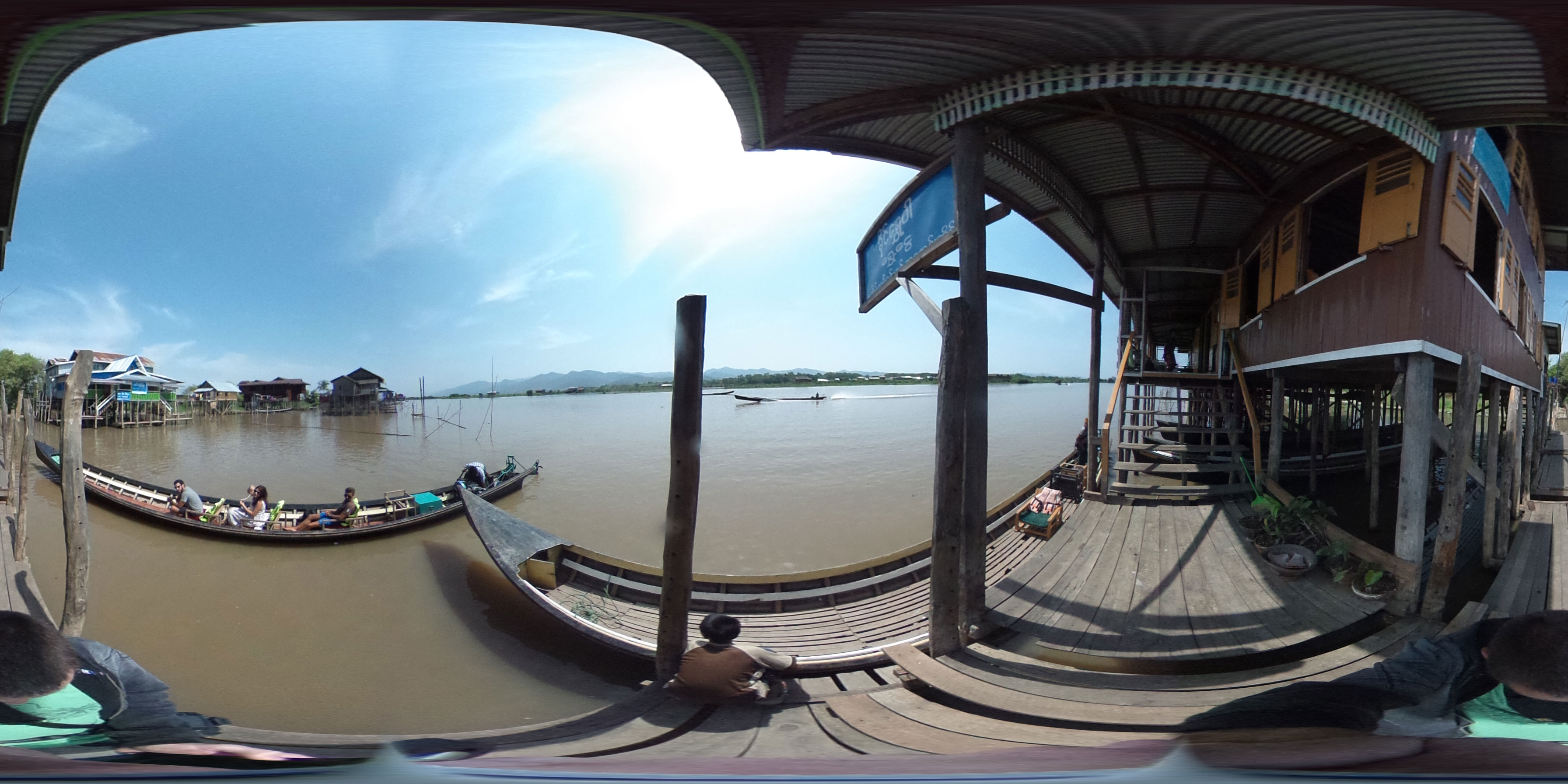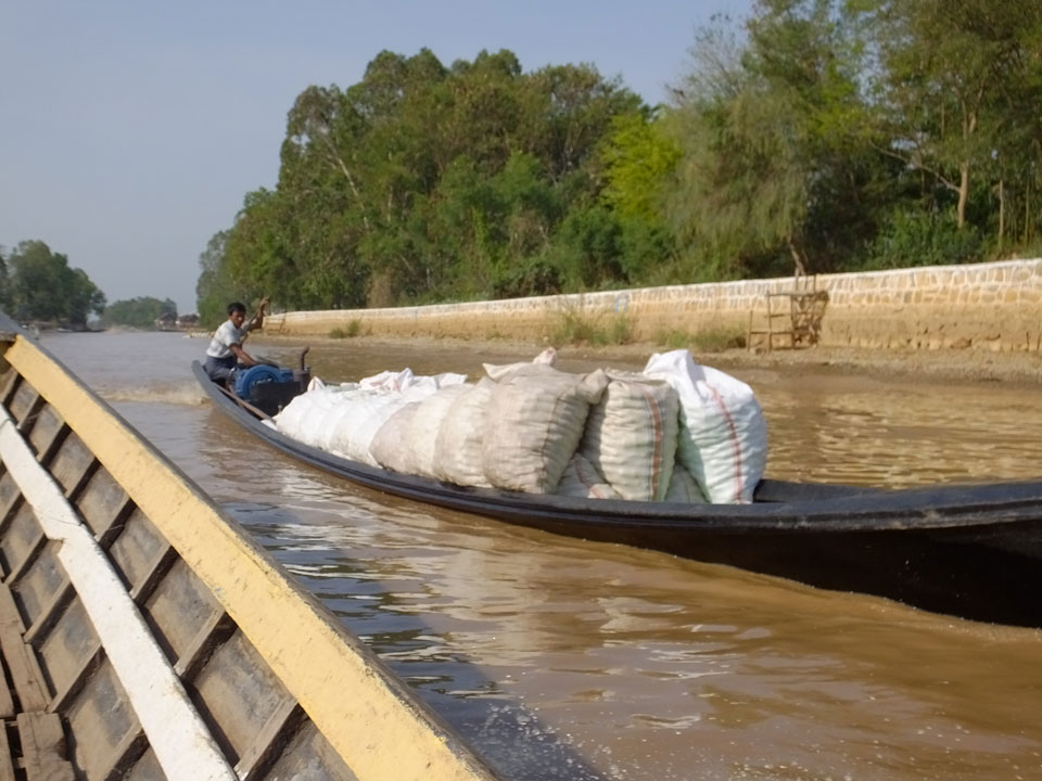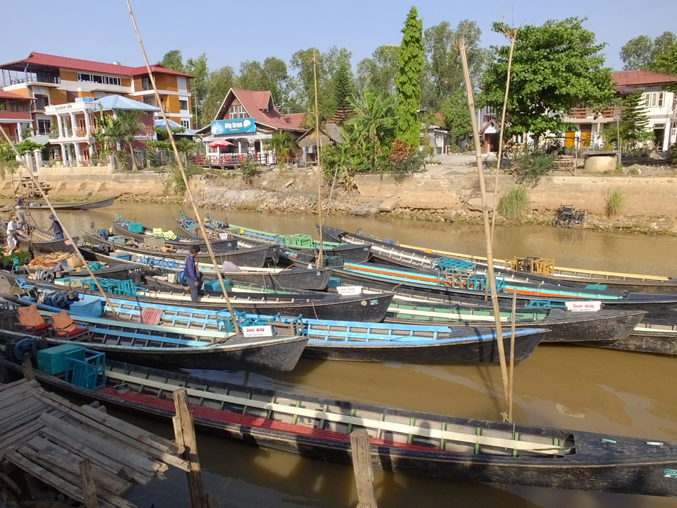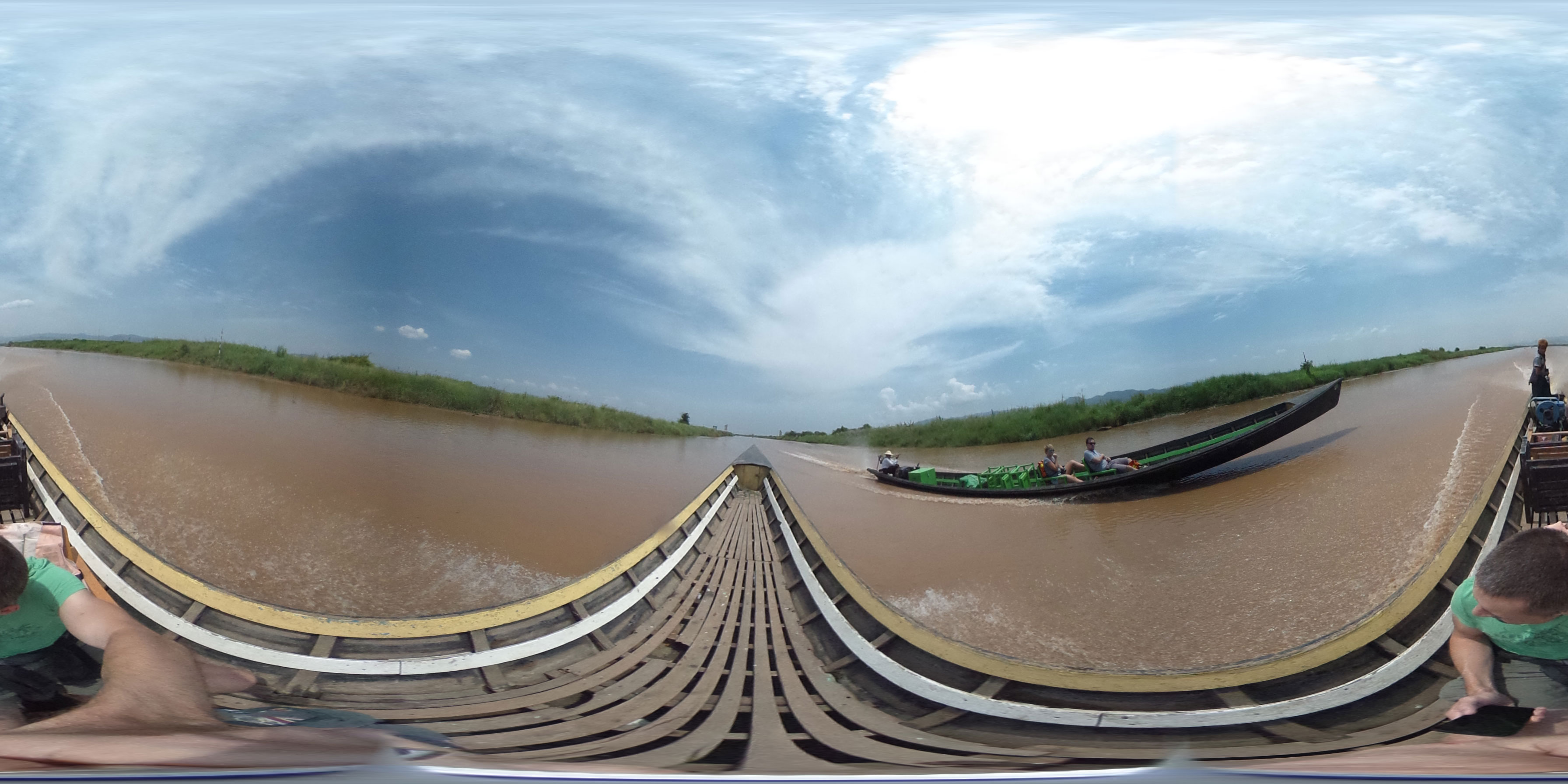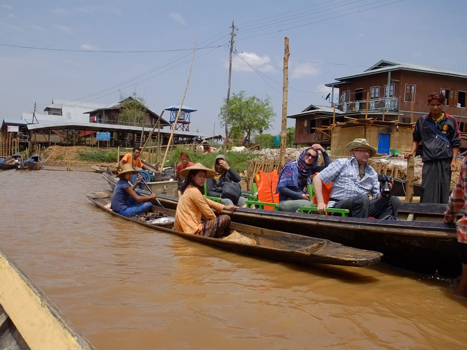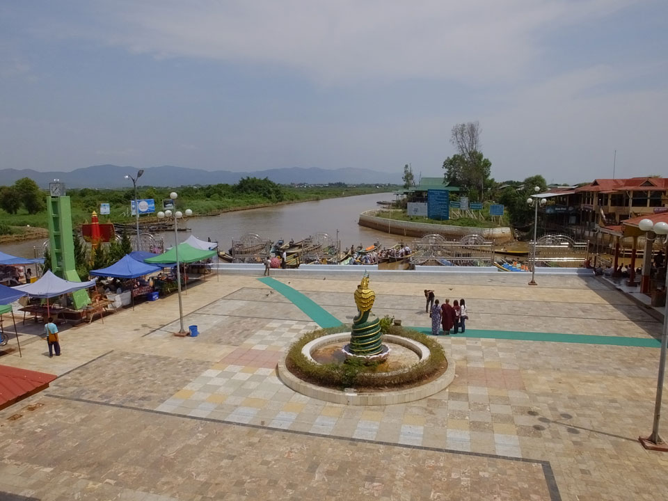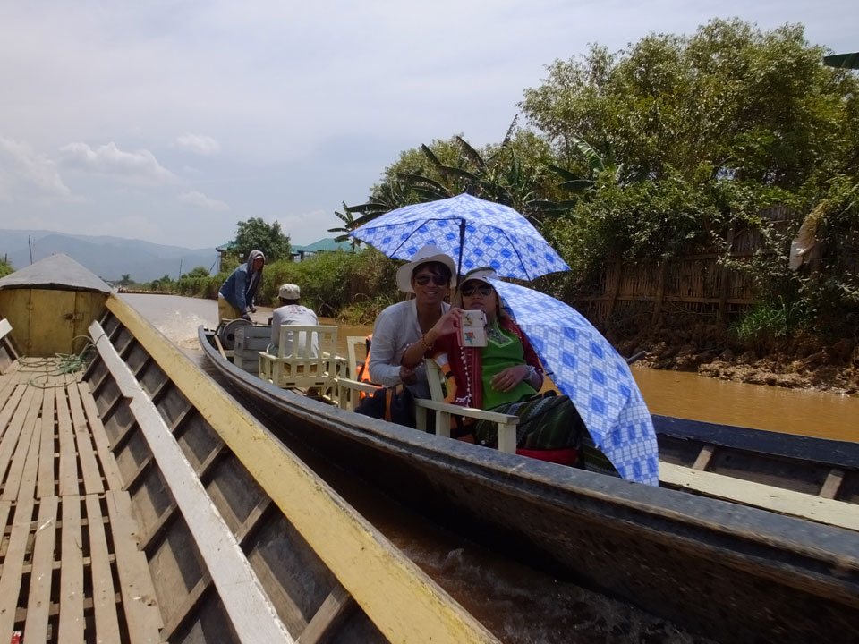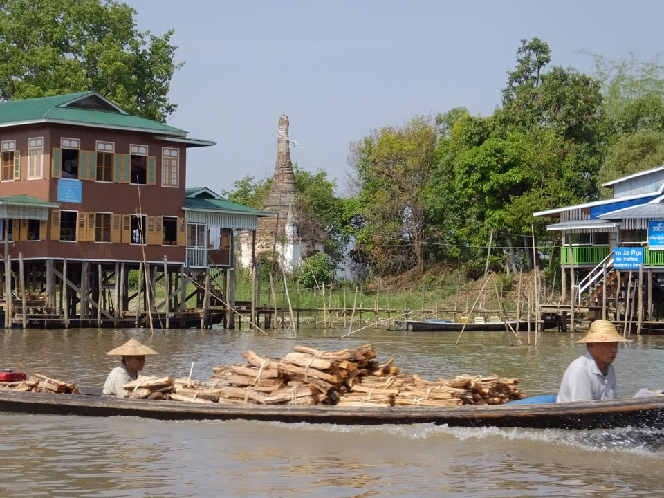 Kein Interesse, das Kloster nebenan noch zu besuchen und der Markt sei inzwischen auch zu. Für mich OK, ich hatte genug gesehen und so ging die Fahrt zurück. Noch mehr Photos und eine leere Batterie der Theta. Ich war’s zufrieden und kam wieder gut vor dem Hotel direkt am Kanal an. Brav zahlte ich die 15.000 Kyat. Die ganze Tour nahm um die 4 Stunden in Anspruch. Meine Beine hatte ich mir etwas in der Sonne verbrannt. Kopf und Gesicht waren dank Sonnencreme und Kapuzenpullover gesichert