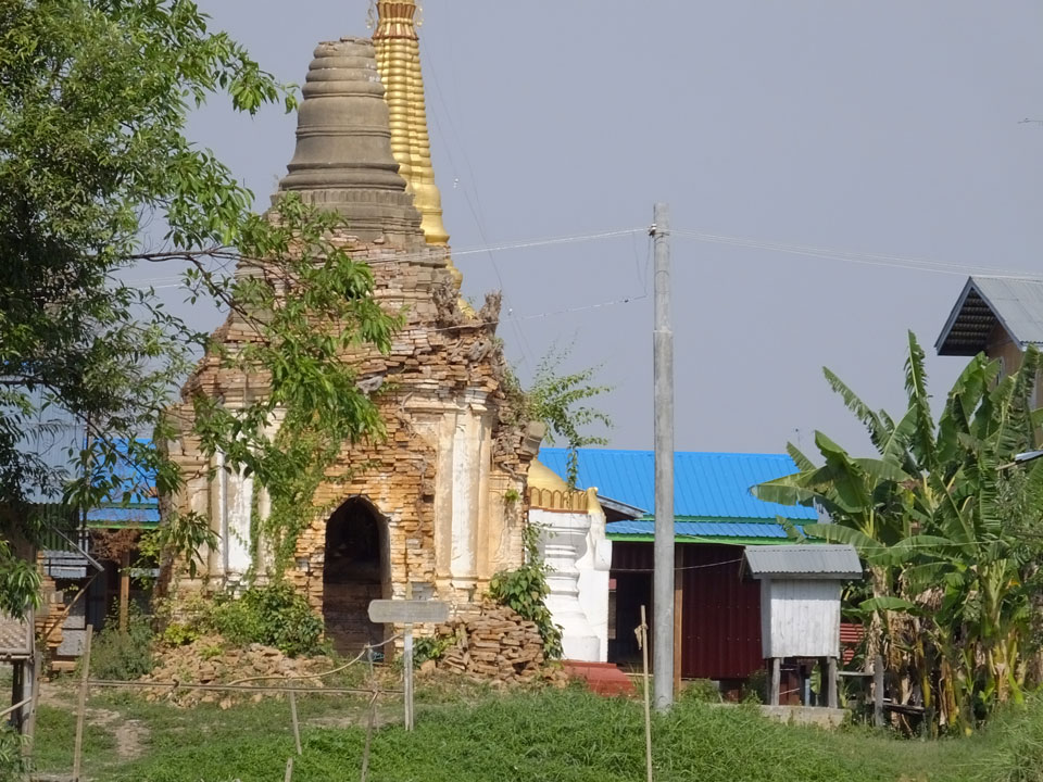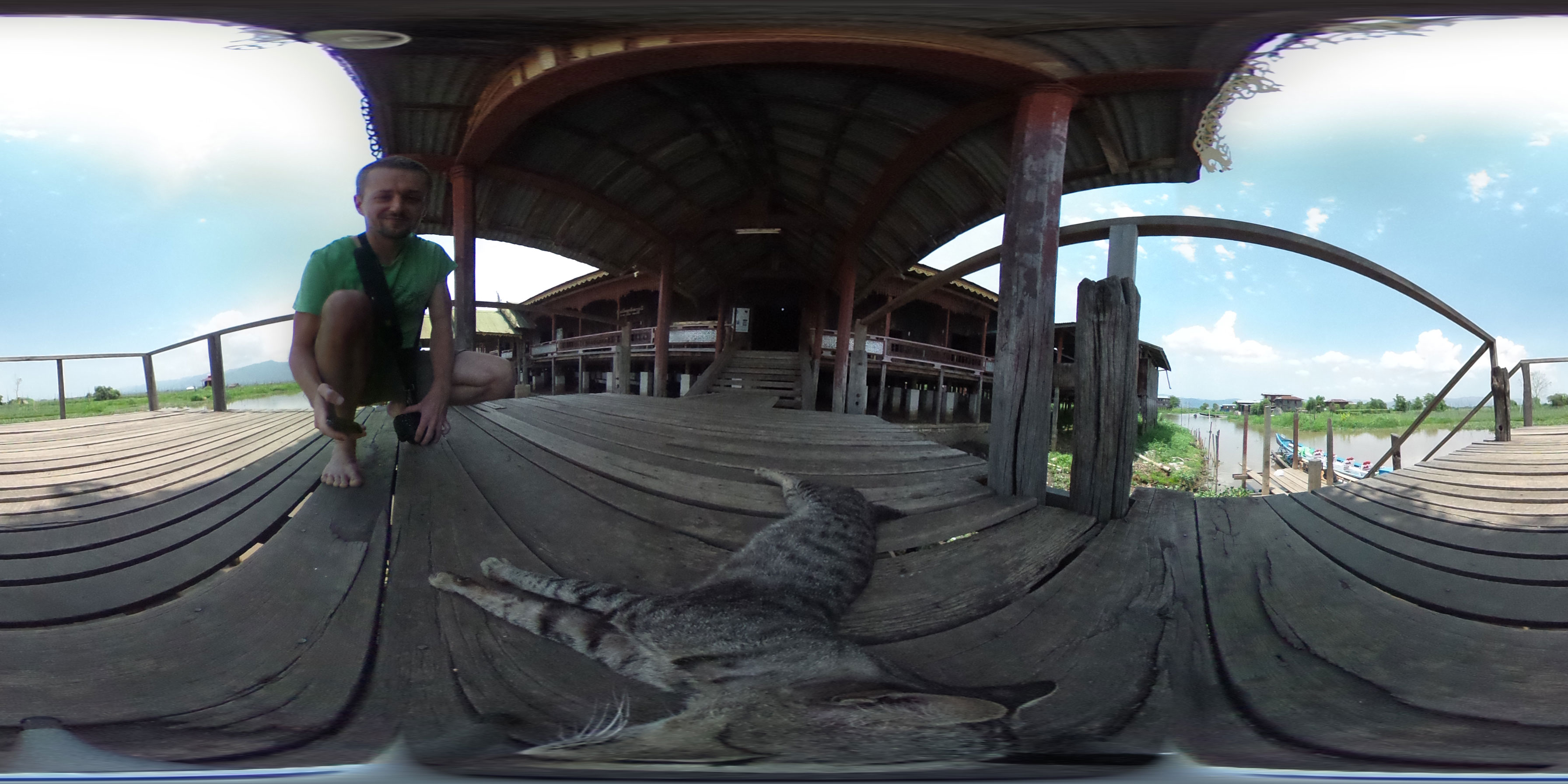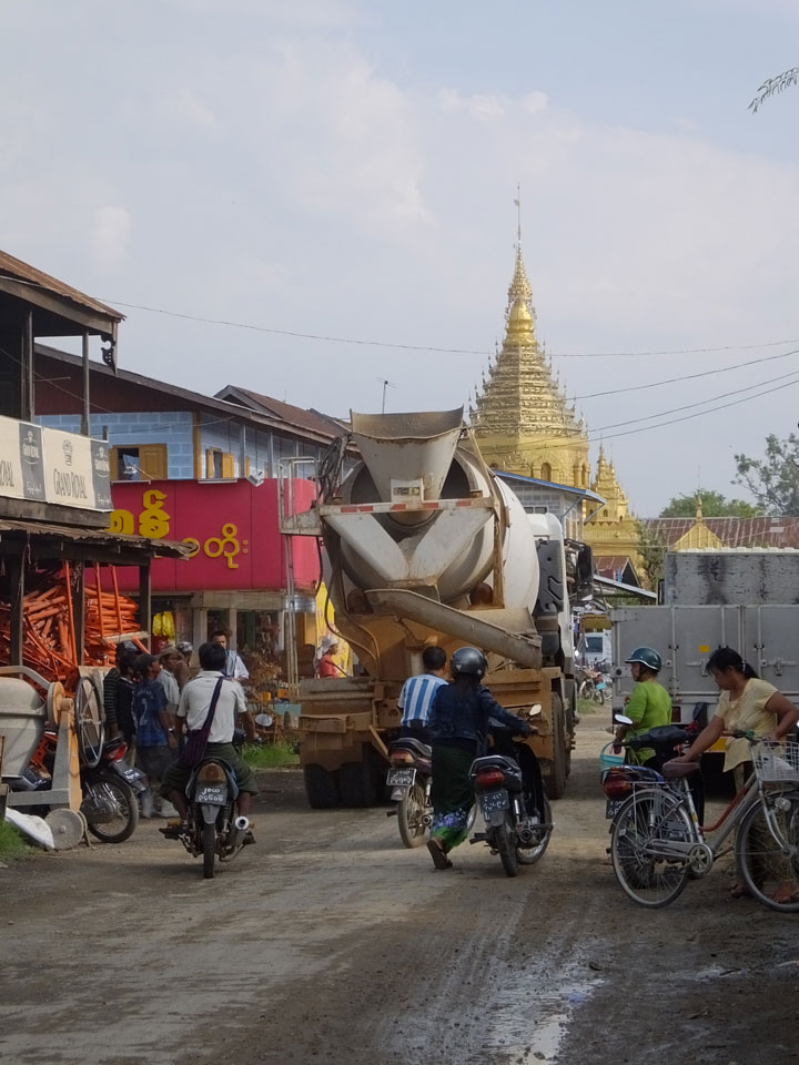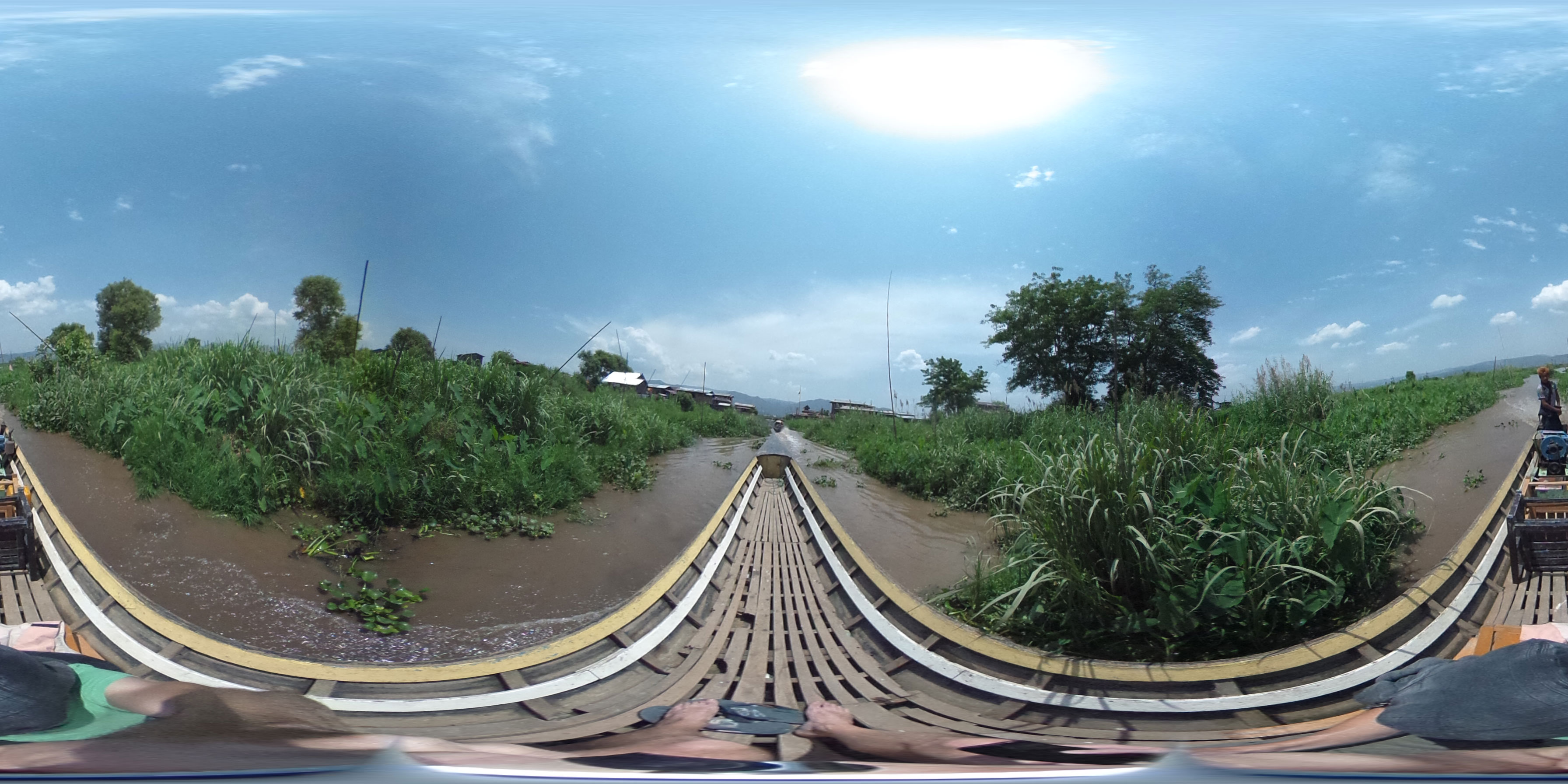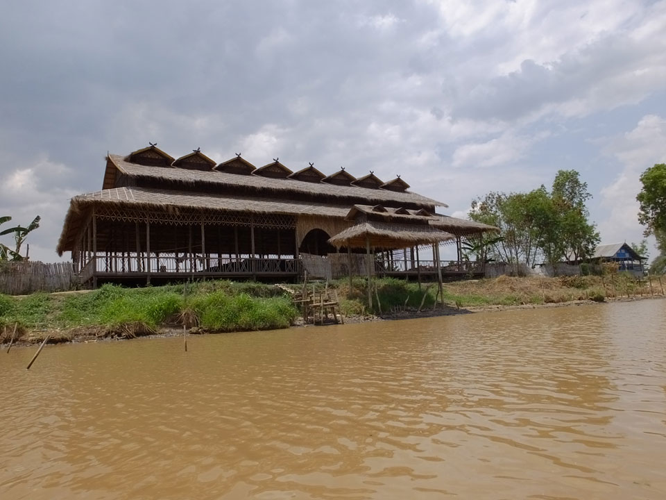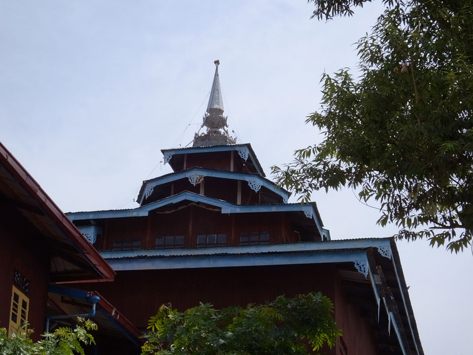 Kein Interesse, das Kloster nebenan noch zu besuchen und der Markt sei inzwischen auch zu. Für mich OK, ich hatte genug gesehen und so ging die Fahrt zurück. Noch mehr Photos und eine leere Batterie der Theta. Ich war’s zufrieden und kam wieder gut vor dem Hotel direkt am Kanal an. Brav zahlte ich die 15.000 Kyat. Die ganze Tour nahm um die 4 Stunden in Anspruch. Meine Beine hatte ich mir etwas in der Sonne verbrannt. Kopf und Gesicht waren dank Sonnencreme und Kapuzenpullover gesichert