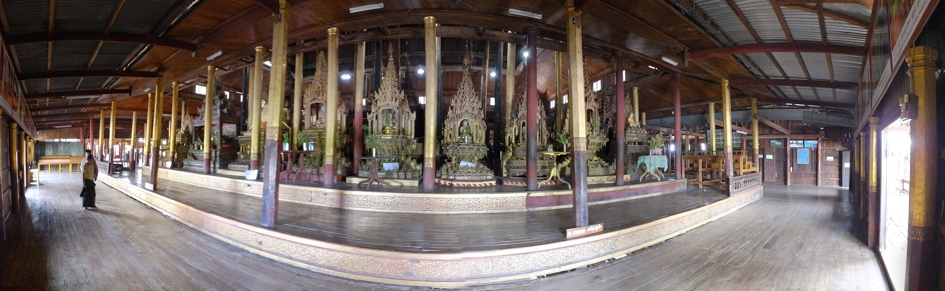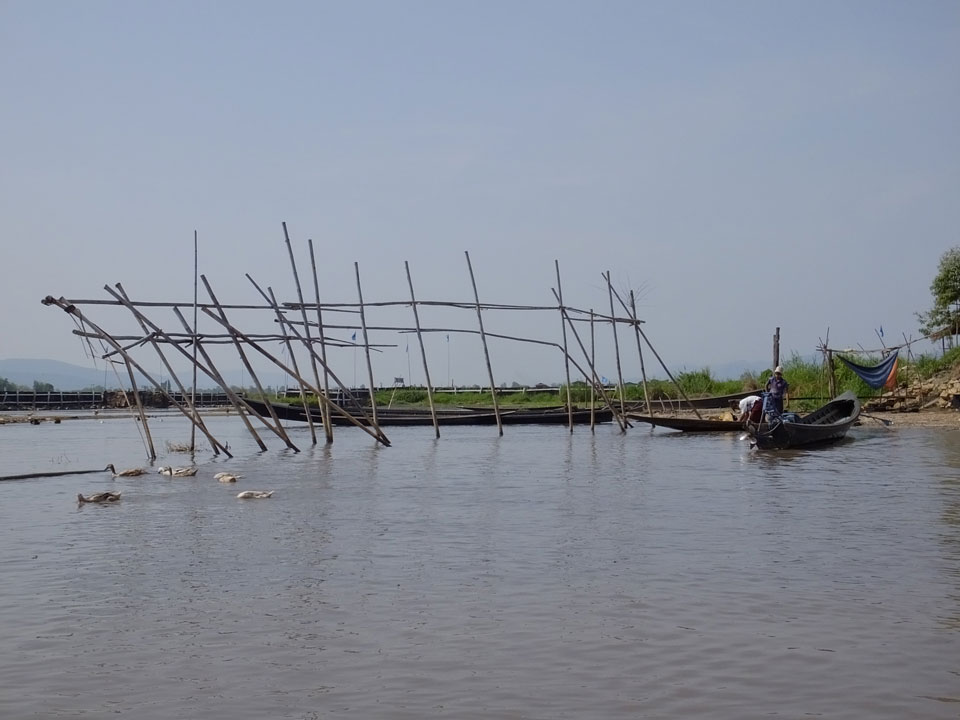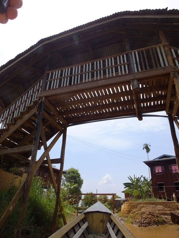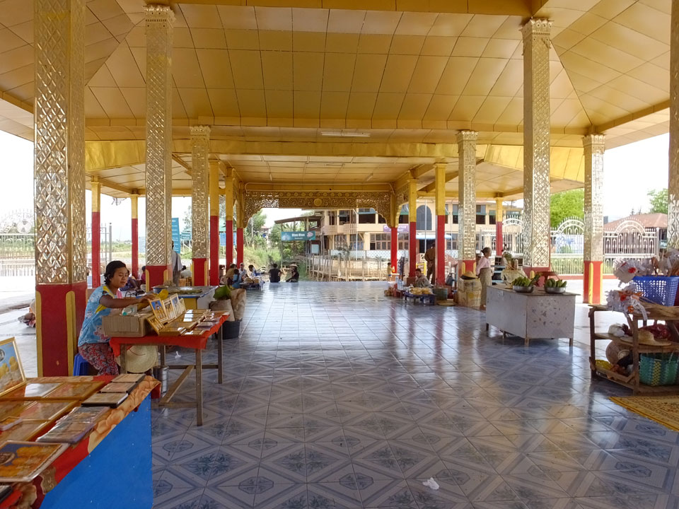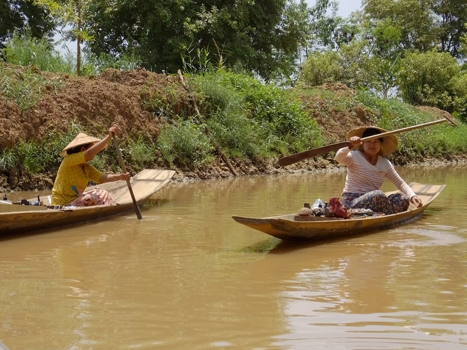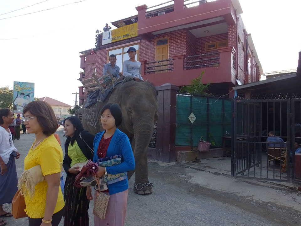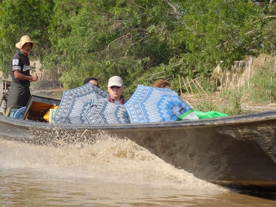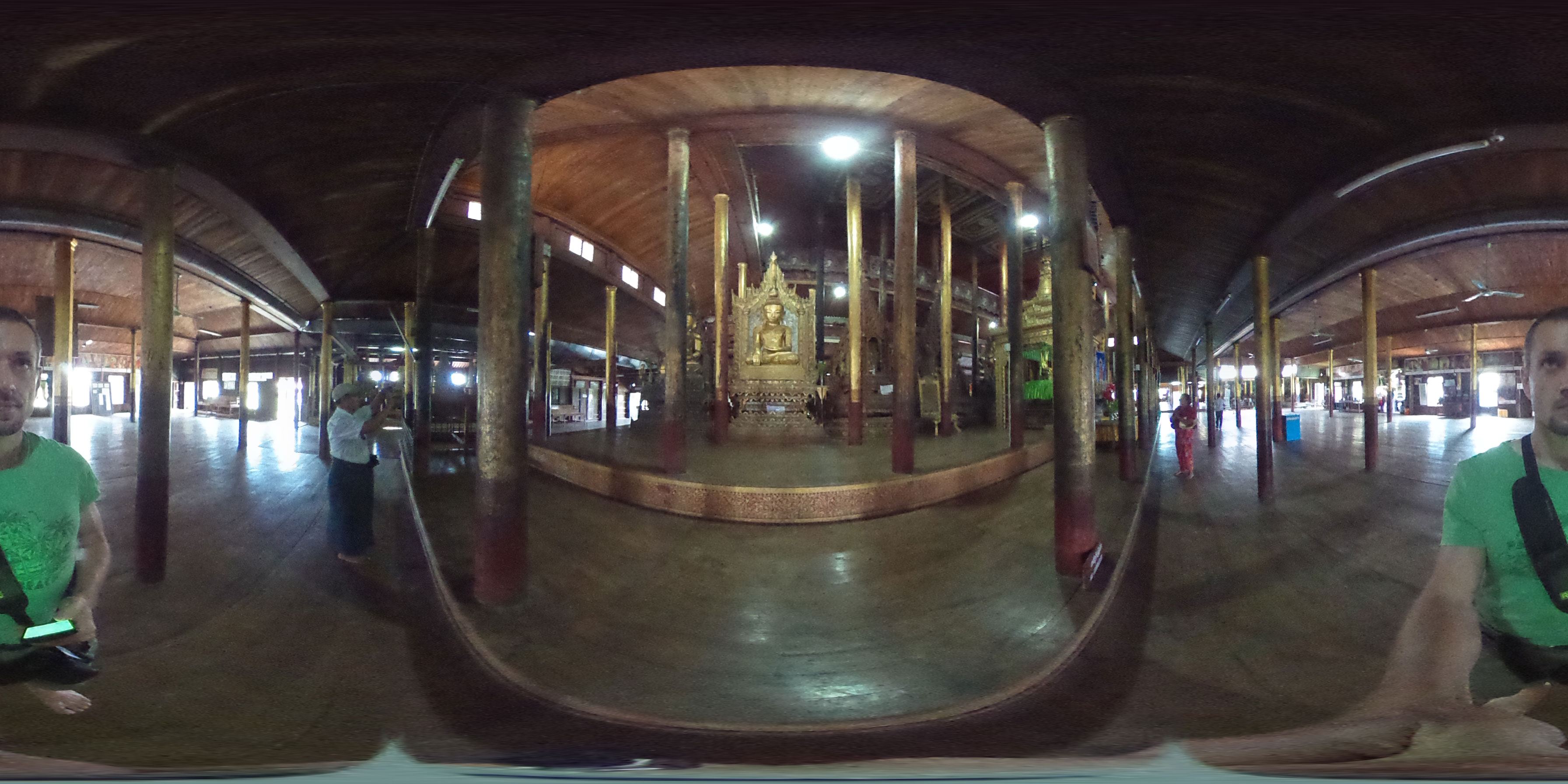 Kein Interesse, das Kloster nebenan noch zu besuchen und der Markt sei inzwischen auch zu. Für mich OK, ich hatte genug gesehen und so ging die Fahrt zurück. Noch mehr Photos und eine leere Batterie der Theta. Ich war’s zufrieden und kam wieder gut vor dem Hotel direkt am Kanal an. Brav zahlte ich die 15.000 Kyat. Die ganze Tour nahm um die 4 Stunden in Anspruch. Meine Beine hatte ich mir etwas in der Sonne verbrannt. Kopf und Gesicht waren dank Sonnencreme und Kapuzenpullover gesichert