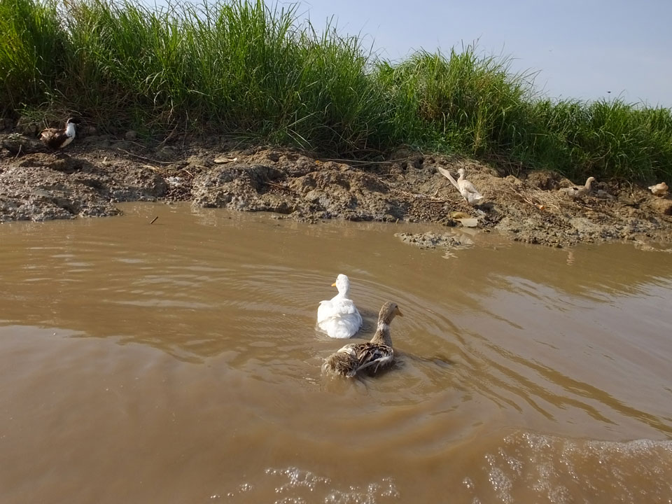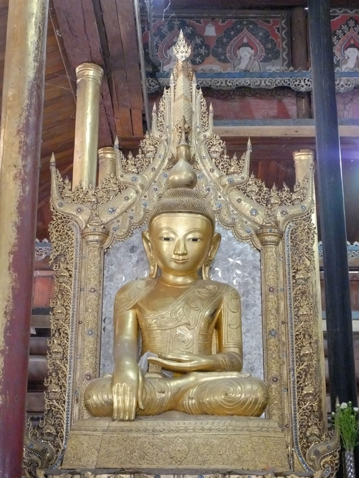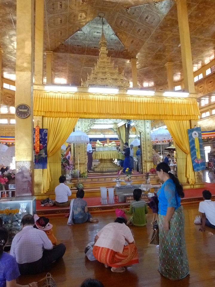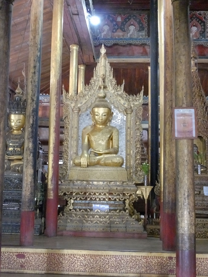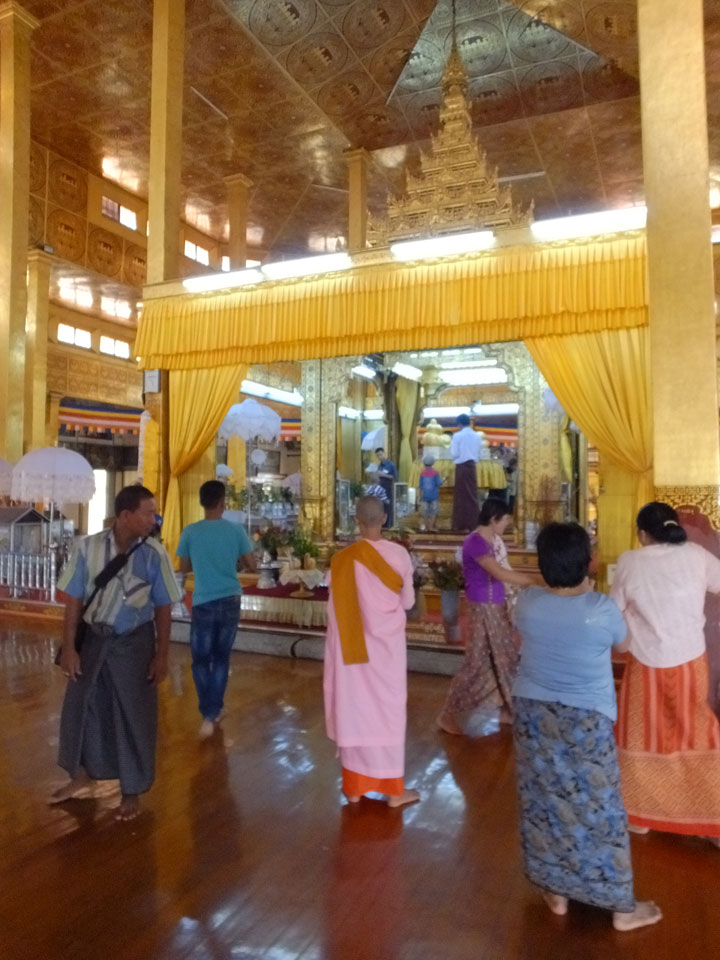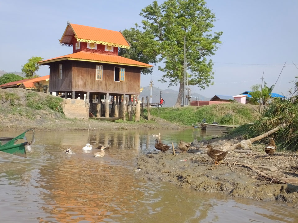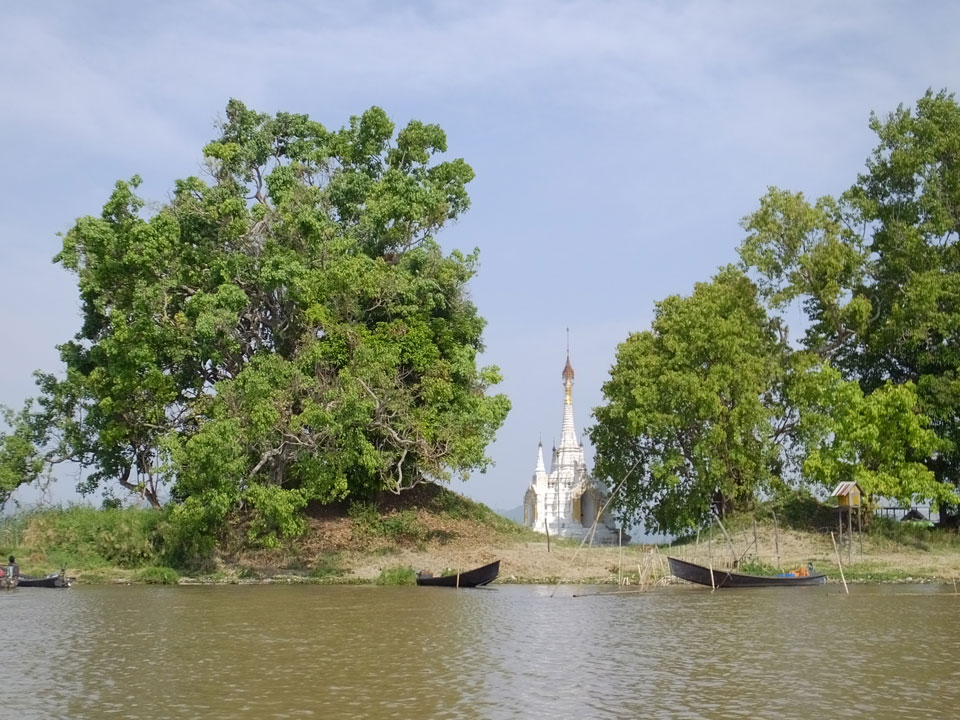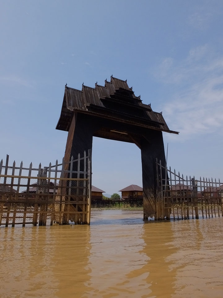 Kein Interesse, das Kloster nebenan noch zu besuchen und der Markt sei inzwischen auch zu. Für mich OK, ich hatte genug gesehen und so ging die Fahrt zurück. Noch mehr Photos und eine leere Batterie der Theta. Ich war’s zufrieden und kam wieder gut vor dem Hotel direkt am Kanal an. Brav zahlte ich die 15.000 Kyat. Die ganze Tour nahm um die 4 Stunden in Anspruch. Meine Beine hatte ich mir etwas in der Sonne verbrannt. Kopf und Gesicht waren dank Sonnencreme und Kapuzenpullover gesichert