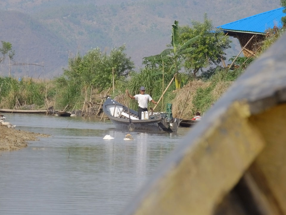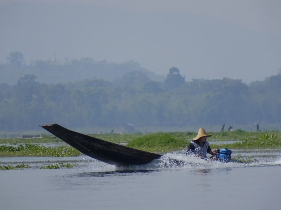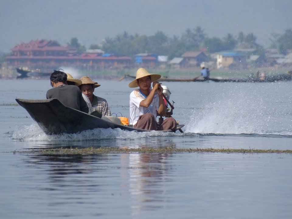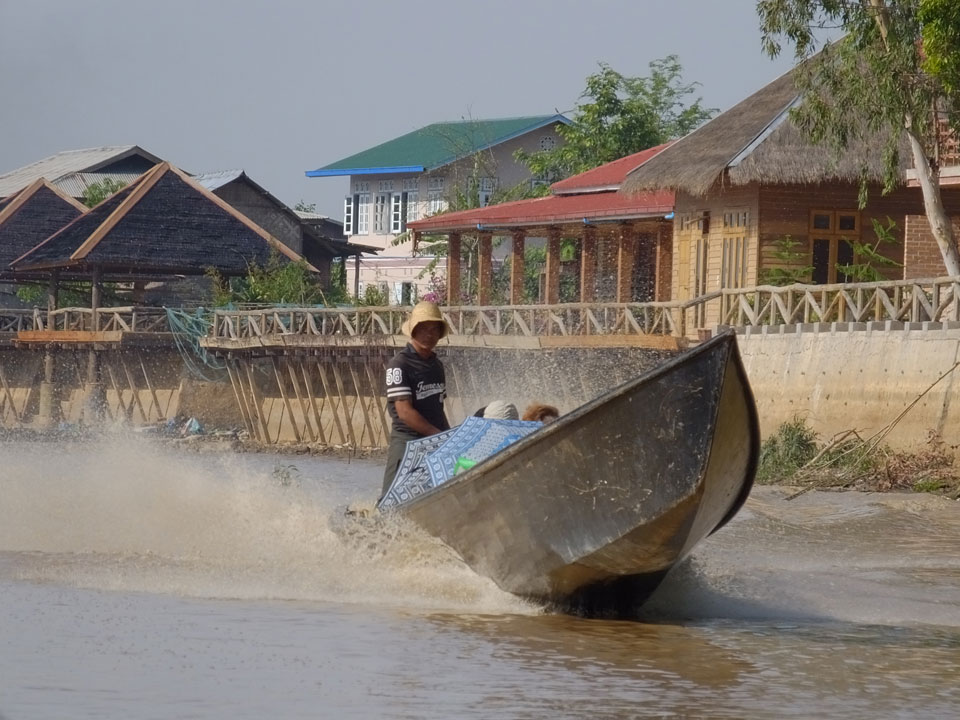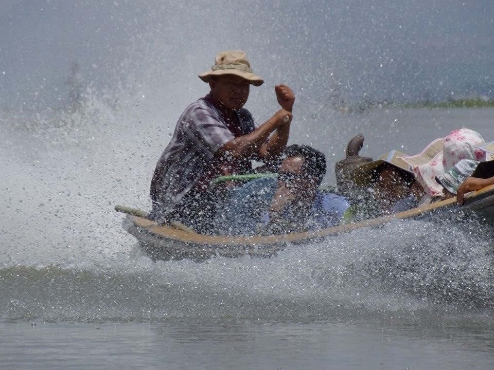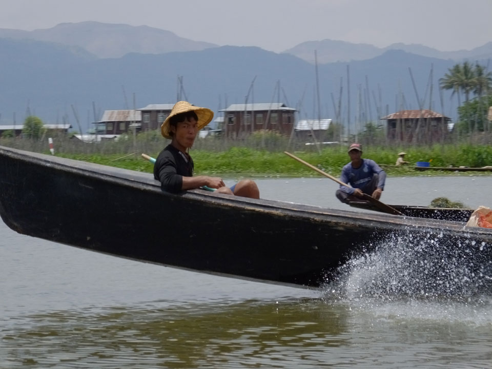 Eine Bootstour war ein Muss hier am Inle See. Nach dem Frühstück wartete ich erst ein wenig, hoffte, dass ein paar Franzosen noch kämen aber dann nahm ich doch alleine ein Boot. Ein etwas runder Burmese machte den Pitch und pfiff dann einen Jungen, der mich fahre sollte.