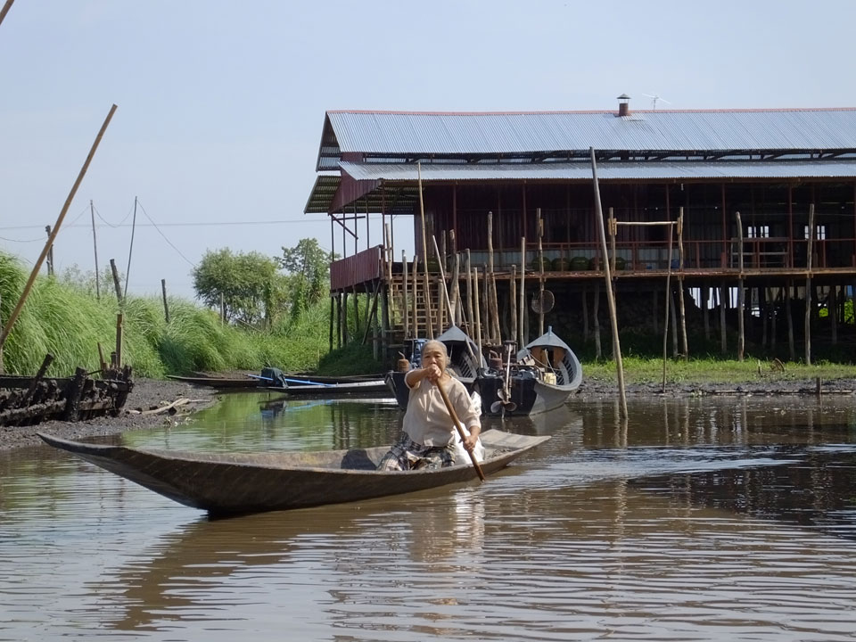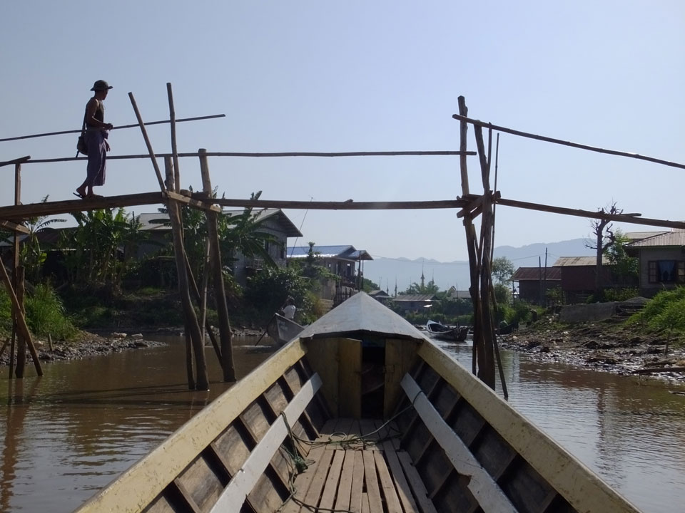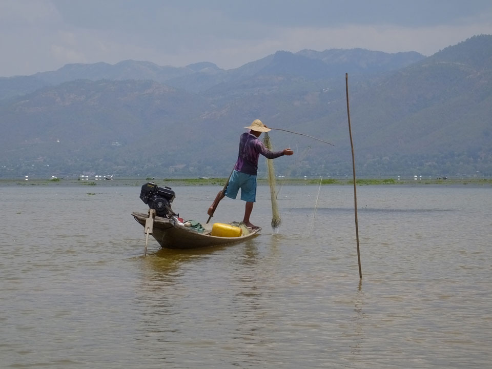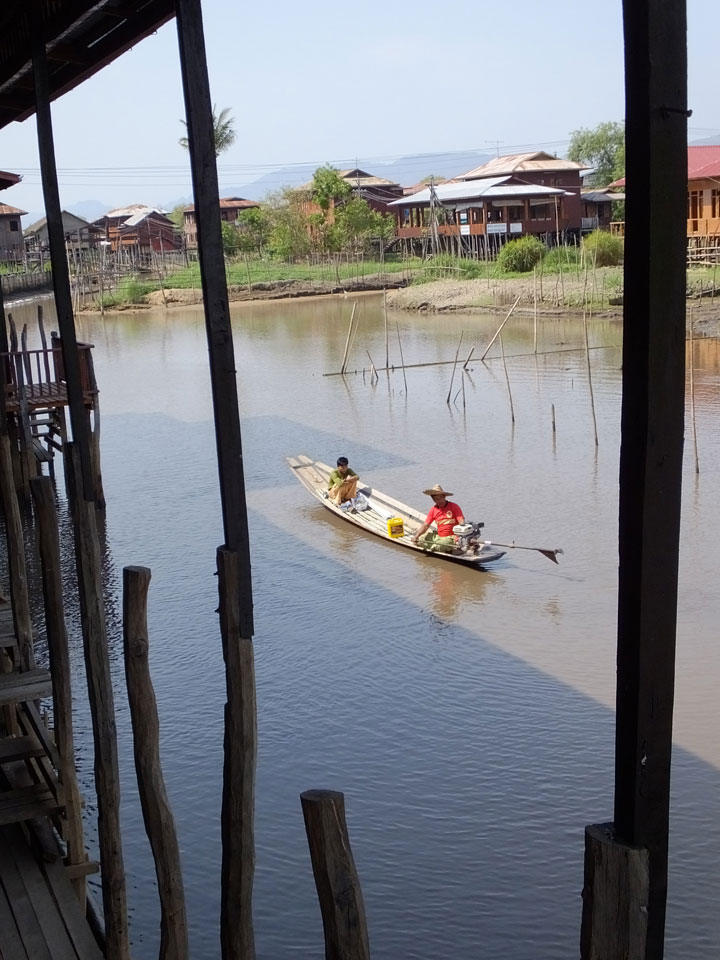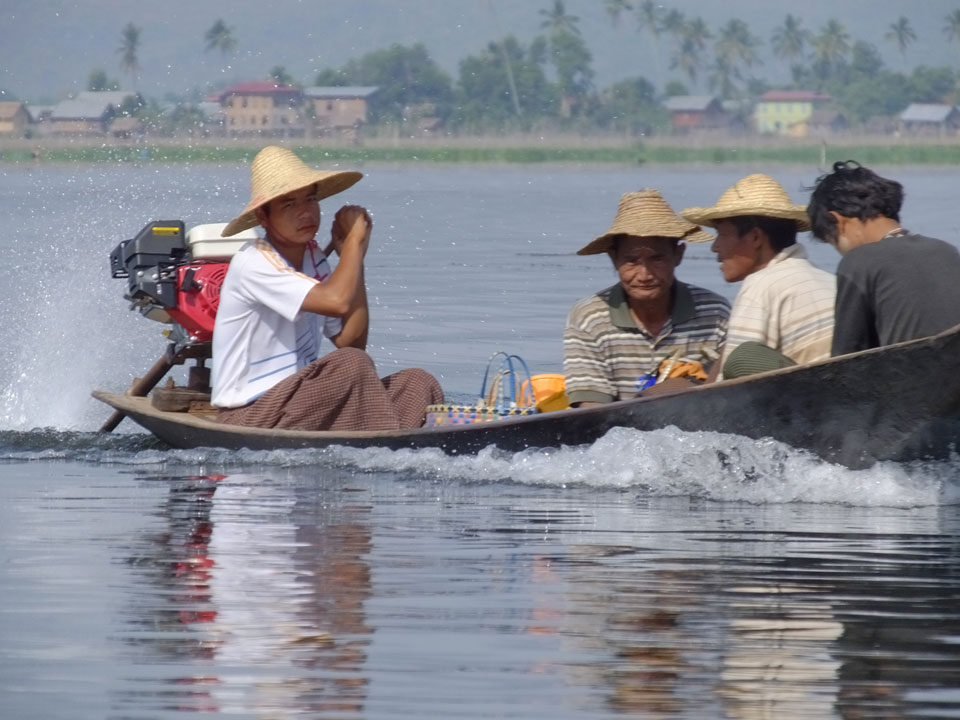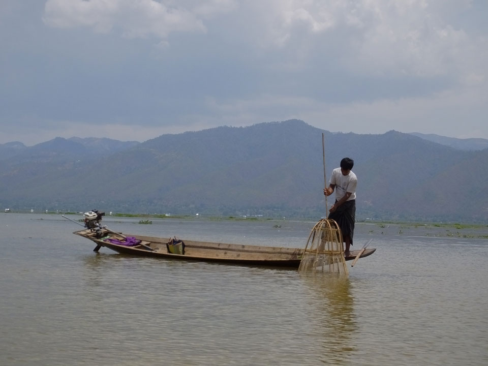 Eine Bootstour war ein Muss hier am Inle See. Nach dem Frühstück wartete ich erst ein wenig, hoffte, dass ein paar Franzosen noch kämen aber dann nahm ich doch alleine ein Boot. Ein etwas runder Burmese machte den Pitch und pfiff dann einen Jungen, der mich fahre sollte.