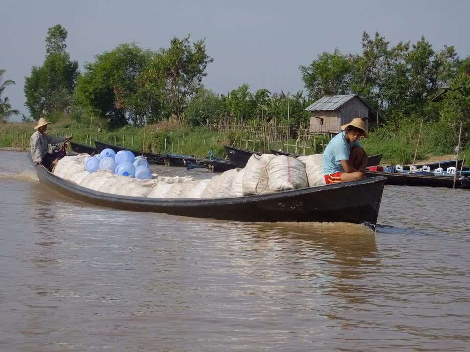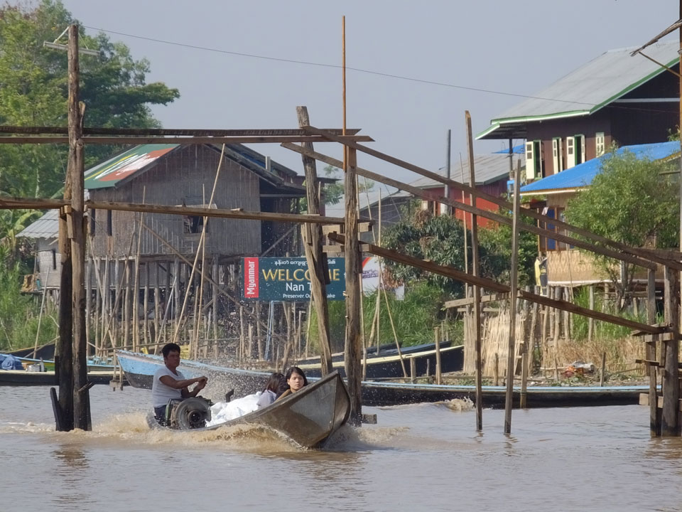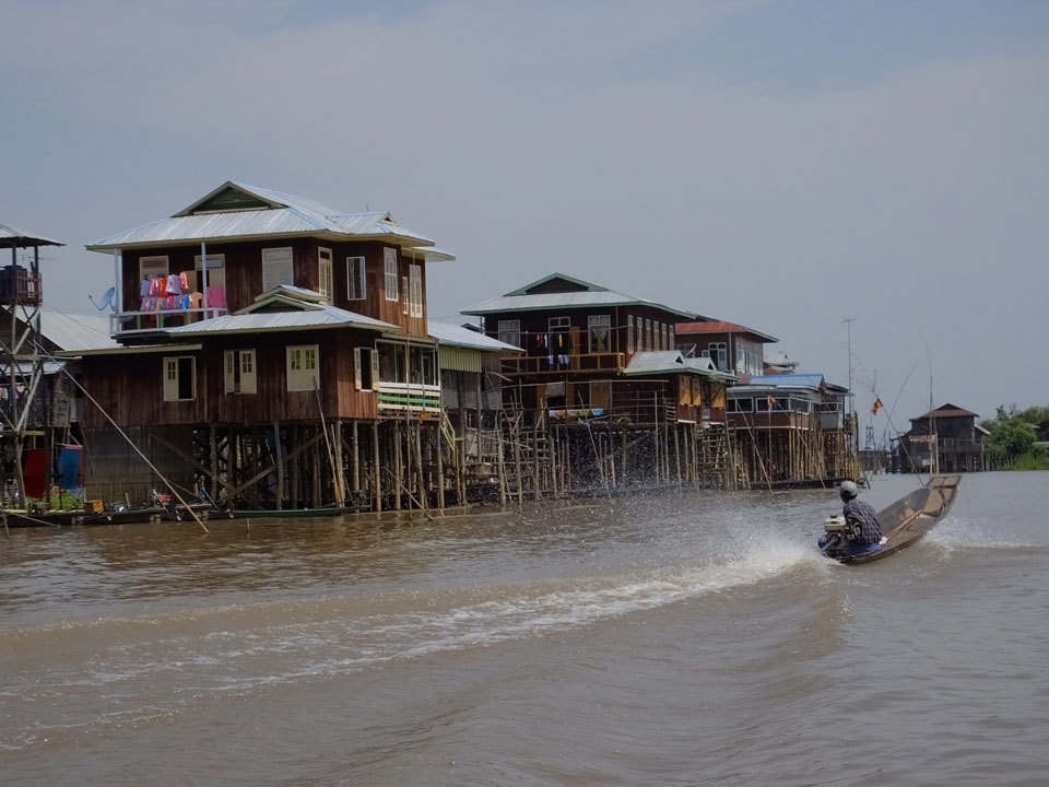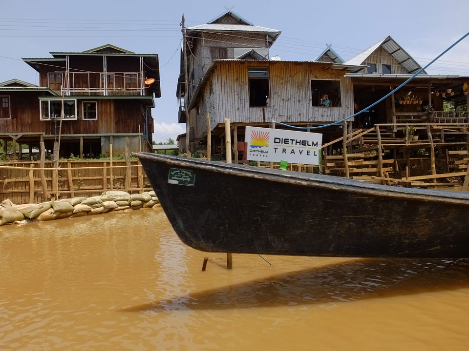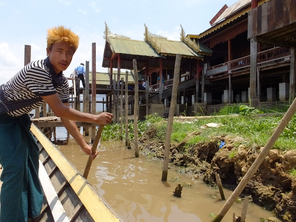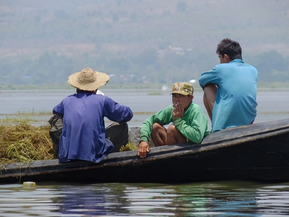 Eine Bootstour war ein Muss hier am Inle See. Nach dem Frühstück wartete ich erst ein wenig, hoffte, dass ein paar Franzosen noch kämen aber dann nahm ich doch alleine ein Boot. Ein etwas runder Burmese machte den Pitch und pfiff dann einen Jungen, der mich fahre sollte.