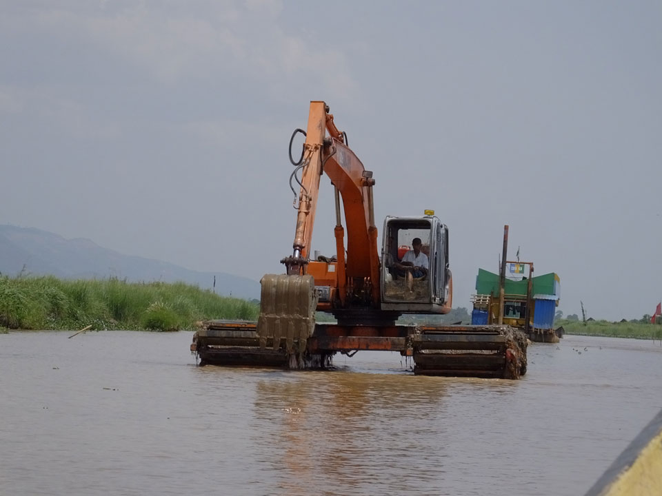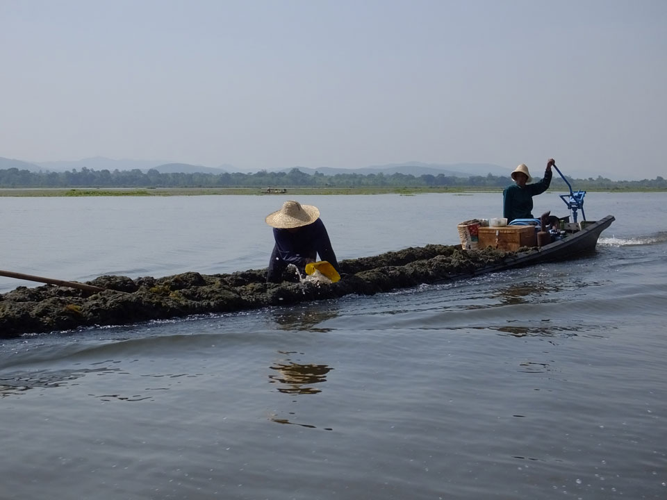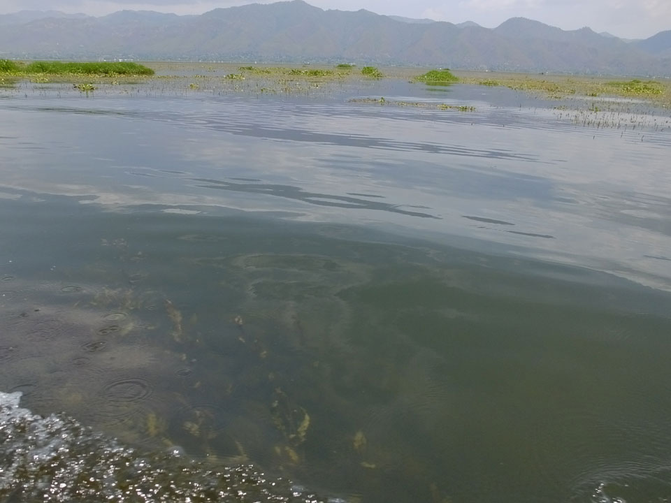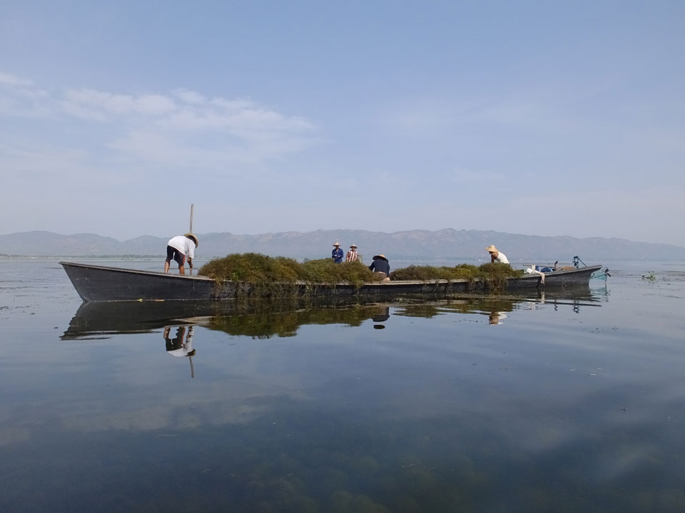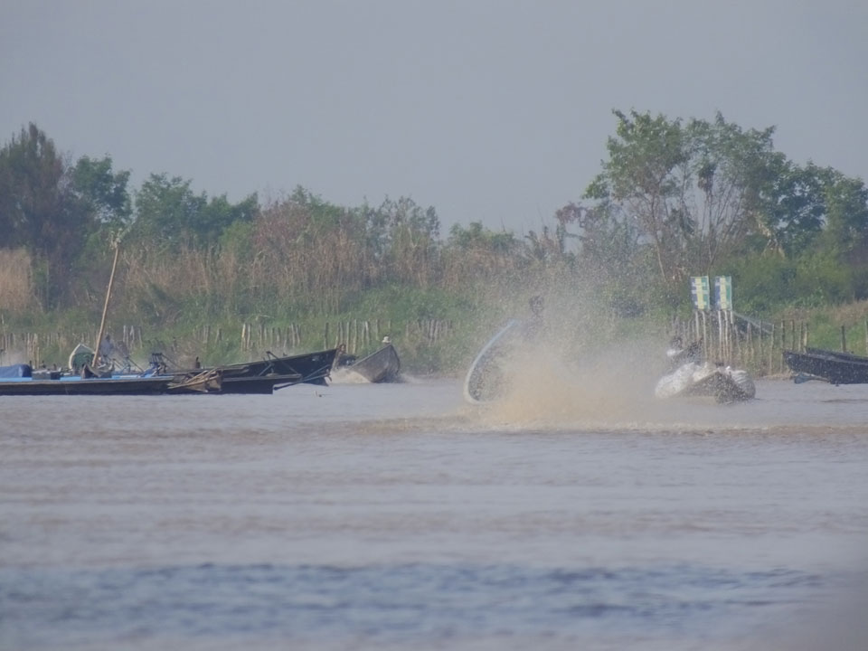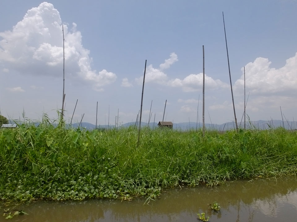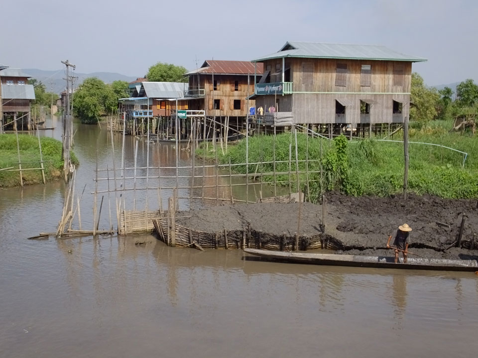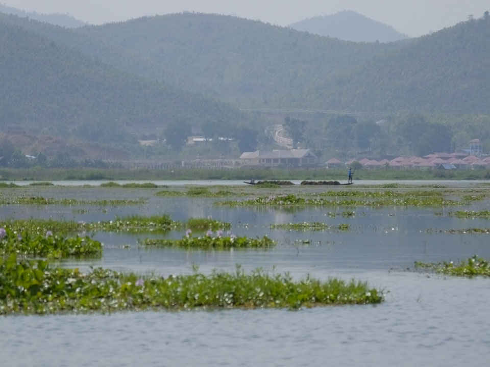 Es ging zum See, der ganz schön groß war. Endlich sah ich die Fischer mit ihren typischen Steuerbewegungen per Bein. Ein Bein im Boot, ein Bein um das Ruder. Viele Leute fischten auch Algen aus dem Wasser. Das schien nicht gerade tief. Später las ich – 1.50m durchschnittlich.