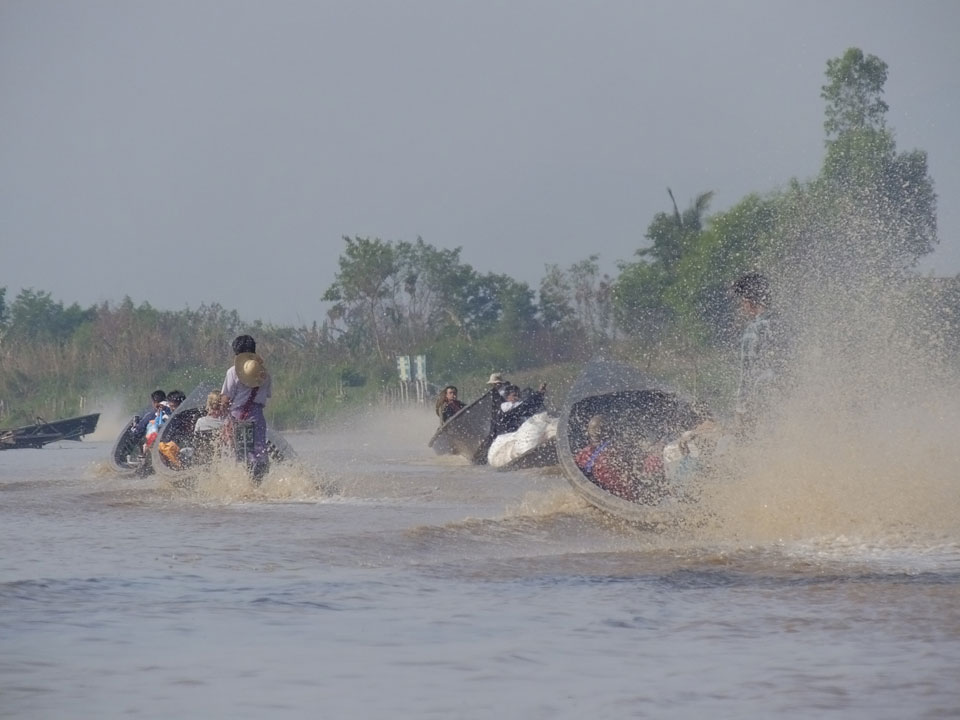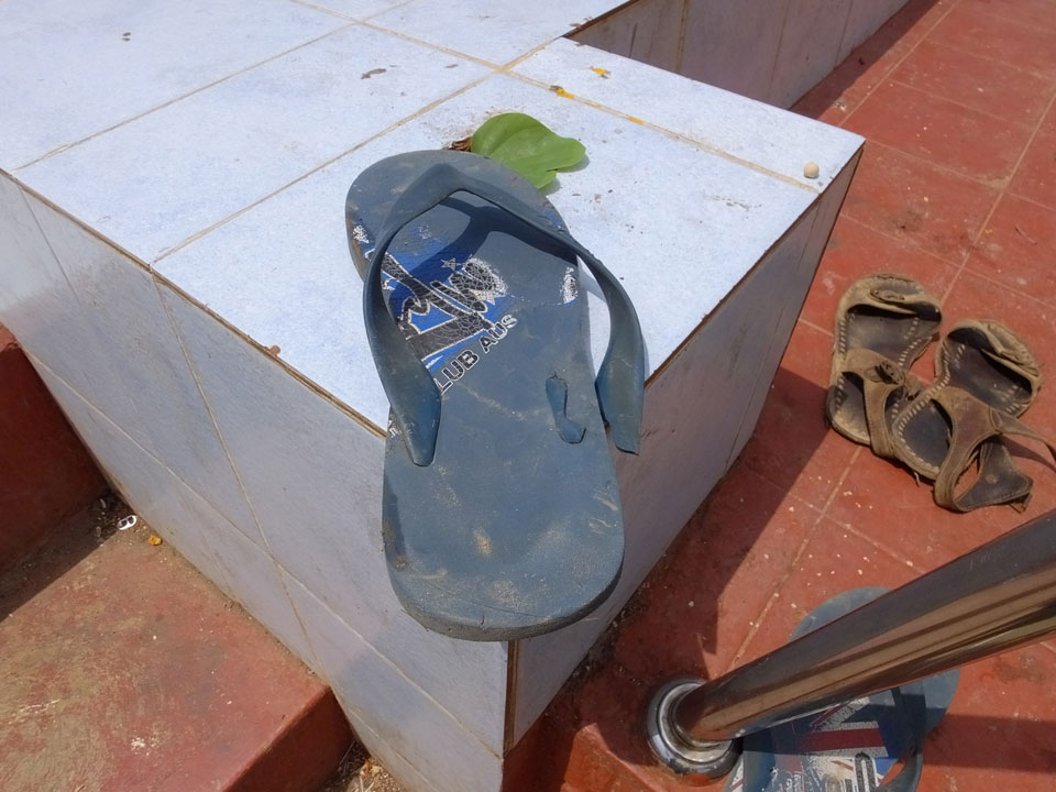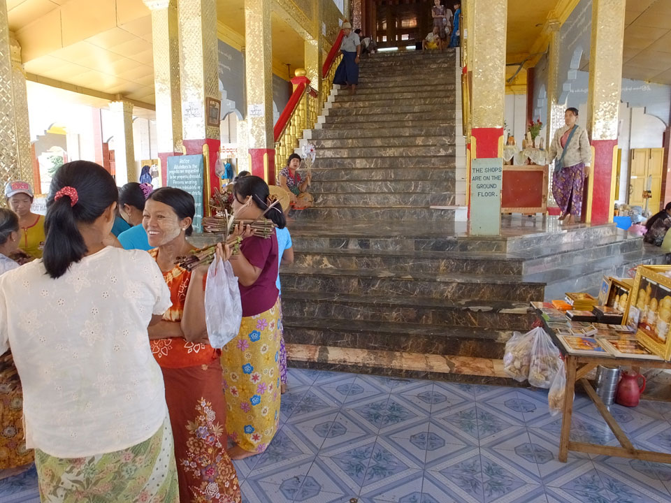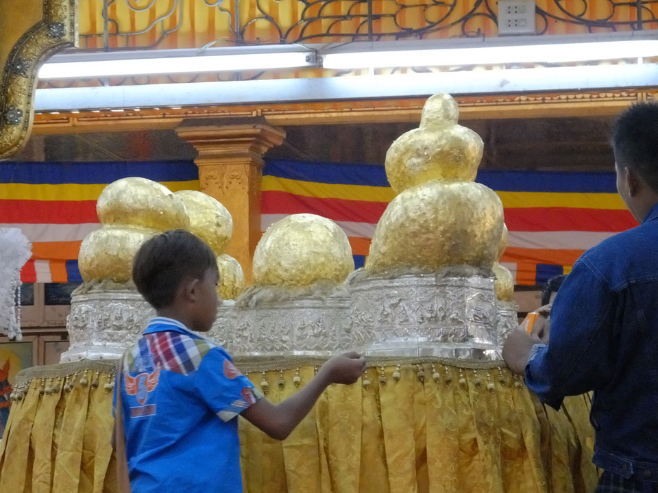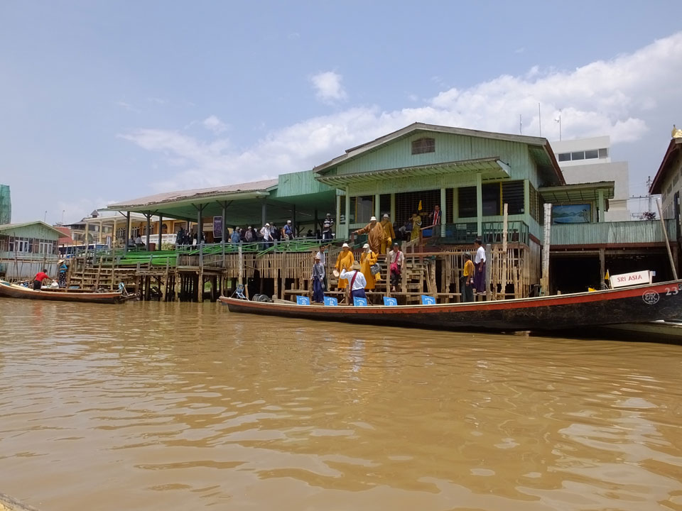 Vor einem Tempel dann war Hochbetrieb. Das Boot musste etwas weiter weg geparkt werden und beim Aufstieg mit 2 Cameras brach mir ein Flipflop. Der Gummiriemen, seit 10 Jahren in guten Diensten war kaputt. Naja, Flipflops gab’s hier genug, nur leider eben gerade hier nicht zu kaufen.